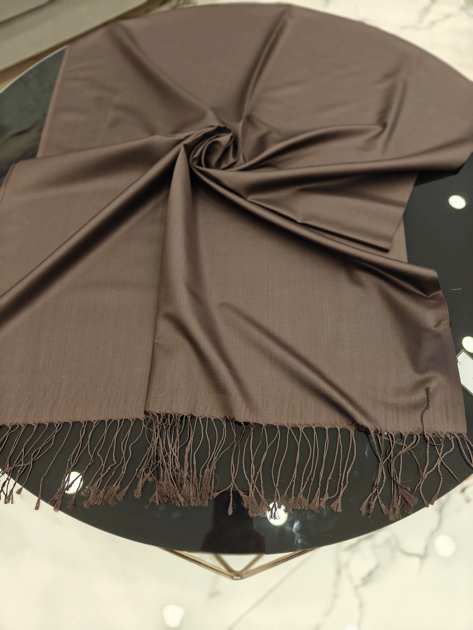 Merihce Luxury kalitesini her detayda hissedeceğiniz ARMANDA-%100 İPEK ŞAL KAHVE, gardırobunuzun vazgeçilmezlerinden biri olmaya aday.