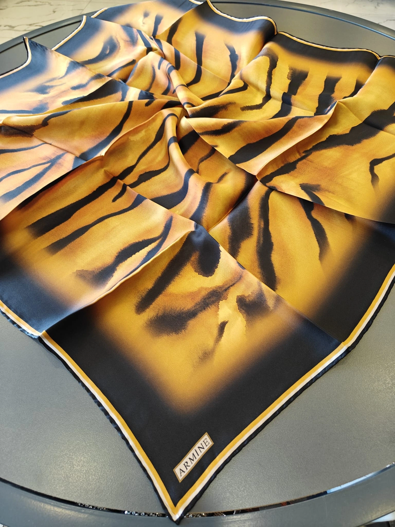 Merihce Luxury kalitesini her detayda hissedeceğiniz ARMİNE-%100 İPEK EŞARP GOLD, gardırobunuzun vazgeçilmezlerinden biri olmaya aday.