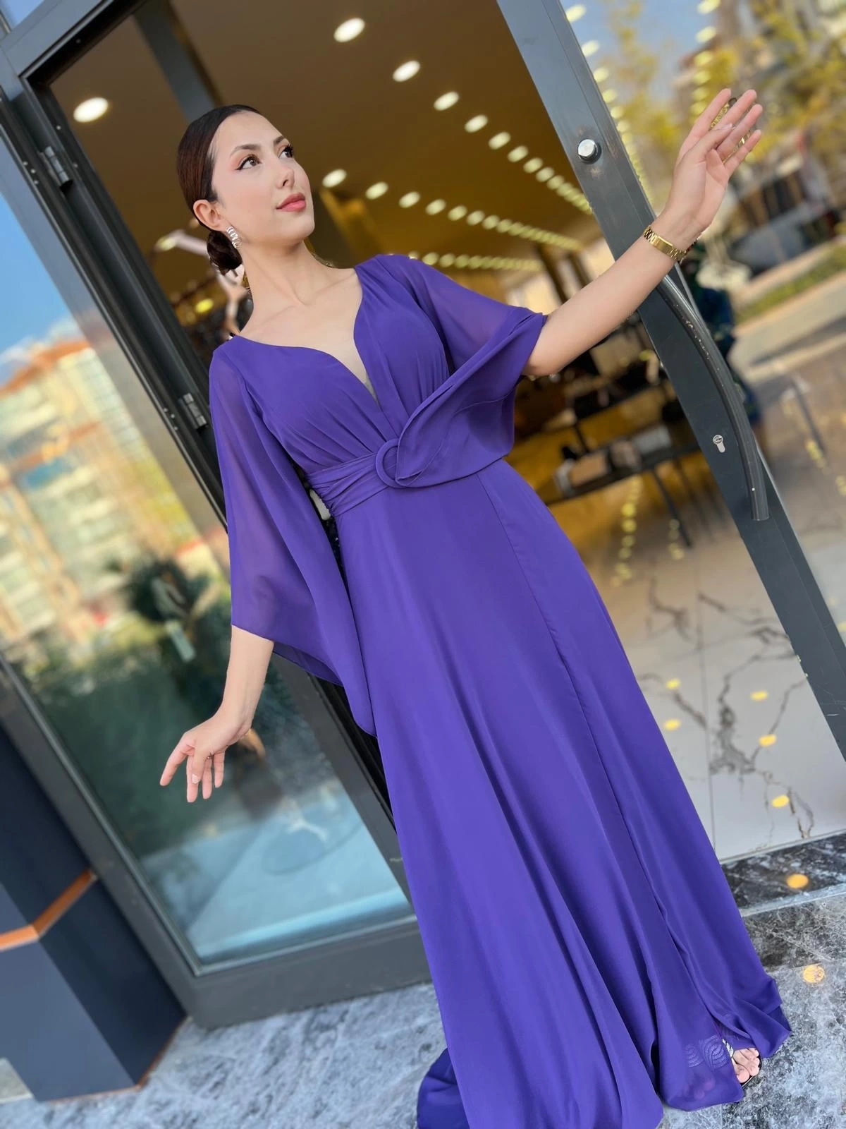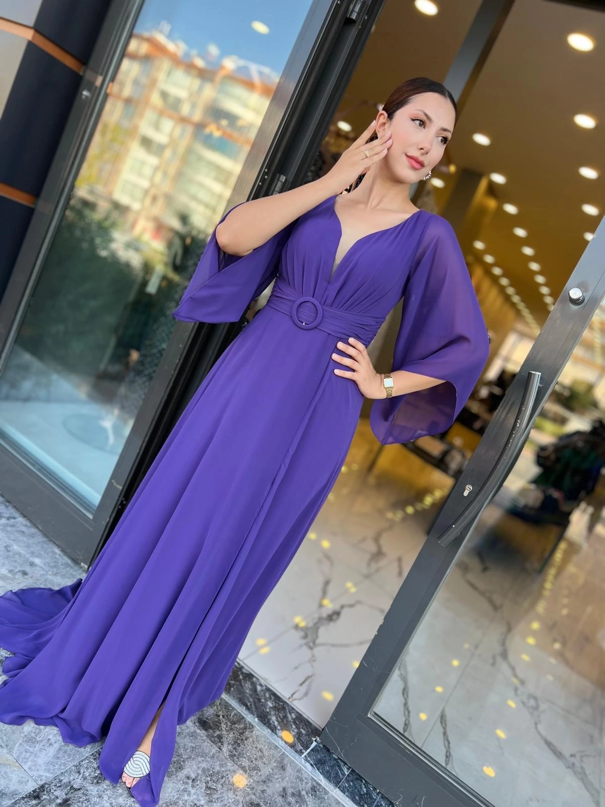 Merihce Luxury kalitesini her detayda hissedeceğiniz BDR-ŞİFON ELBİSE MOR, gardırobunuzun vazgeçilmezlerinden biri olmaya aday.