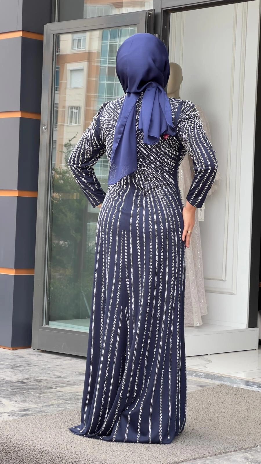 Merihce Luxury kalitesini her detayda hissedeceğiniz BEYOĞLU-BONCUK DETAYLI ABİYE ELBİSE LACİVERT, gardırobunuzun vazgeçilmezlerinden biri olmaya aday.