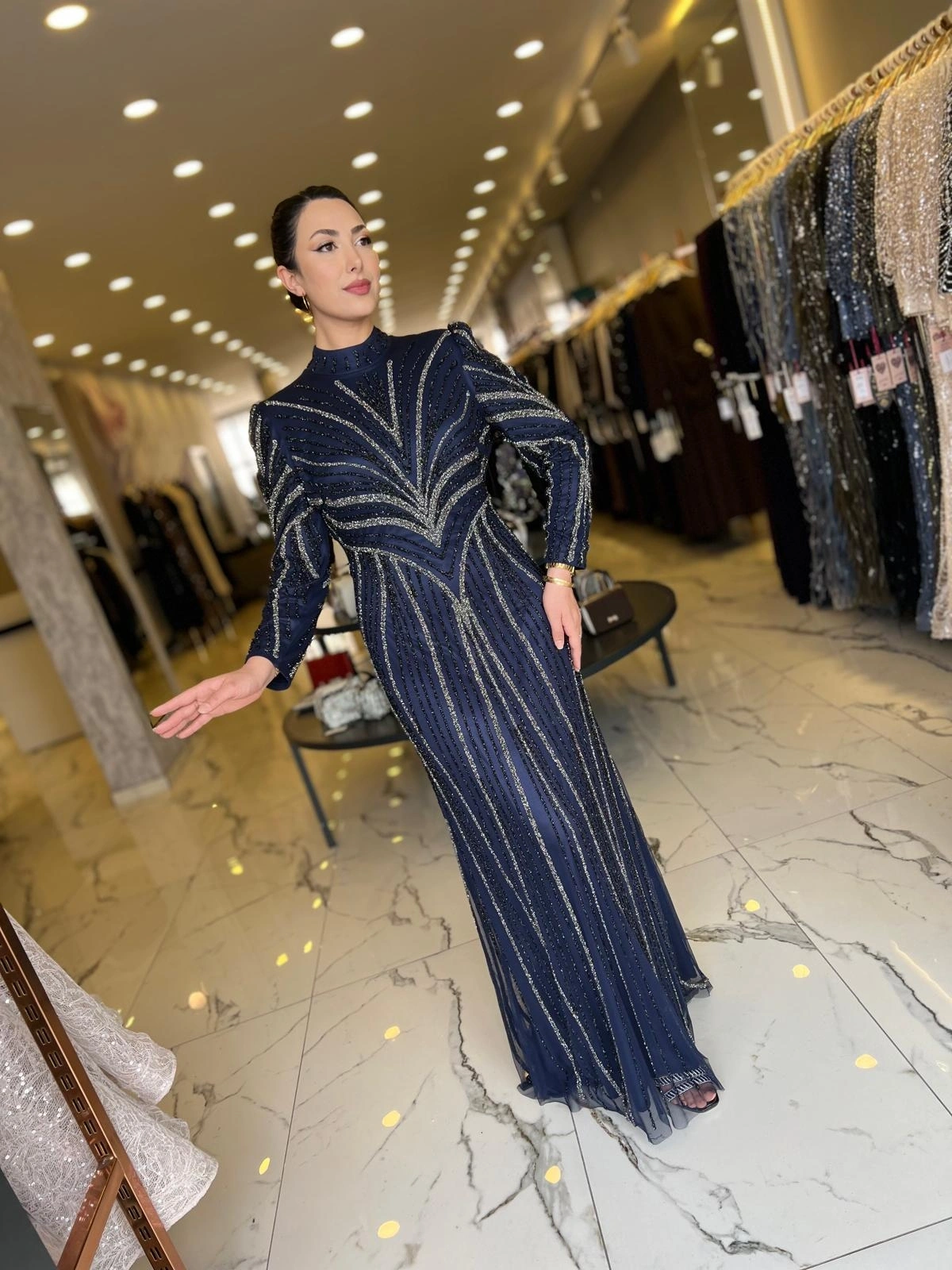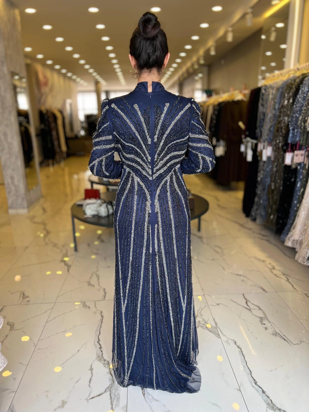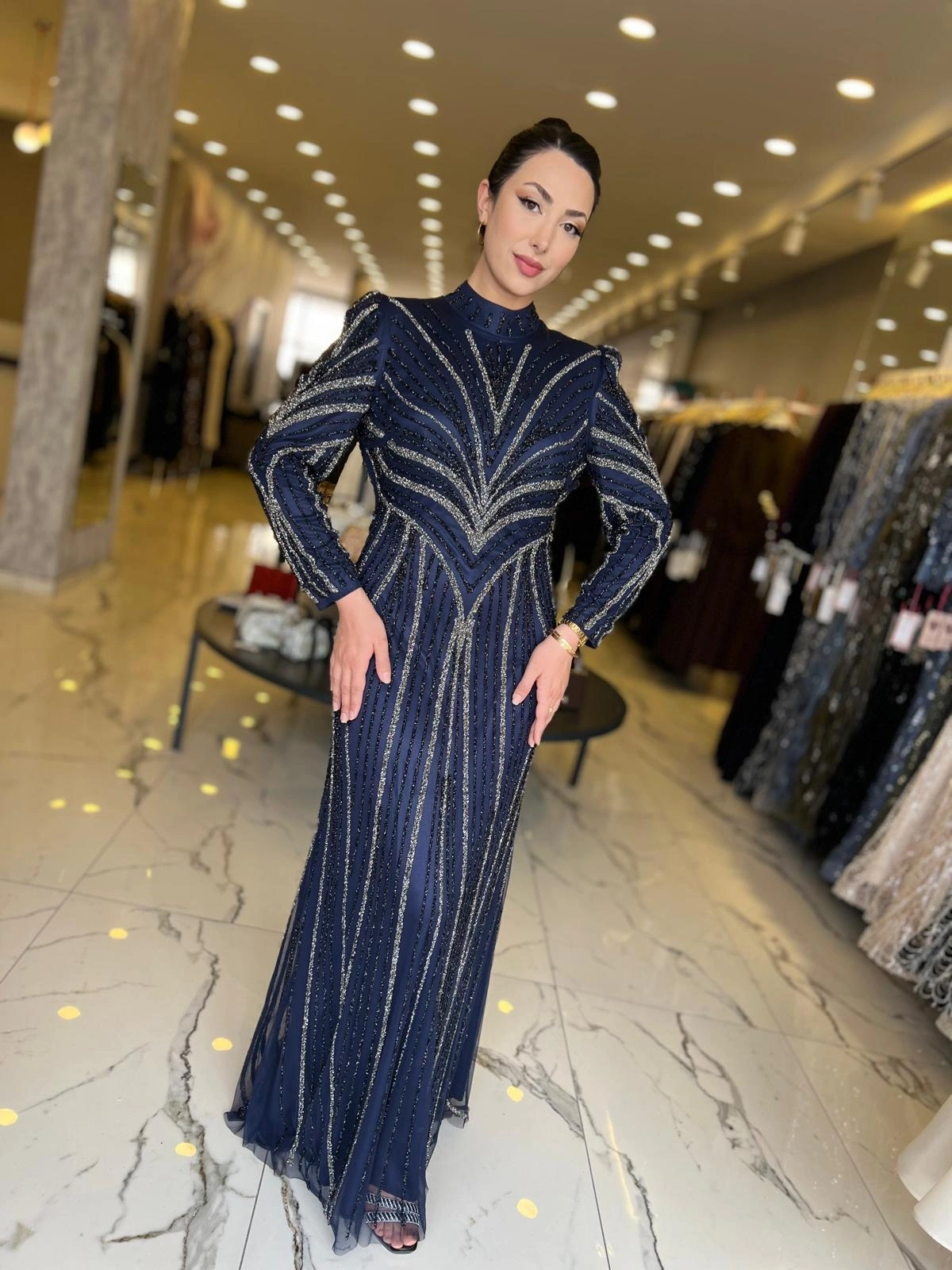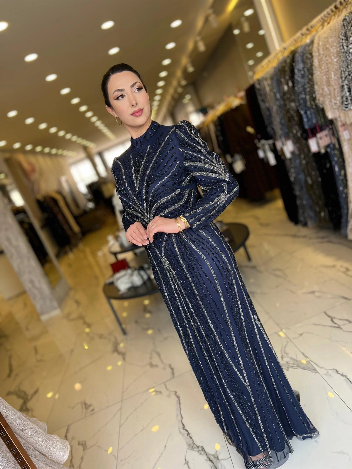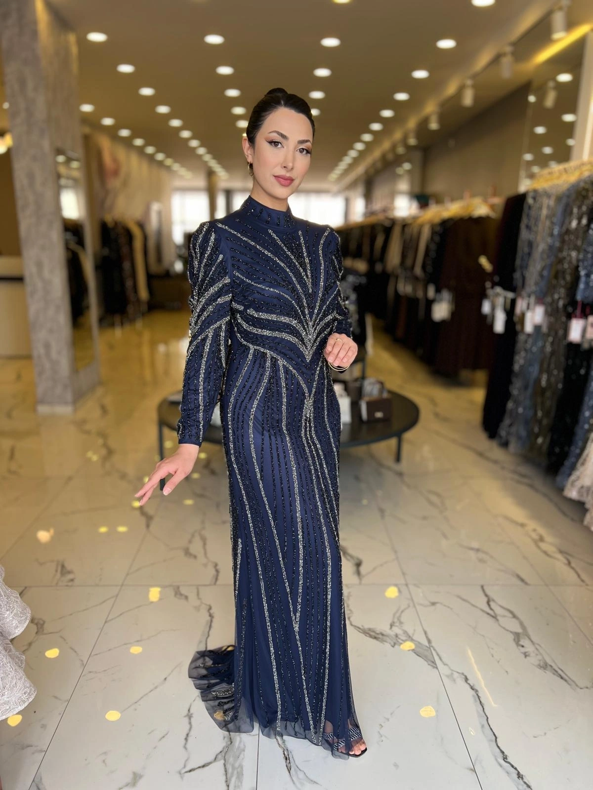 Merihce Luxury kalitesini her detayda hissedeceğiniz BEYOĞLU-GECE IŞILTISI ABİYE LACİVERT, gardırobunuzun vazgeçilmezlerinden biri olmaya aday.