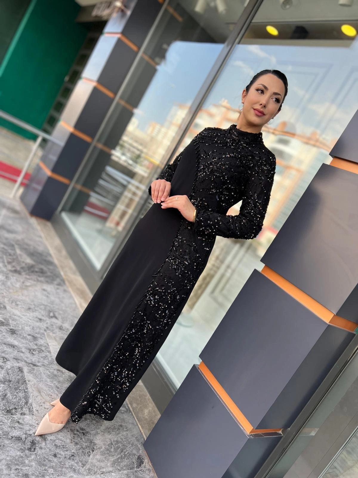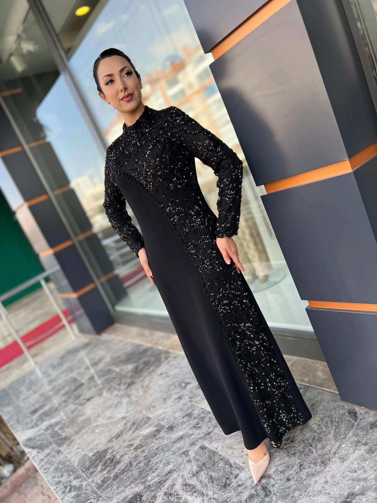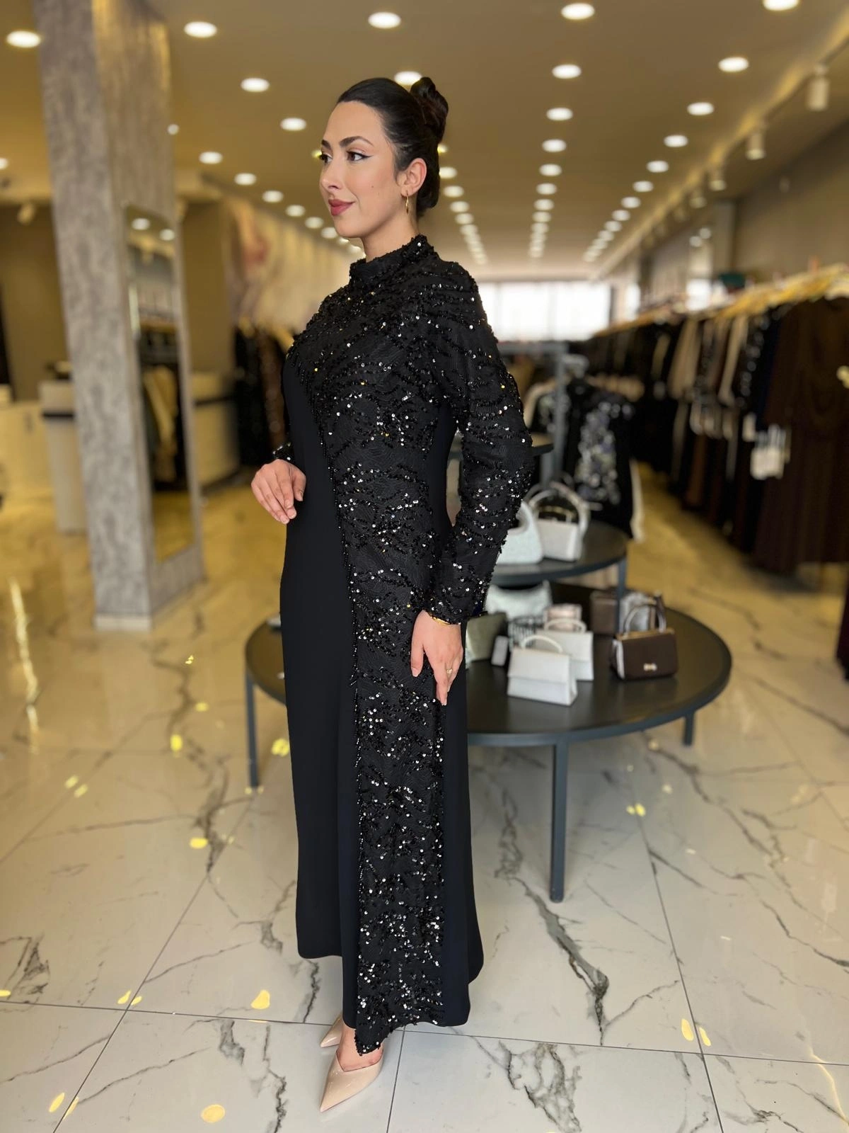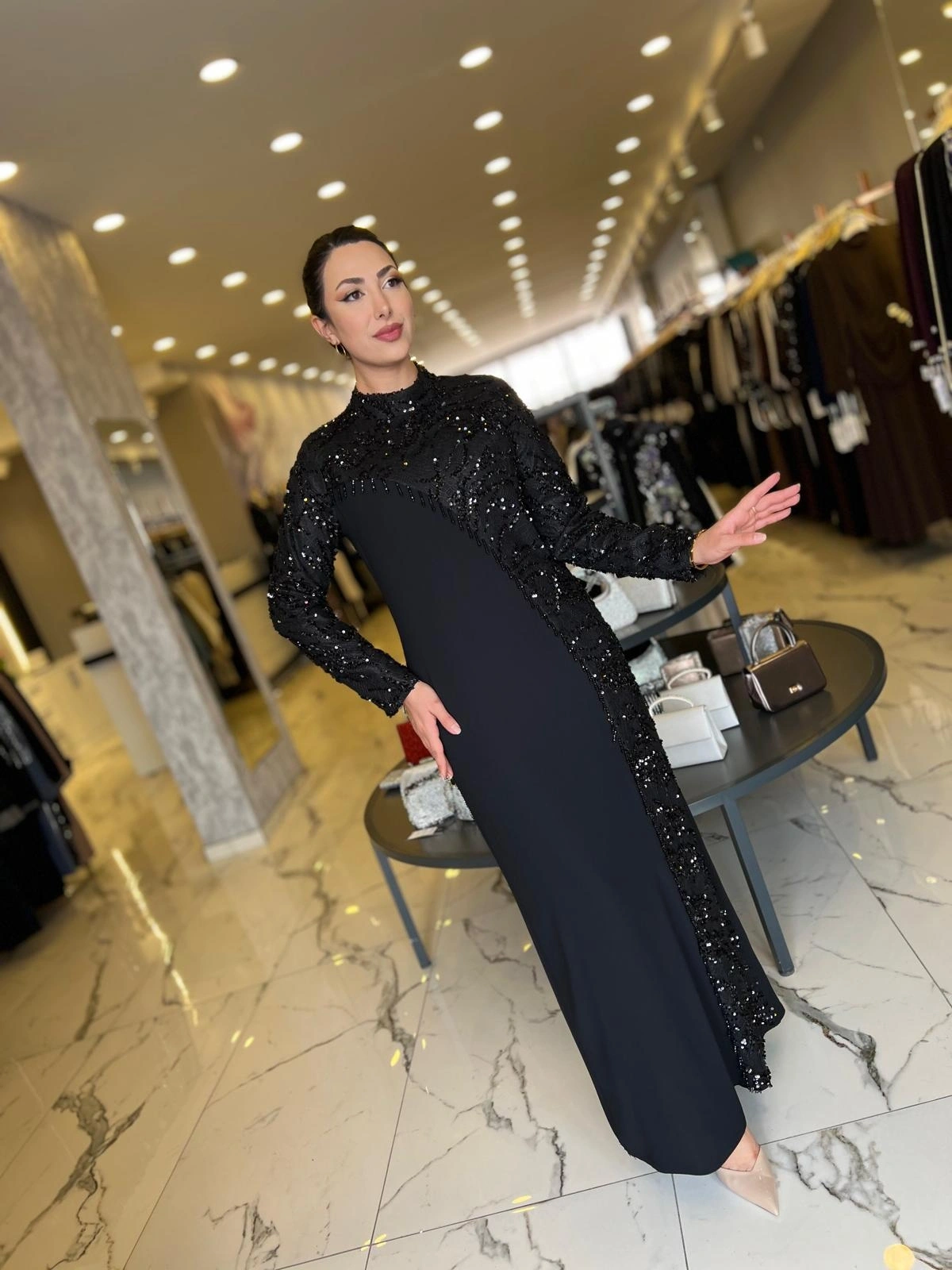 Merihce Luxury kalitesini her detayda hissedeceğiniz BEYOĞLU-PUL DETAYLI ELBİSE SİYAH, gardırobunuzun vazgeçilmezlerinden biri olmaya aday.