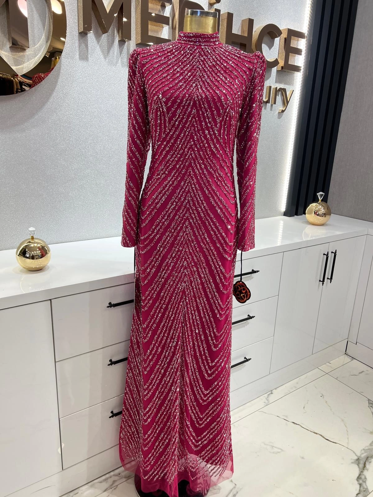 Merihce Luxury kalitesini her detayda hissedeceğiniz EMİNE GÜNGÖR-SURA ABİYE ELBİSE PEMBE, gardırobunuzun vazgeçilmezlerinden biri olmaya aday.