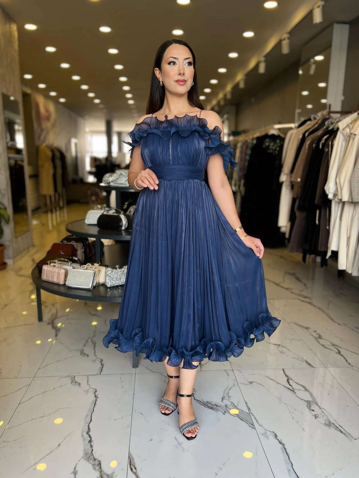 Merihce Luxury kalitesini her detayda hissedeceğiniz ESPENİCA-VOLAN DETAYLI MİNİ ELBİSE LACİVERT, gardırobunuzun vazgeçilmezlerinden biri olmaya aday.