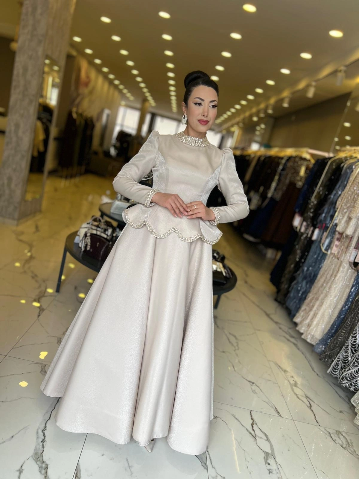Merihce Luxury kalitesini her detayda hissedeceğiniz FERİHA-GÜLFEM KABARIK ABİYE BEJ, gardırobunuzun vazgeçilmezlerinden biri olmaya aday.
