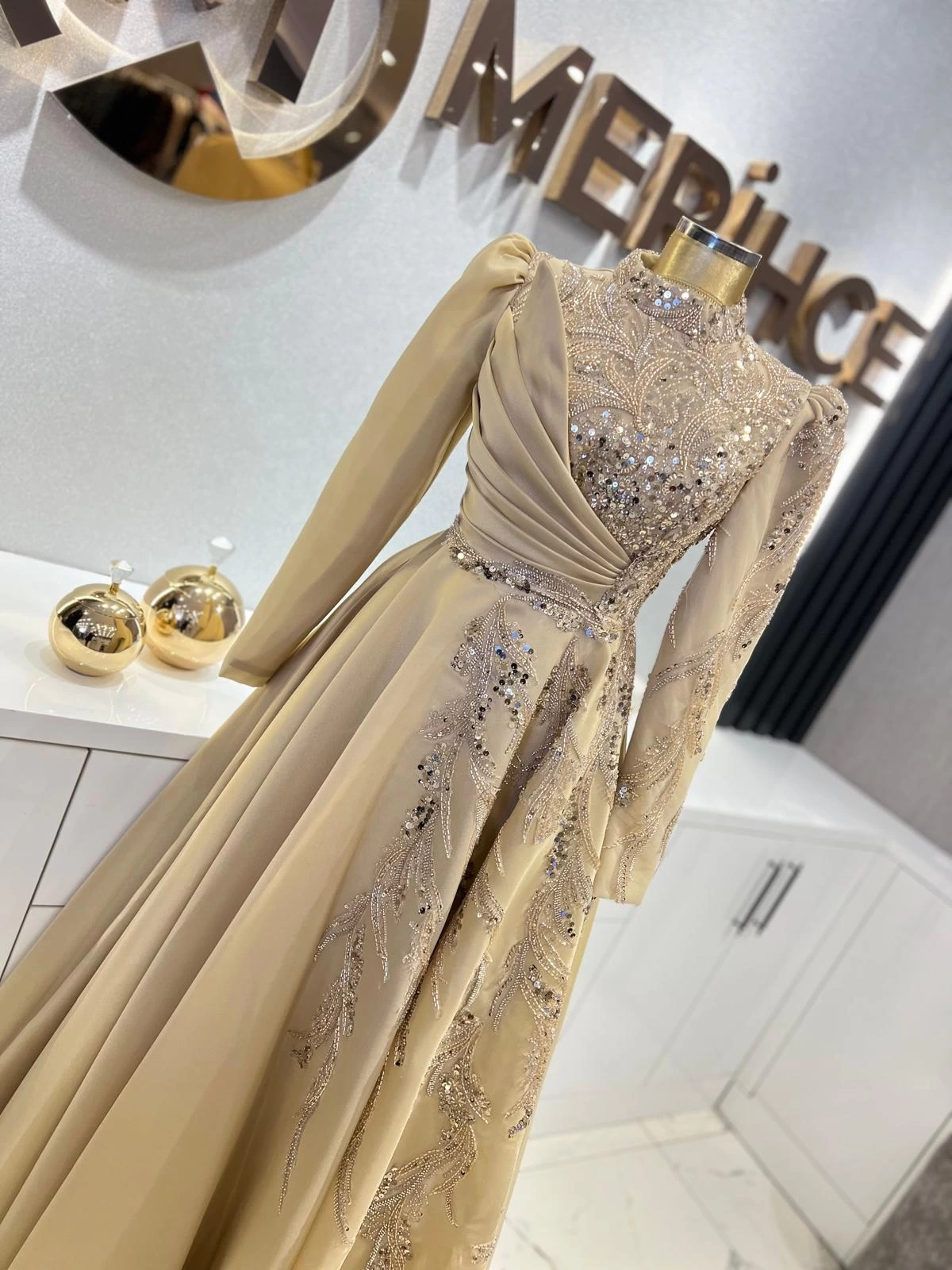 Merihce Luxury kalitesini her detayda hissedeceğiniz FERİHA SARIOĞLU-BELGİN ABİYE BEJ, gardırobunuzun vazgeçilmezlerinden biri olmaya aday.