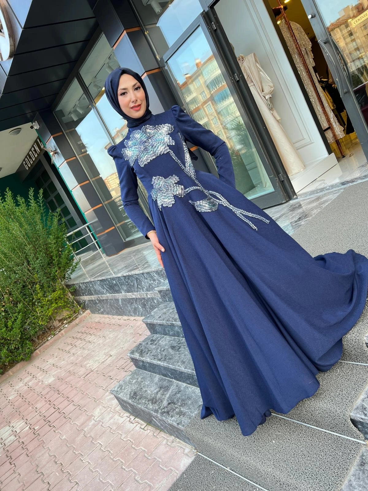 Merihce Luxury kalitesini her detayda hissedeceğiniz FERİHA SARIOĞLU-KABARIK TAŞLI ELBİSE LACİVERT, gardırobunuzun vazgeçilmezlerinden biri olmaya aday.