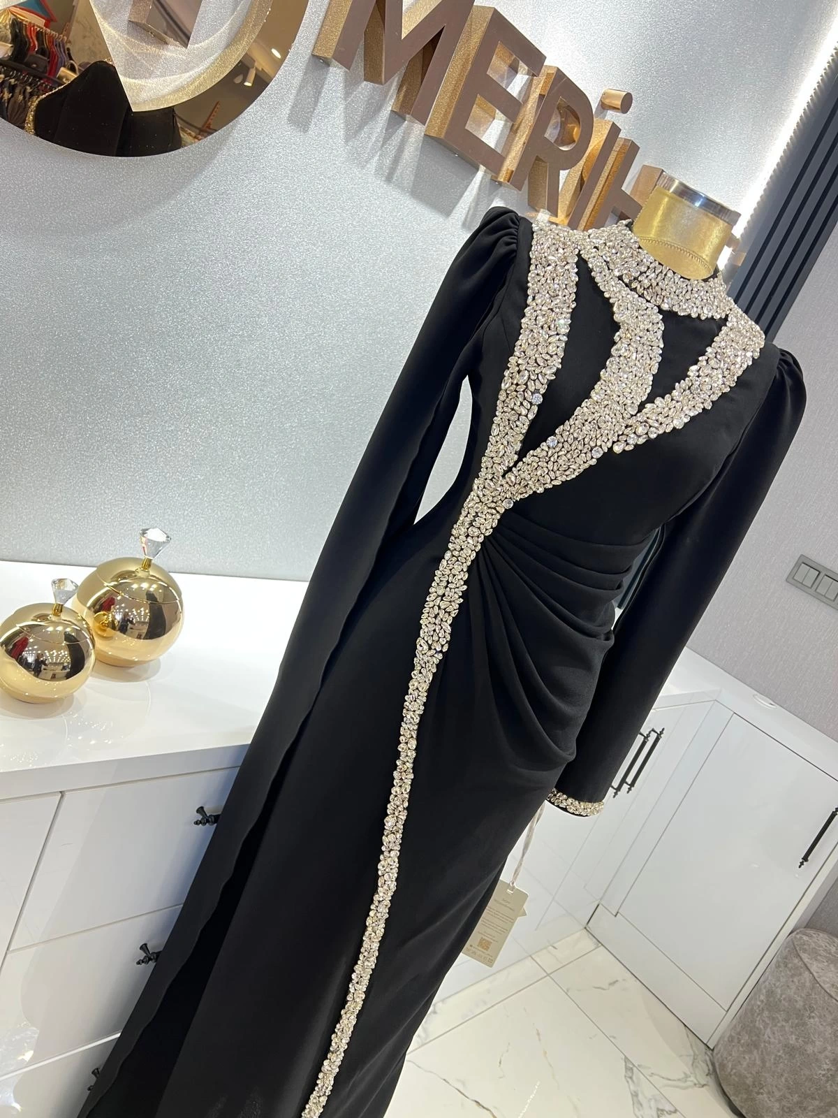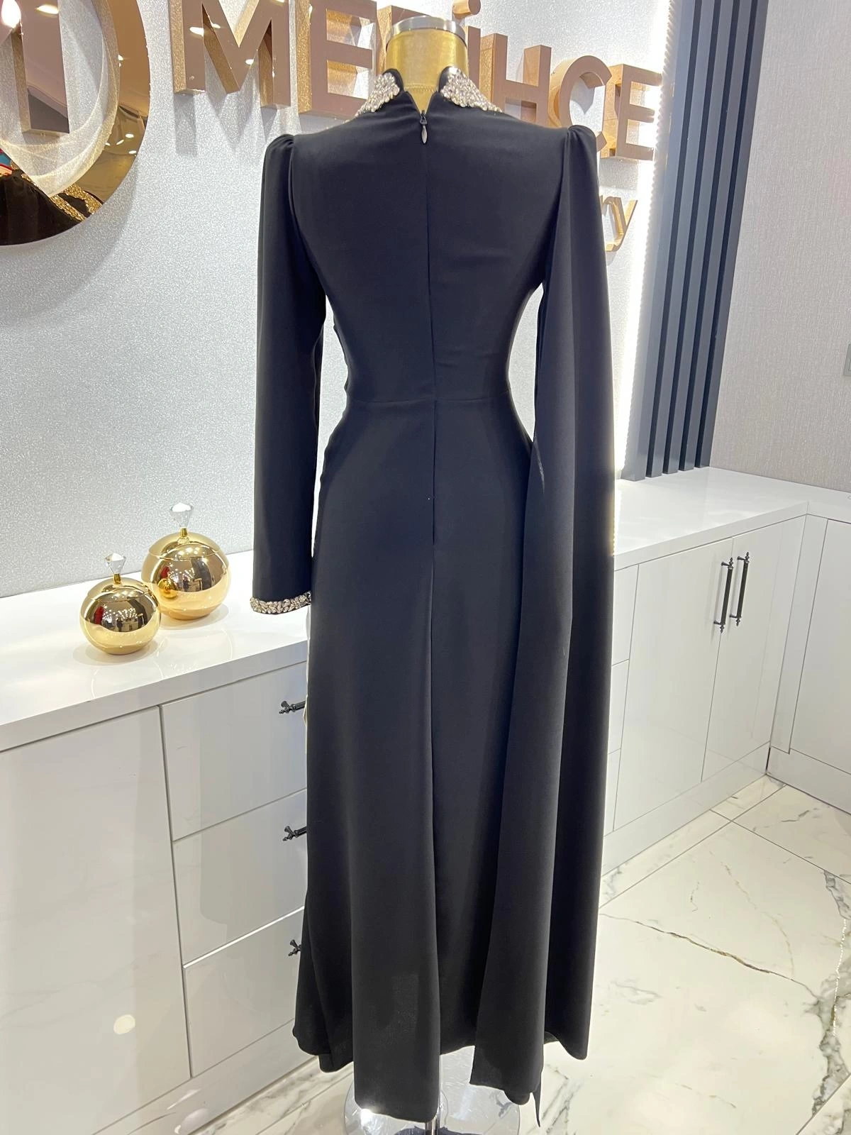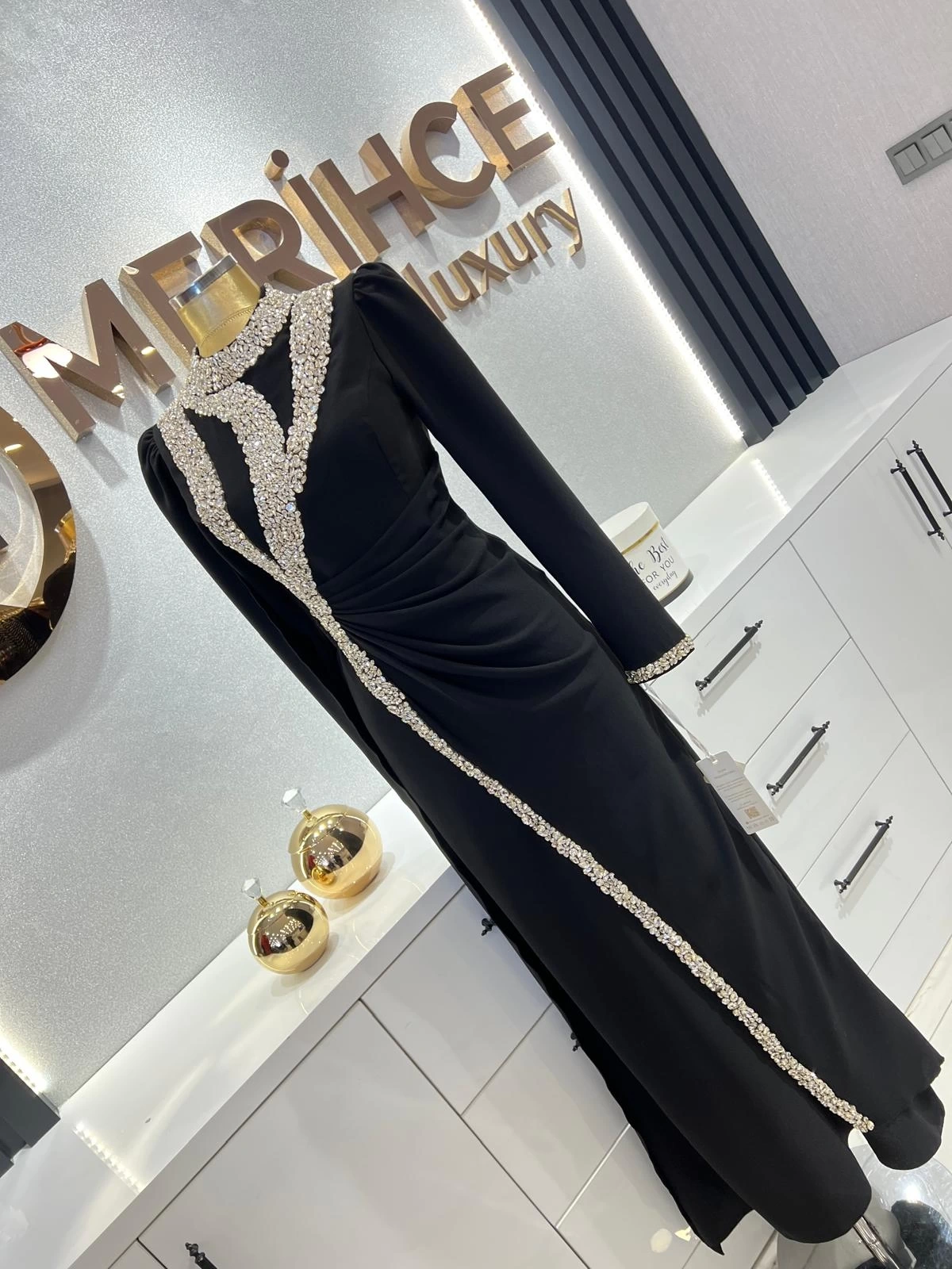 Merihce Luxury kalitesini her detayda hissedeceğiniz FERİHA SARIOĞLU-NEHİR ABİYE SİYAH, gardırobunuzun vazgeçilmezlerinden biri olmaya aday.