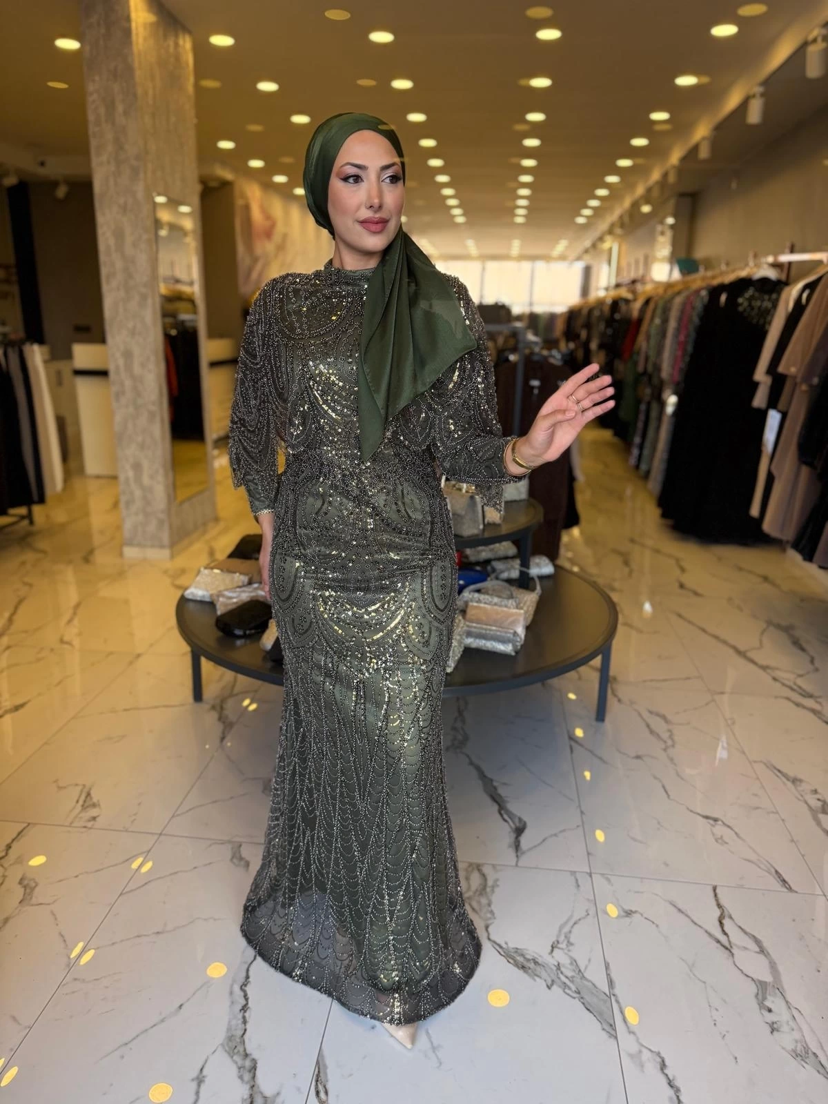 GAMZE ÖZKUL DİVA ABİYE HAKİ ile Merihce Luxury'nin zarafet ve kalite anlayışını keşfedin. Koleksiyonumuzun bu seçkin parçası, stilinize lüks bir dokunuş katmak için özenle tasarlandı.