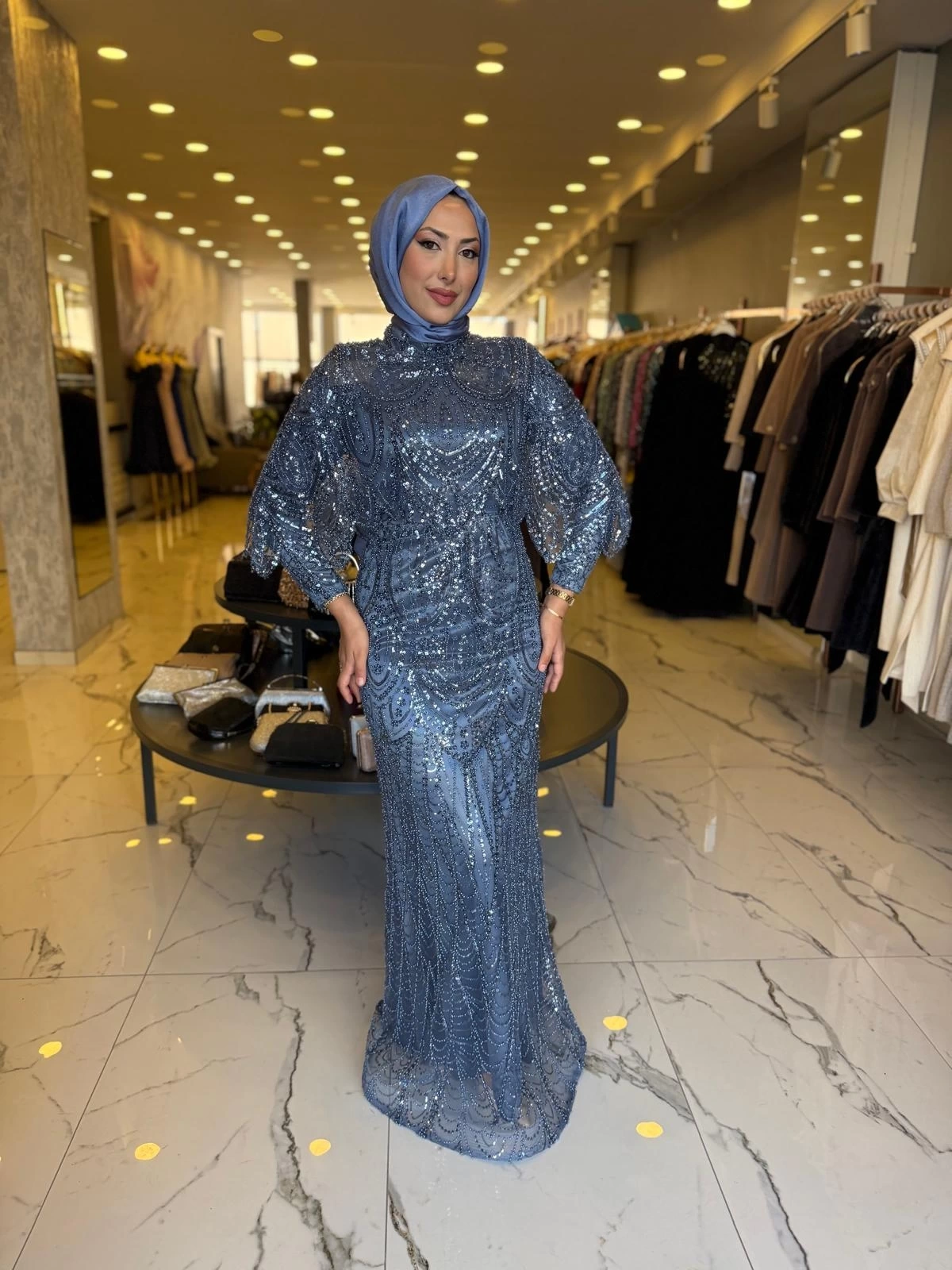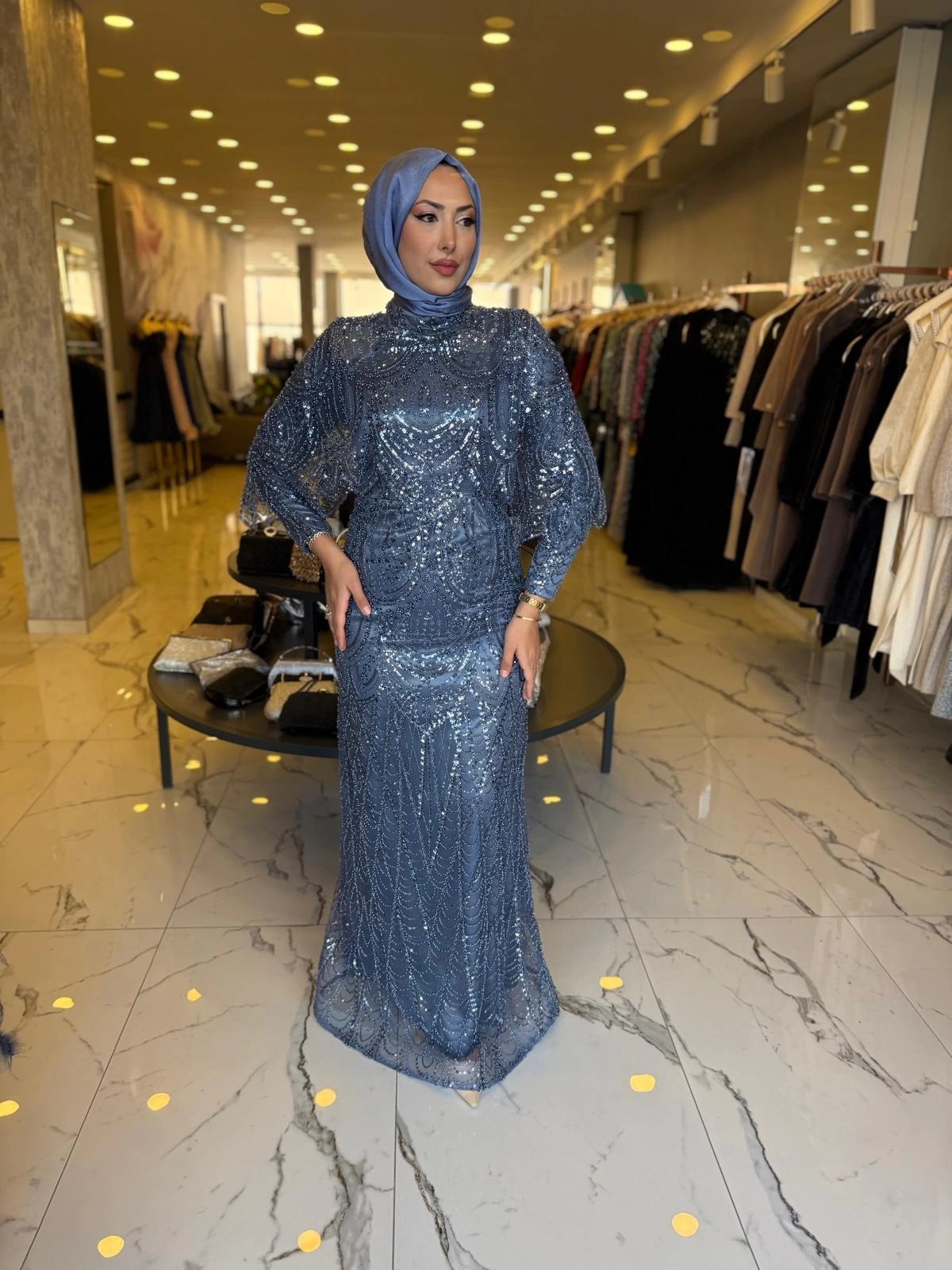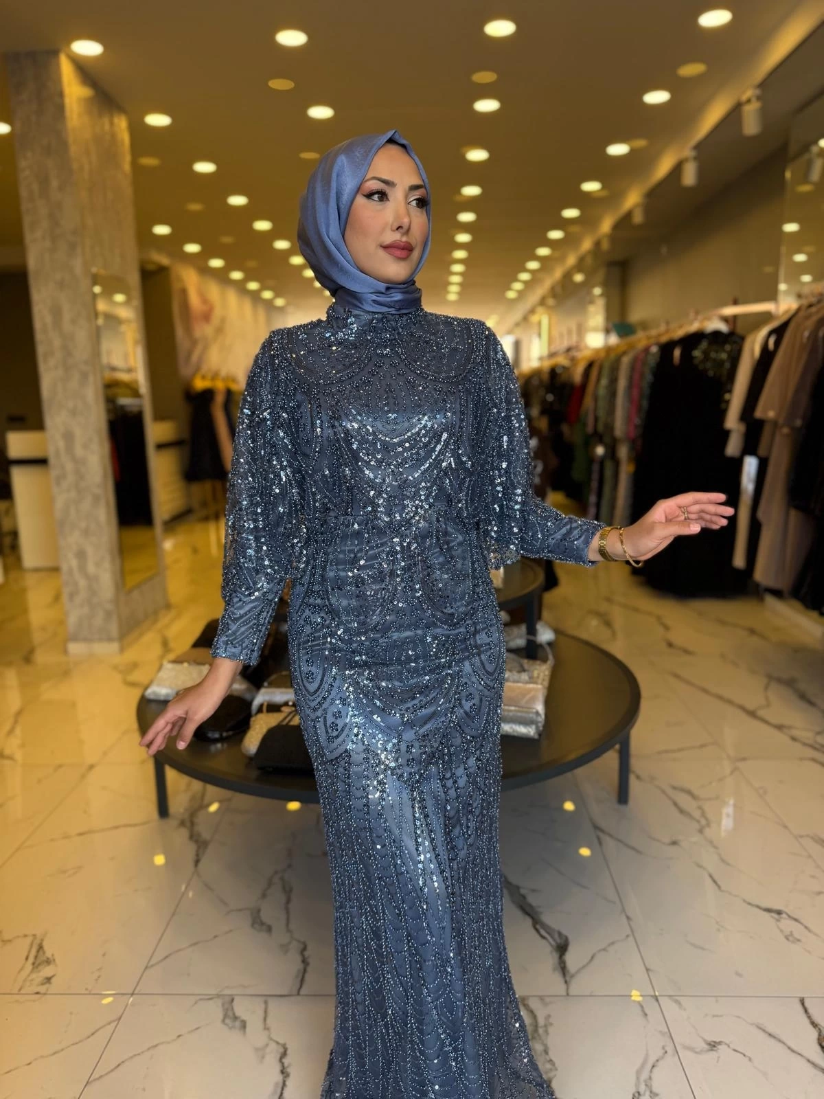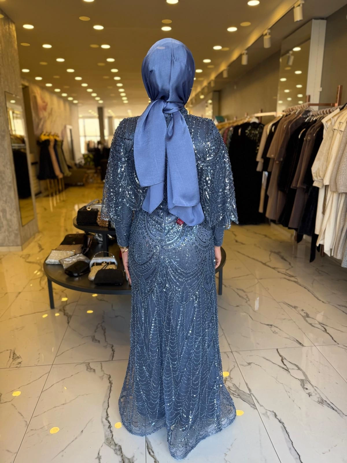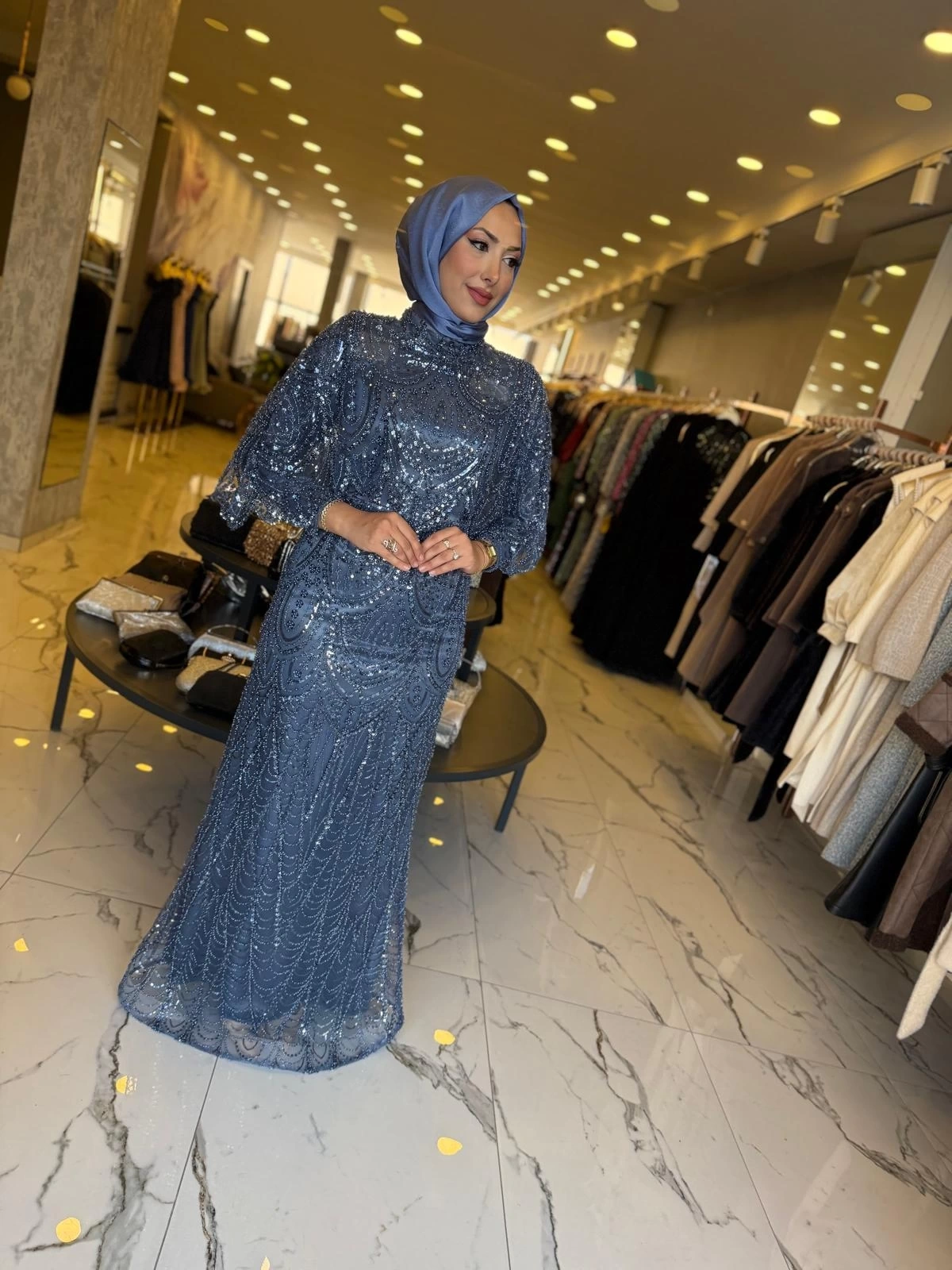 Merihce Luxury kalitesini her detayda hissedeceğiniz GAMZE ÖZKUL DİVA ABİYE İNDİGO, gardırobunuzun vazgeçilmezlerinden biri olmaya aday.