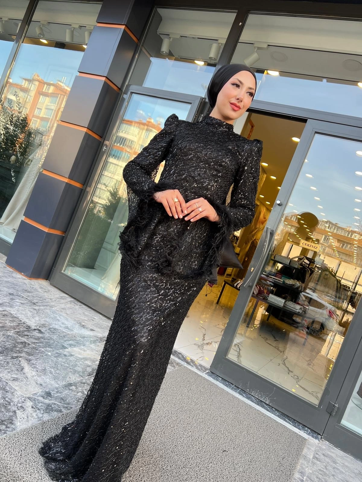 Merihce Luxury kalitesini her detayda hissedeceğiniz GAMZE ÖZKUL JADE ABİYE SİYAH, gardırobunuzun vazgeçilmezlerinden biri olmaya aday.
