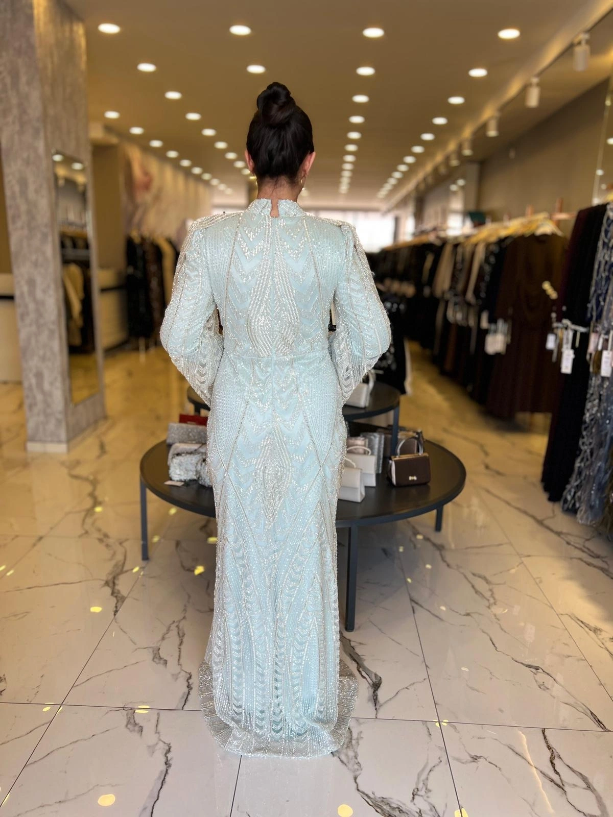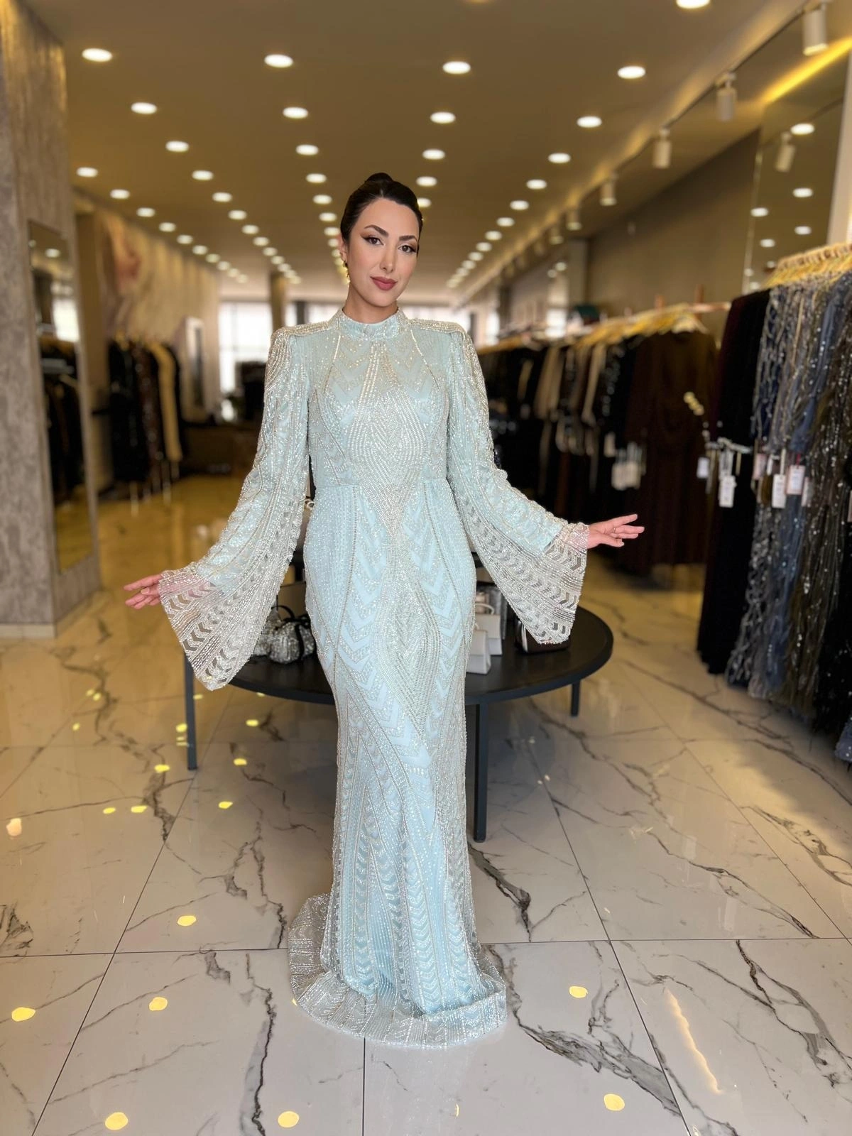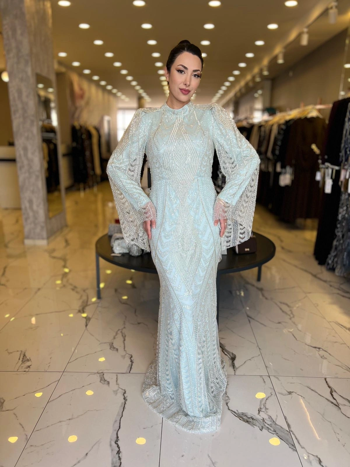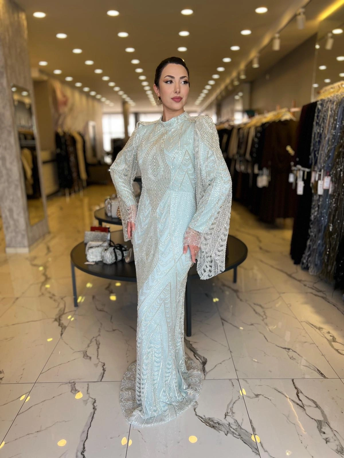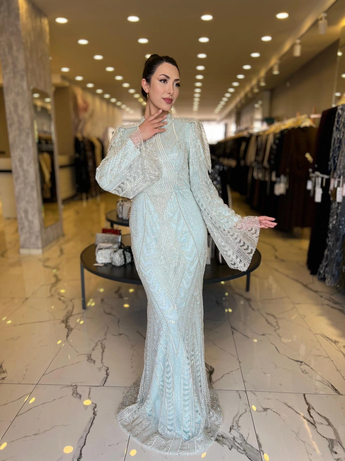 Merihce Luxury kalitesini her detayda hissedeceğiniz GAMZE ÖZKUL-MİLENDA ABİYE MİNT, gardırobunuzun vazgeçilmezlerinden biri olmaya aday.