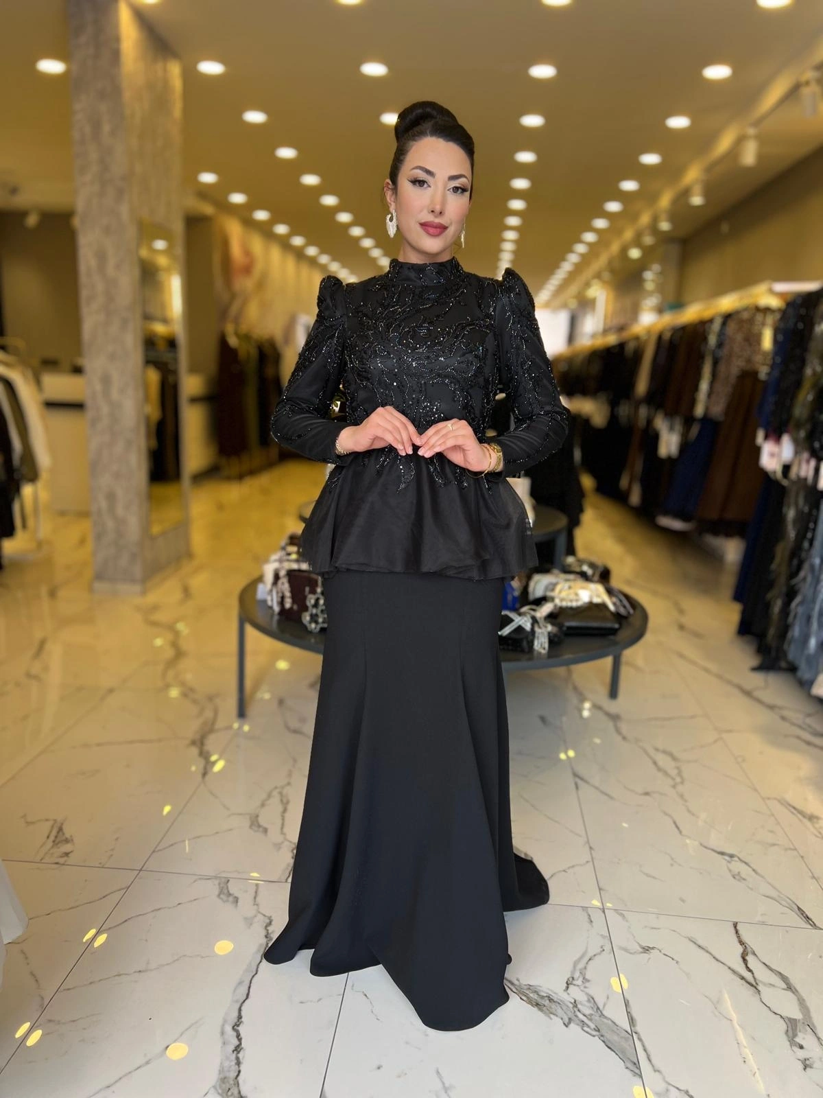 Merihce Luxury kalitesini her detayda hissedeceğiniz GAMZE ÖZKUL-RÜYA ABİYE SİYAH, gardırobunuzun vazgeçilmezlerinden biri olmaya aday.