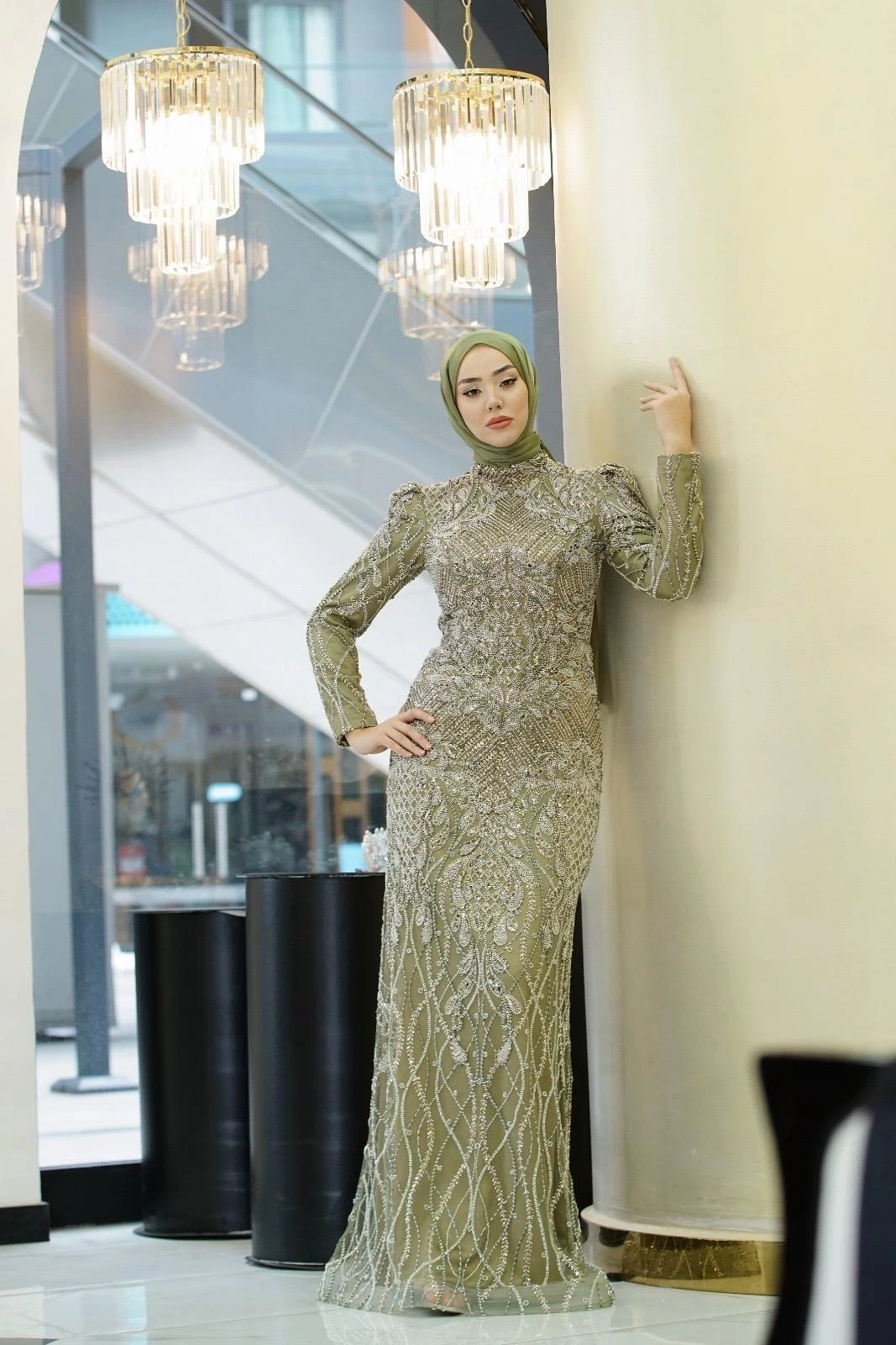Merihce Luxury kalitesini her detayda hissedeceğiniz GAMZE ÖZKUL SENA ABİYE HAKİ, gardırobunuzun vazgeçilmezlerinden biri olmaya aday.