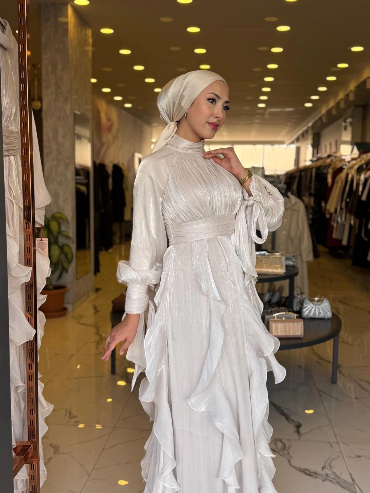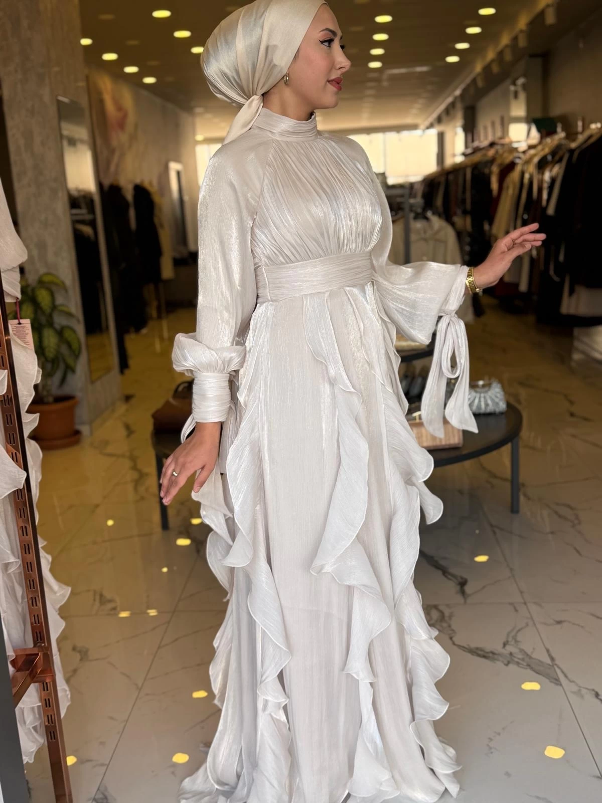 Merihce Luxury kalitesini her detayda hissedeceğiniz GAMZE ÖZKUL-TÜL DETAY DORA ABİYE BEJ, gardırobunuzun vazgeçilmezlerinden biri olmaya aday.