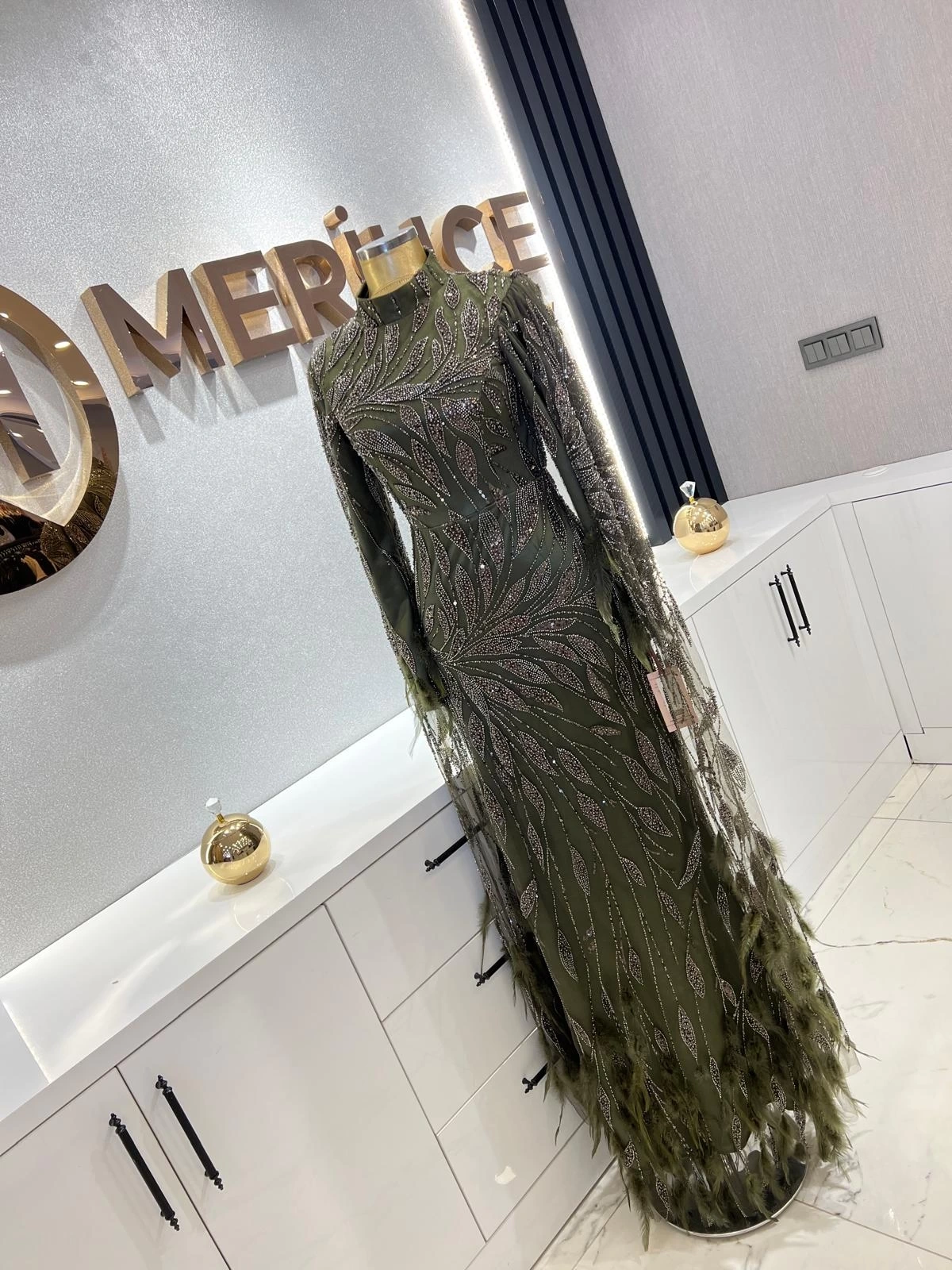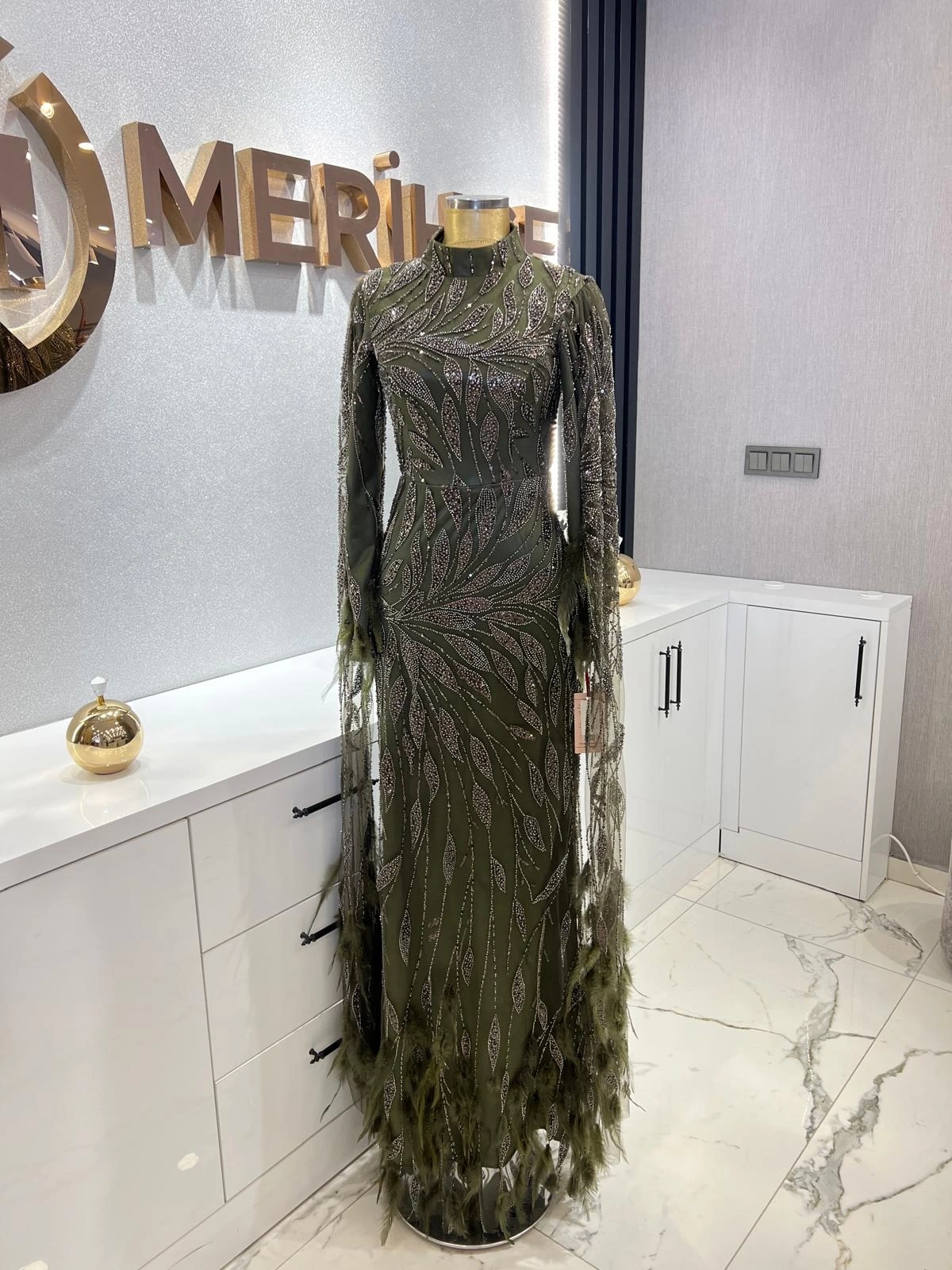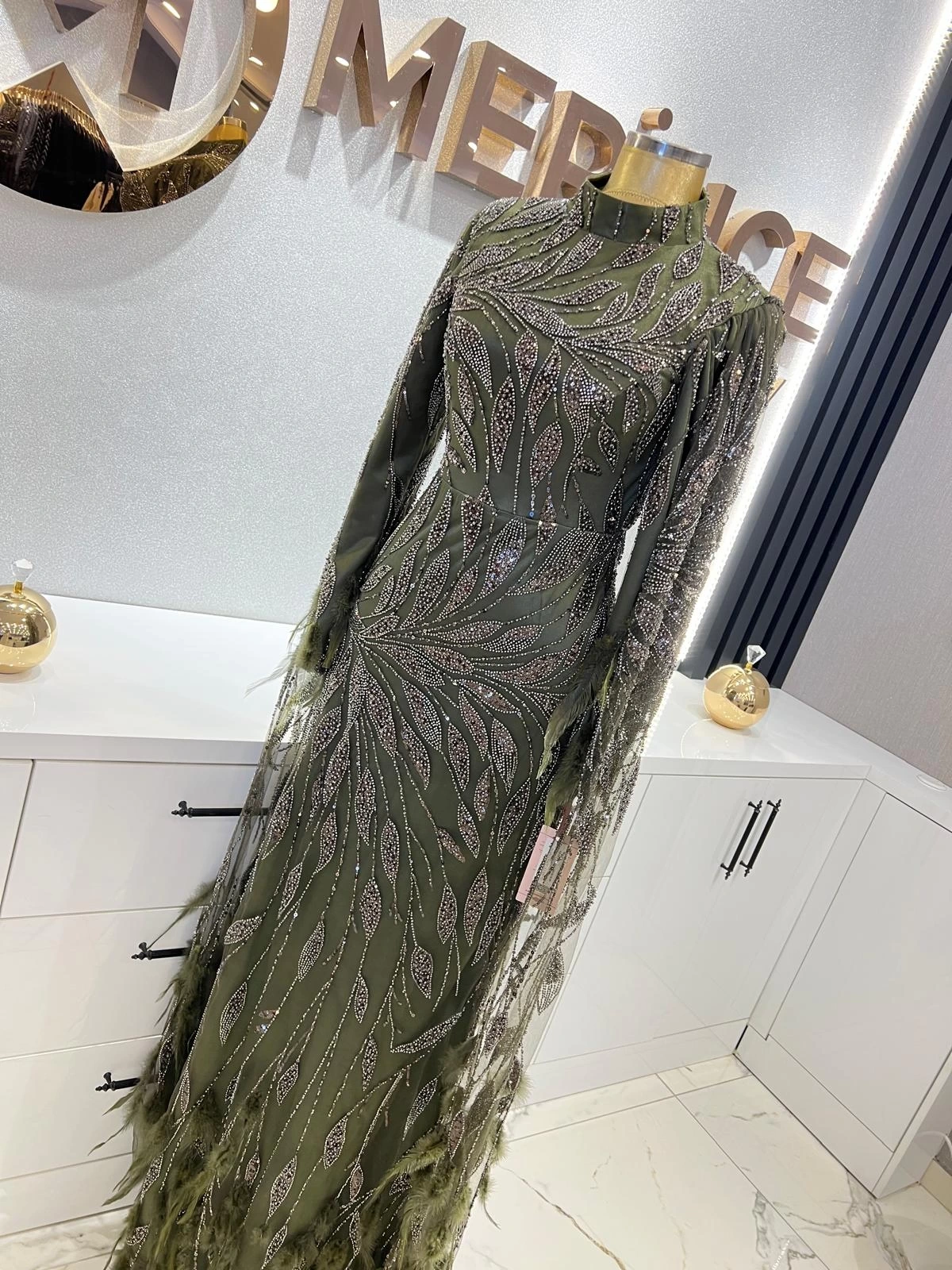 Merihce Luxury kalitesini her detayda hissedeceğiniz GM8066-KUŞ TÜYLÜ ABİYE YEŞİL, gardırobunuzun vazgeçilmezlerinden biri olmaya aday.