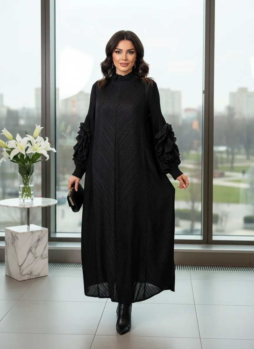 Merihce Luxury kalitesini her detayda hissedeceğiniz İTHAL-KOLU GÜL DESENLİ ELBİSE SİYAH, gardırobunuzun vazgeçilmezlerinden biri olmaya aday.
