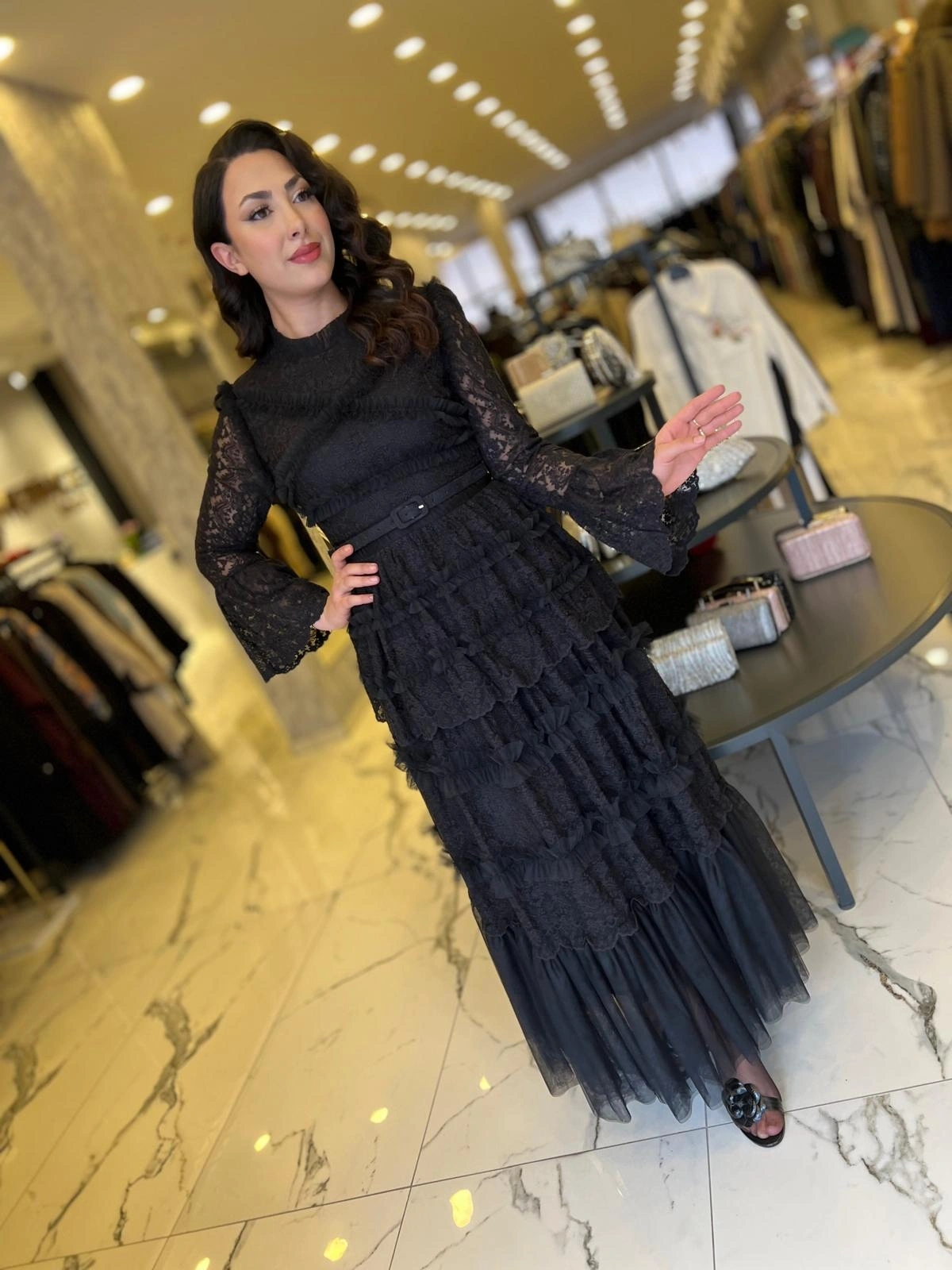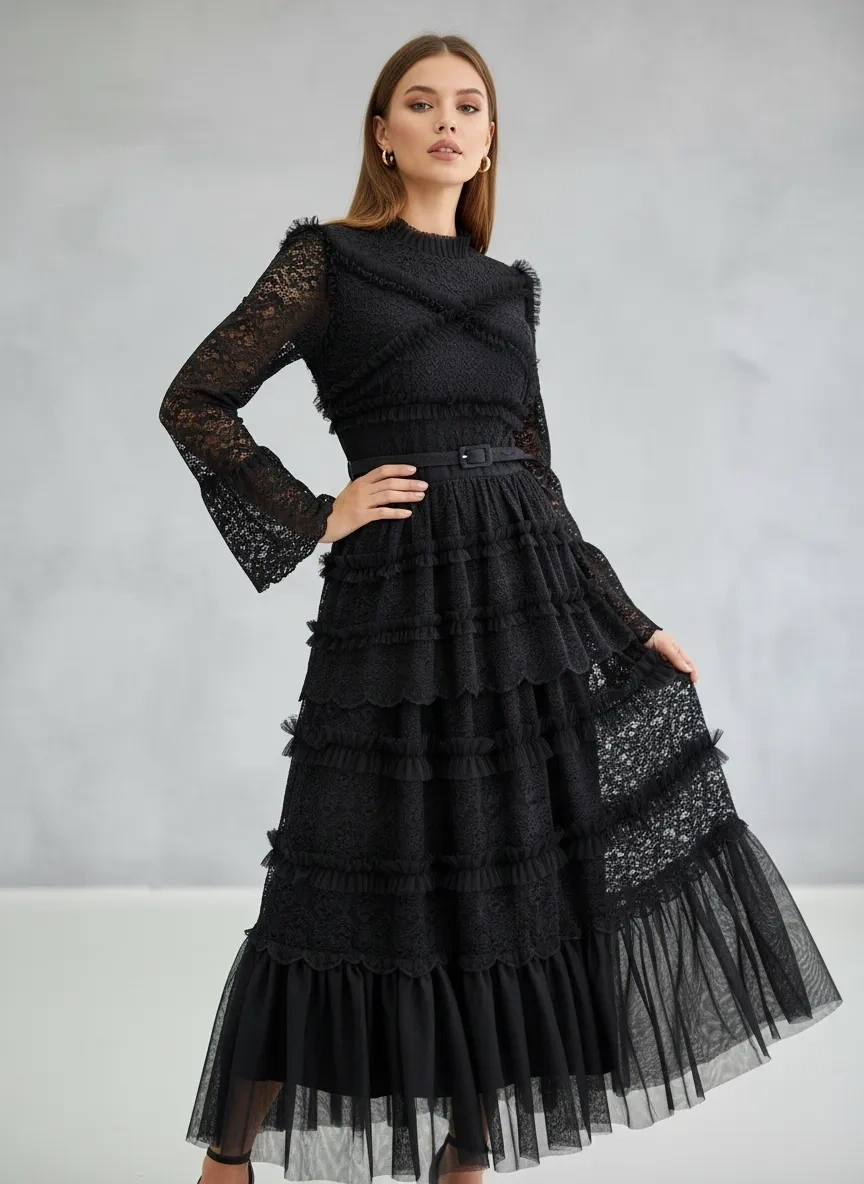 Merihce Luxury kalitesini her detayda hissedeceğiniz İTHAL-TÜL ELBİSE SİYAH, gardırobunuzun vazgeçilmezlerinden biri olmaya aday.