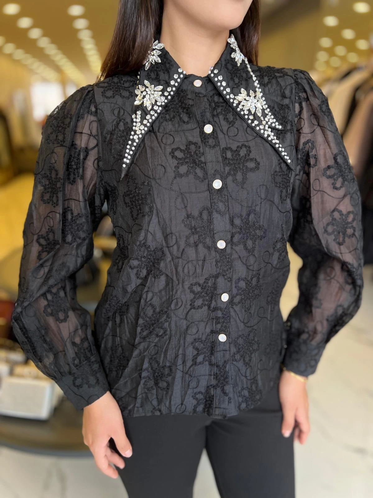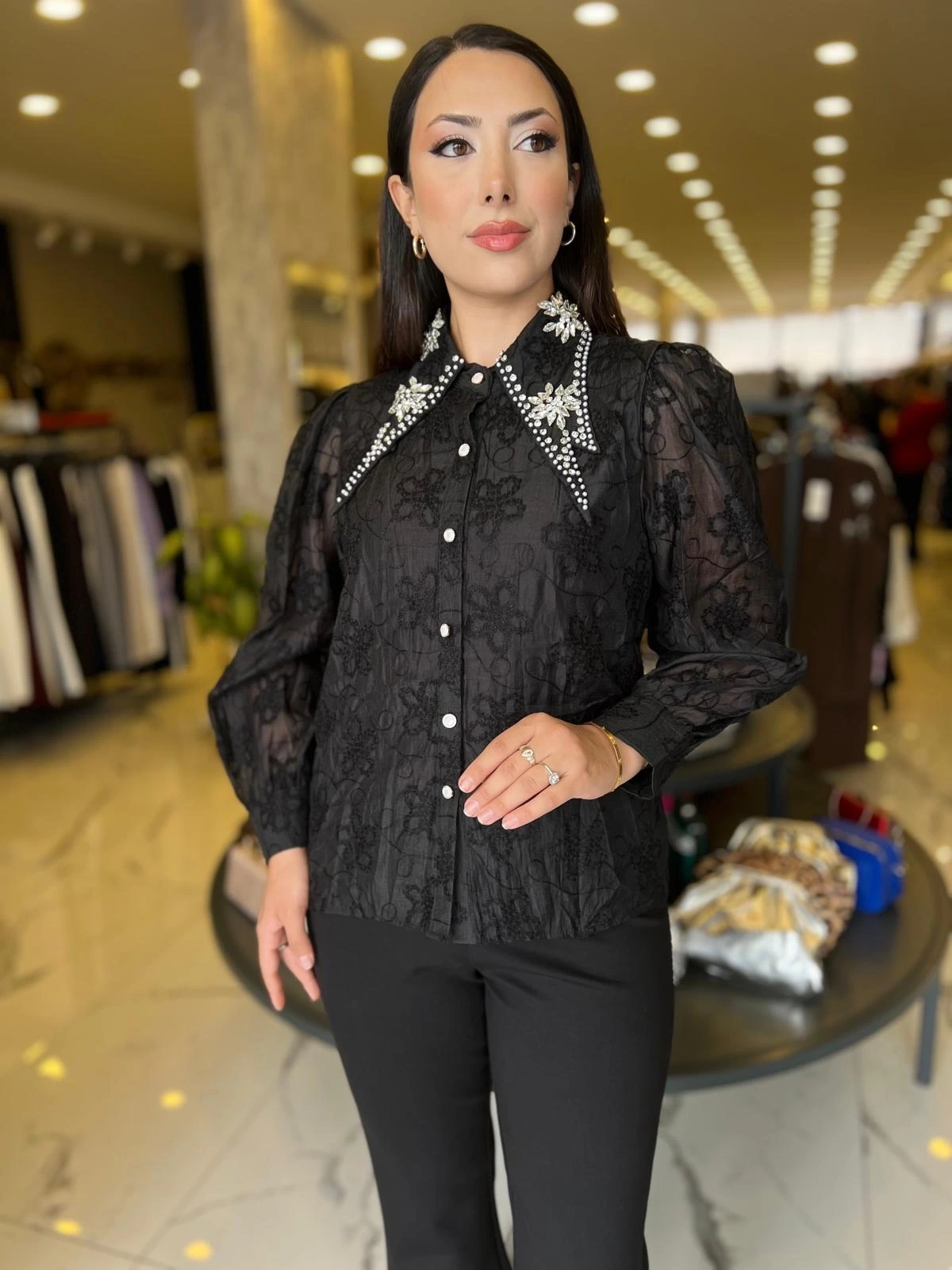 Merihce Luxury kalitesini her detayda hissedeceğiniz İTHAL-YAKASI TAŞLI İTHAL GÖMLEK SİYAH, gardırobunuzun vazgeçilmezlerinden biri olmaya aday.