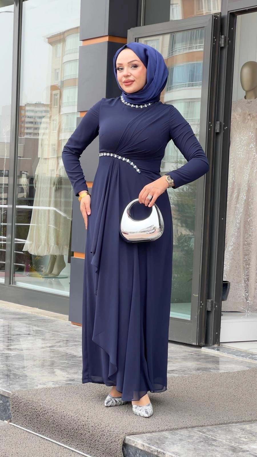 MATEKS-BELİ TAŞLI ELBİSE LACİVERT