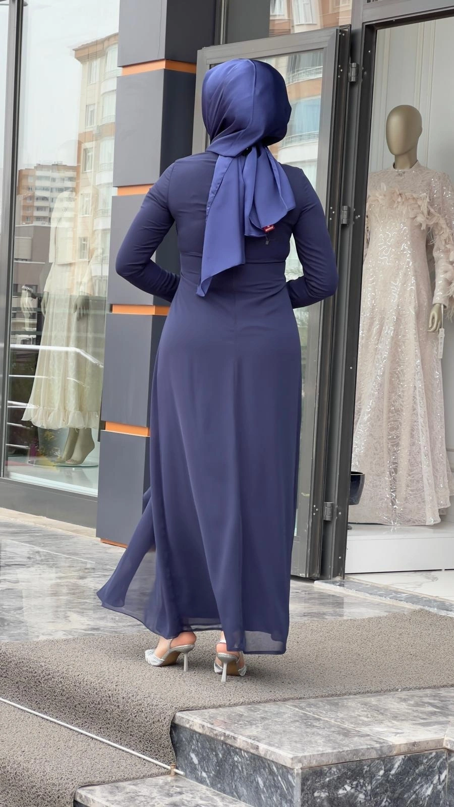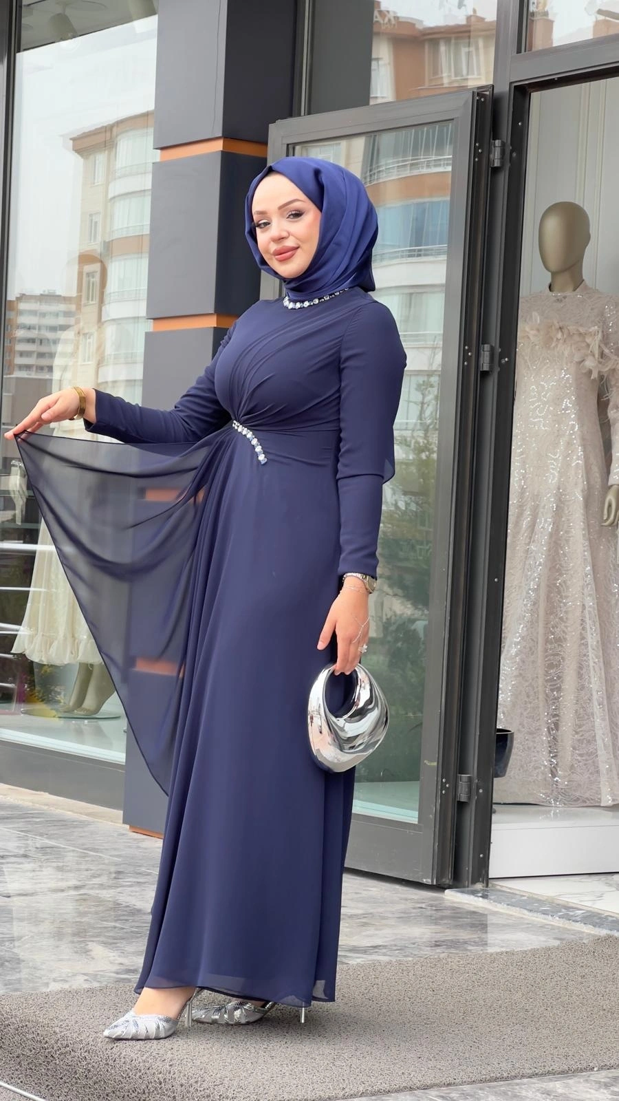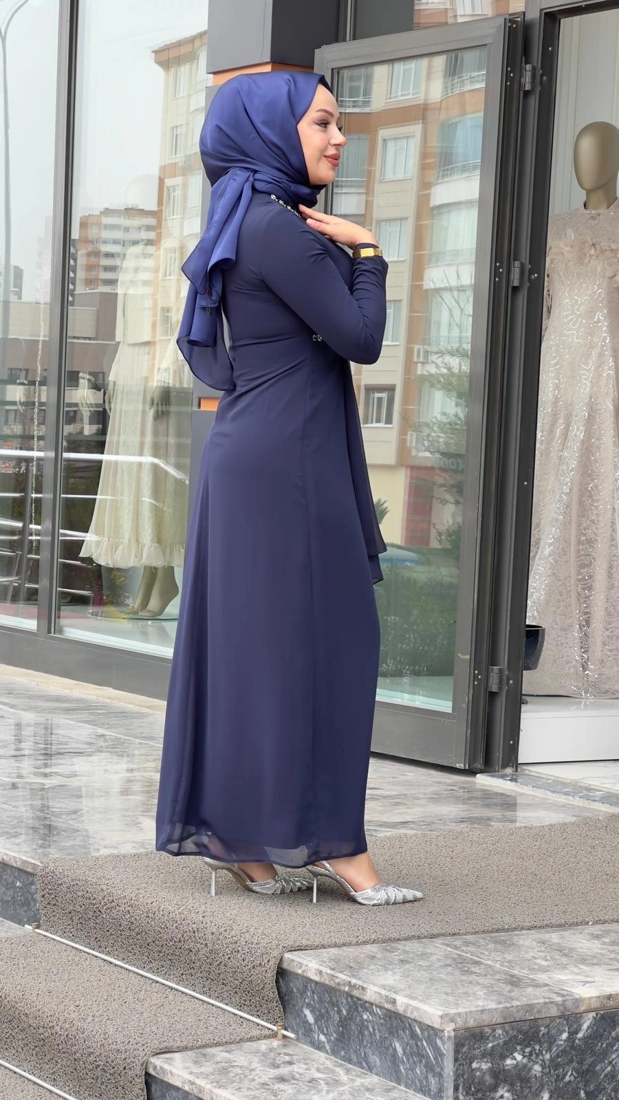 Merihce Luxury kalitesini her detayda hissedeceğiniz MATEKS-BELİ TAŞLI ELBİSE LACİVERT, gardırobunuzun vazgeçilmezlerinden biri olmaya aday.