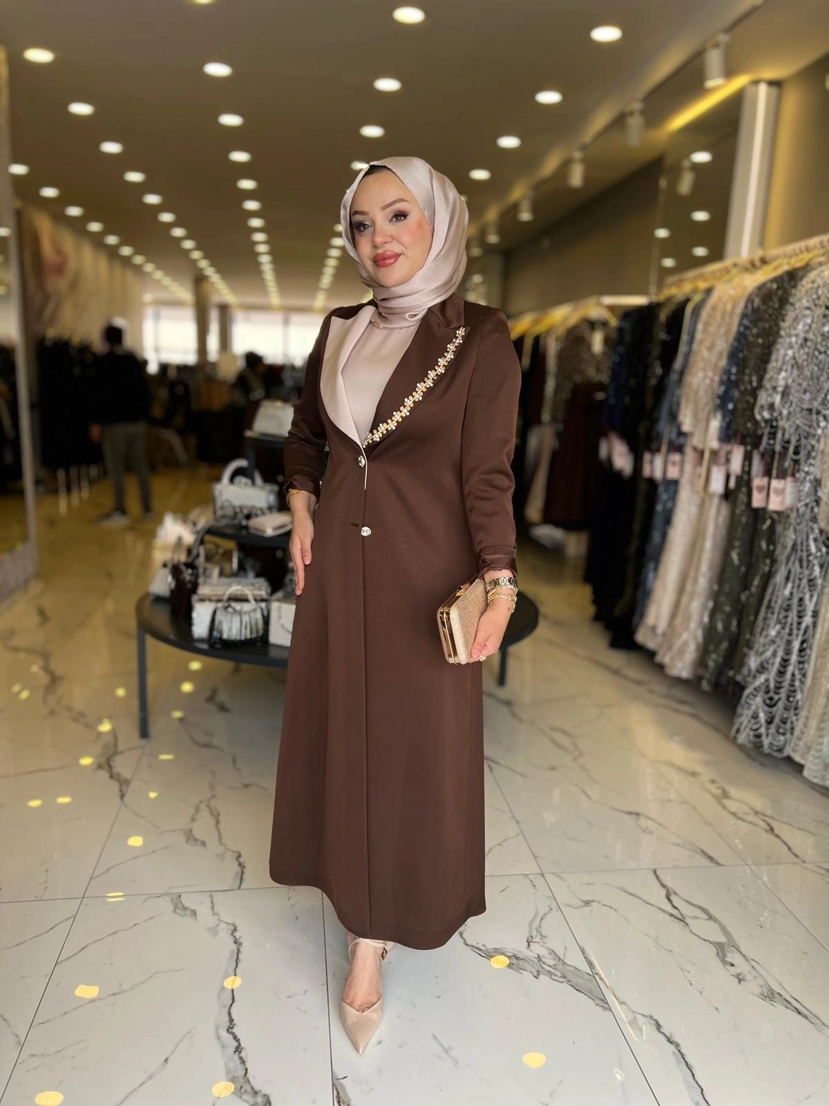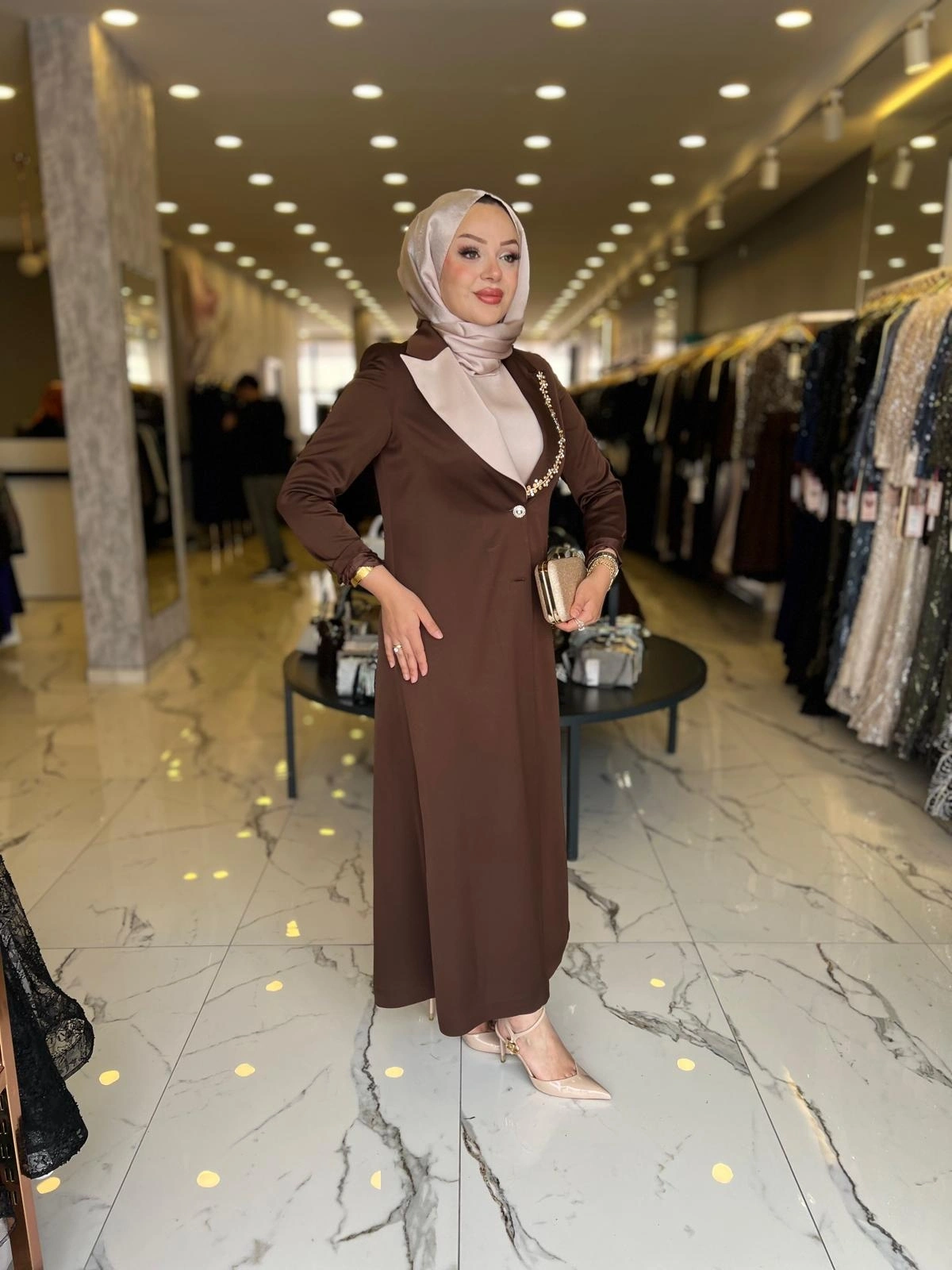 Merihce Luxury kalitesini her detayda hissedeceğiniz MATEKS-CEKETLİ ELBİSELİ TAKIM KAHVE, gardırobunuzun vazgeçilmezlerinden biri olmaya aday.
