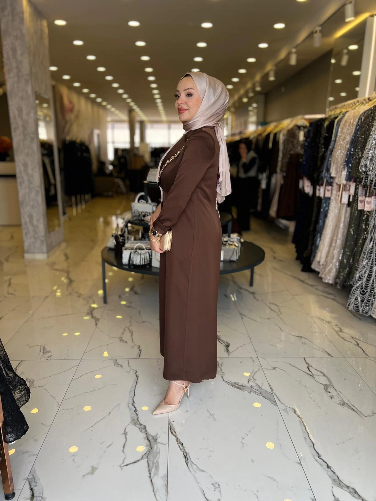 MATEKS-CEKETLİ ELBİSELİ TAKIM KAHVE