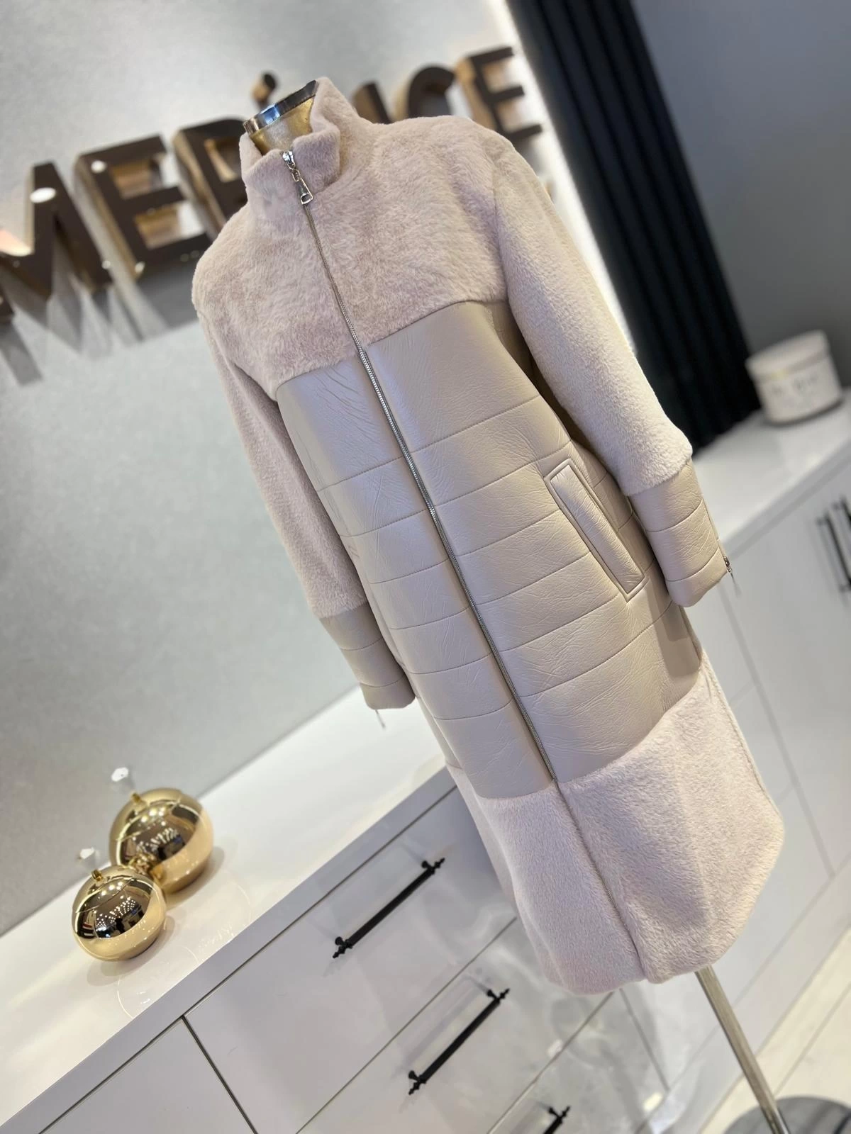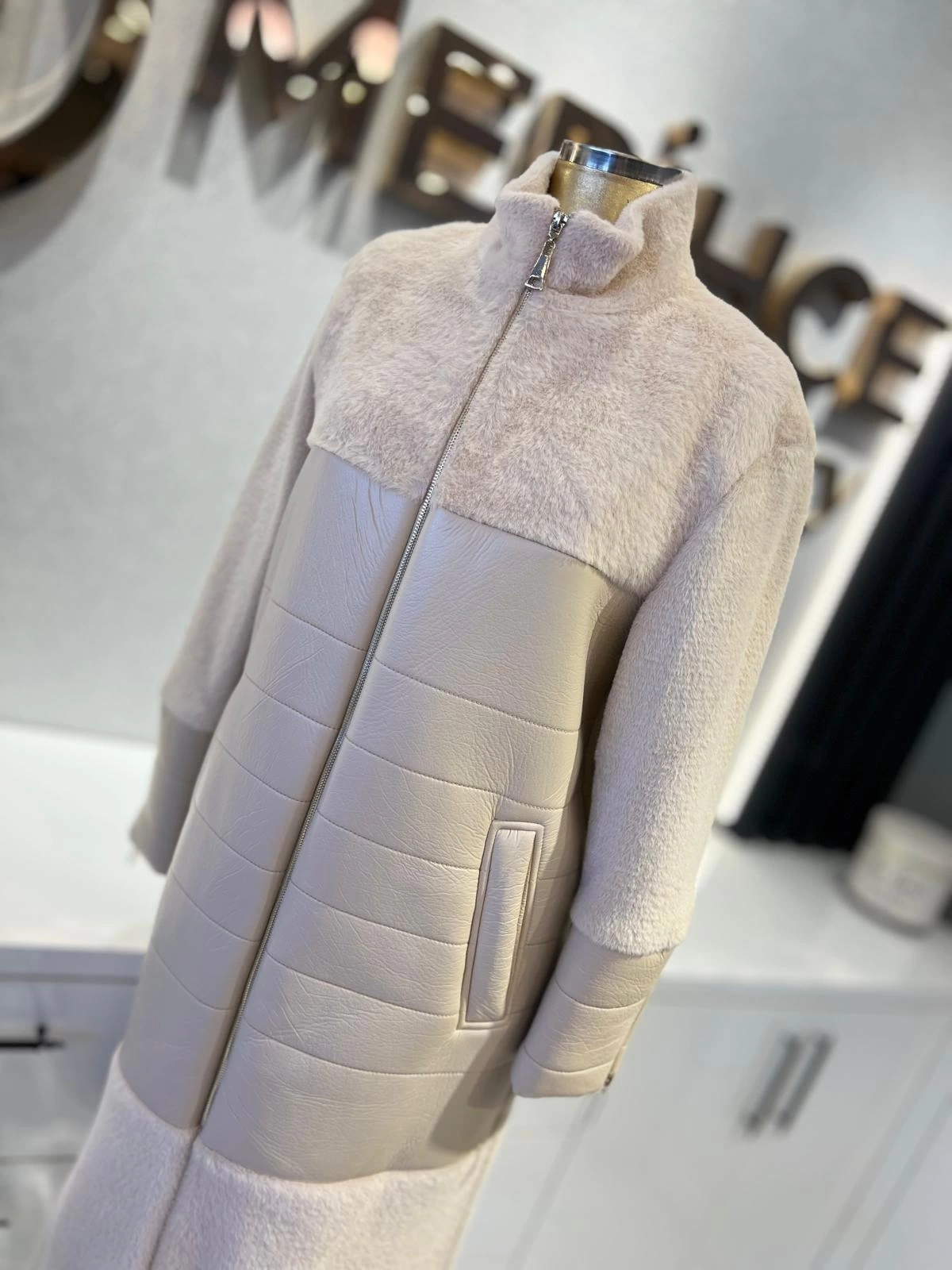 MATEKS-DERİ DETAYLI ANGORA KABAN BEJ