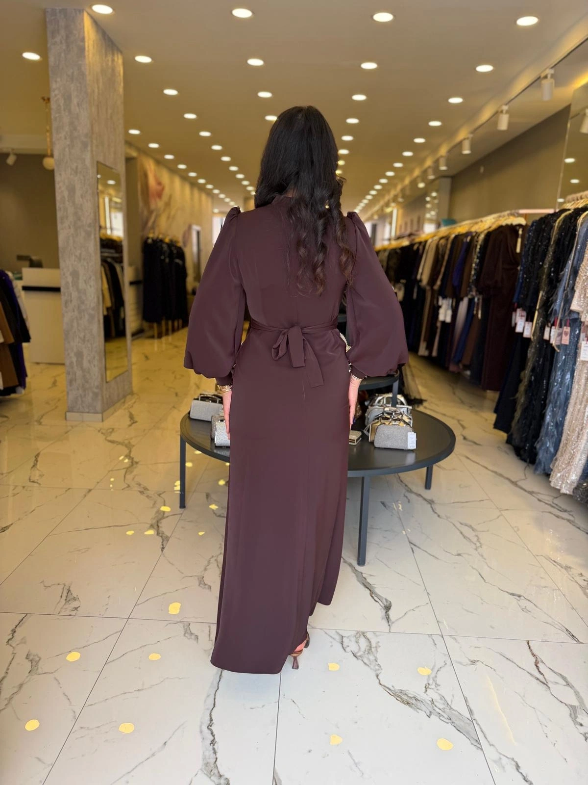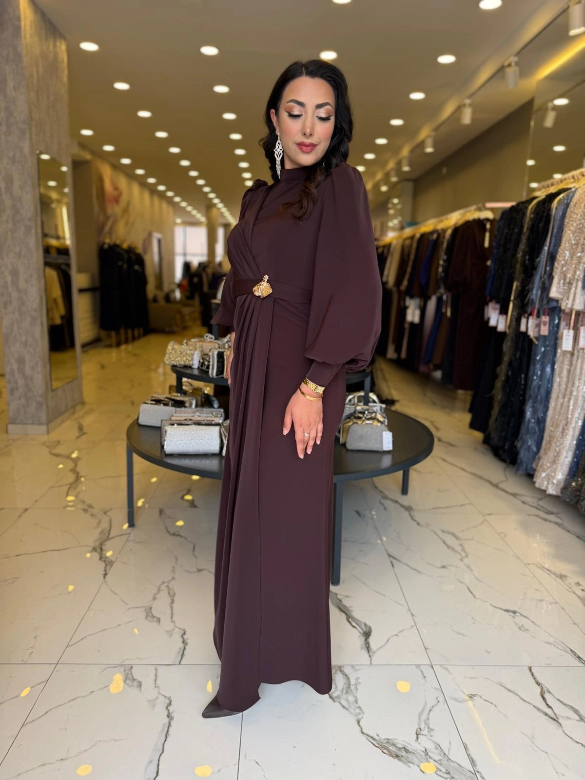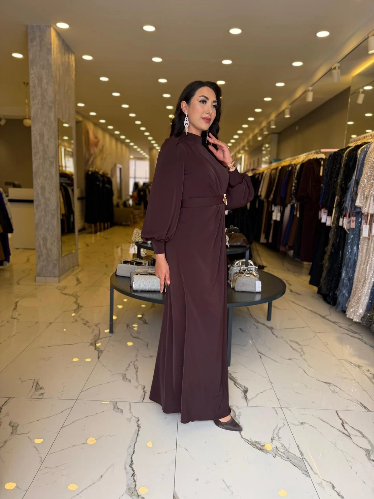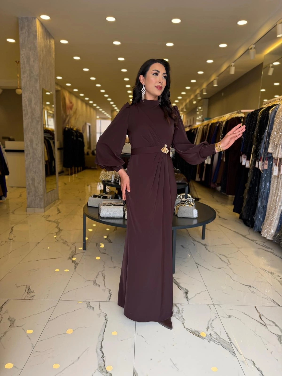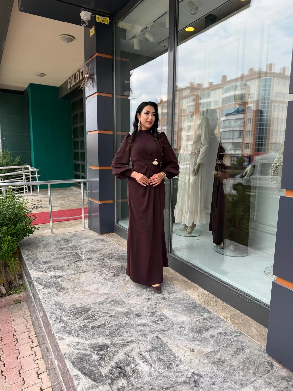 Merihce Luxury kalitesini her detayda hissedeceğiniz MATEKS-DRAPELİ BROŞ DETAYLI ELBİSE KAHVE, gardırobunuzun vazgeçilmezlerinden biri olmaya aday.