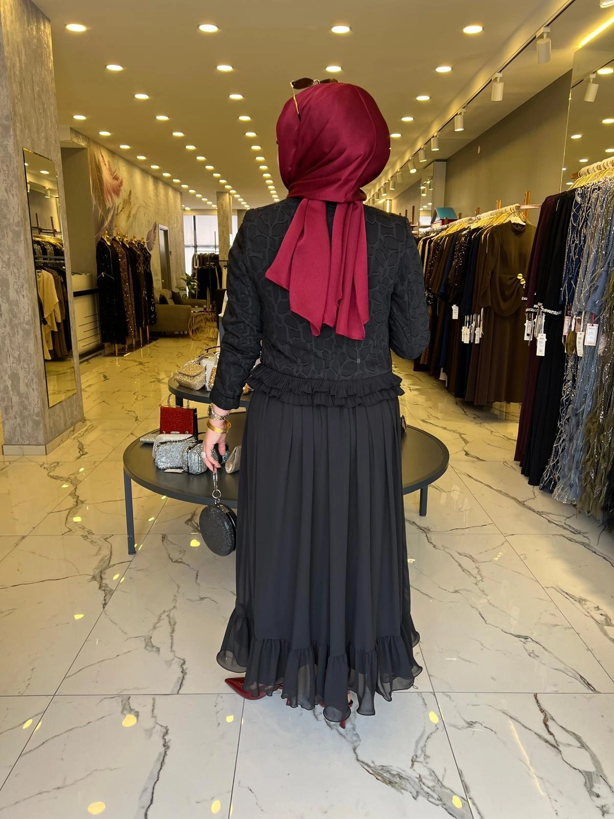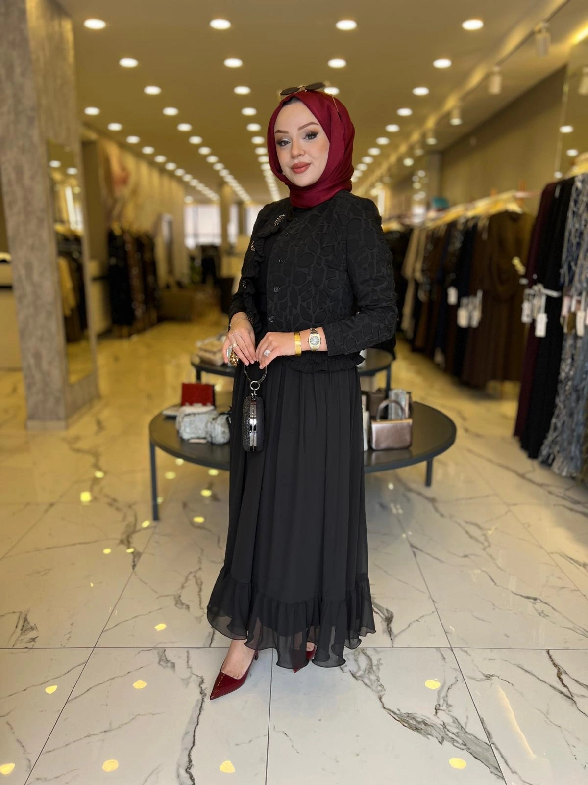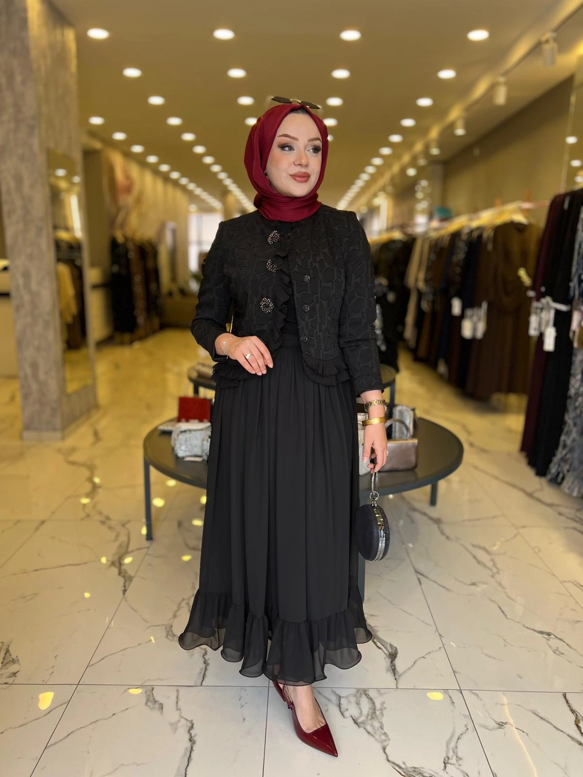 Merihce Luxury kalitesini her detayda hissedeceğiniz MATEKS-İNCİ DETAY ETEKLİ TAKIM SİYAH, gardırobunuzun vazgeçilmezlerinden biri olmaya aday.
