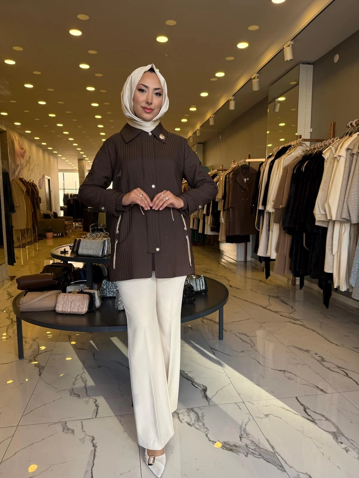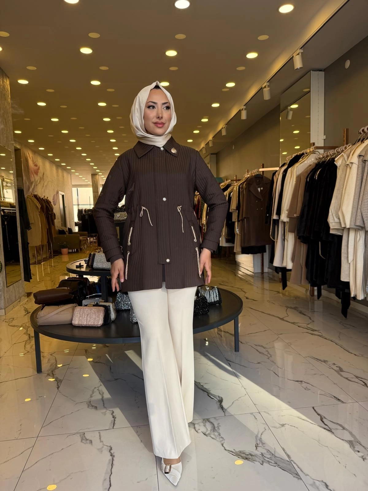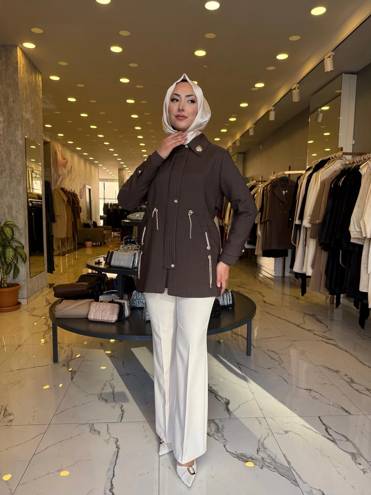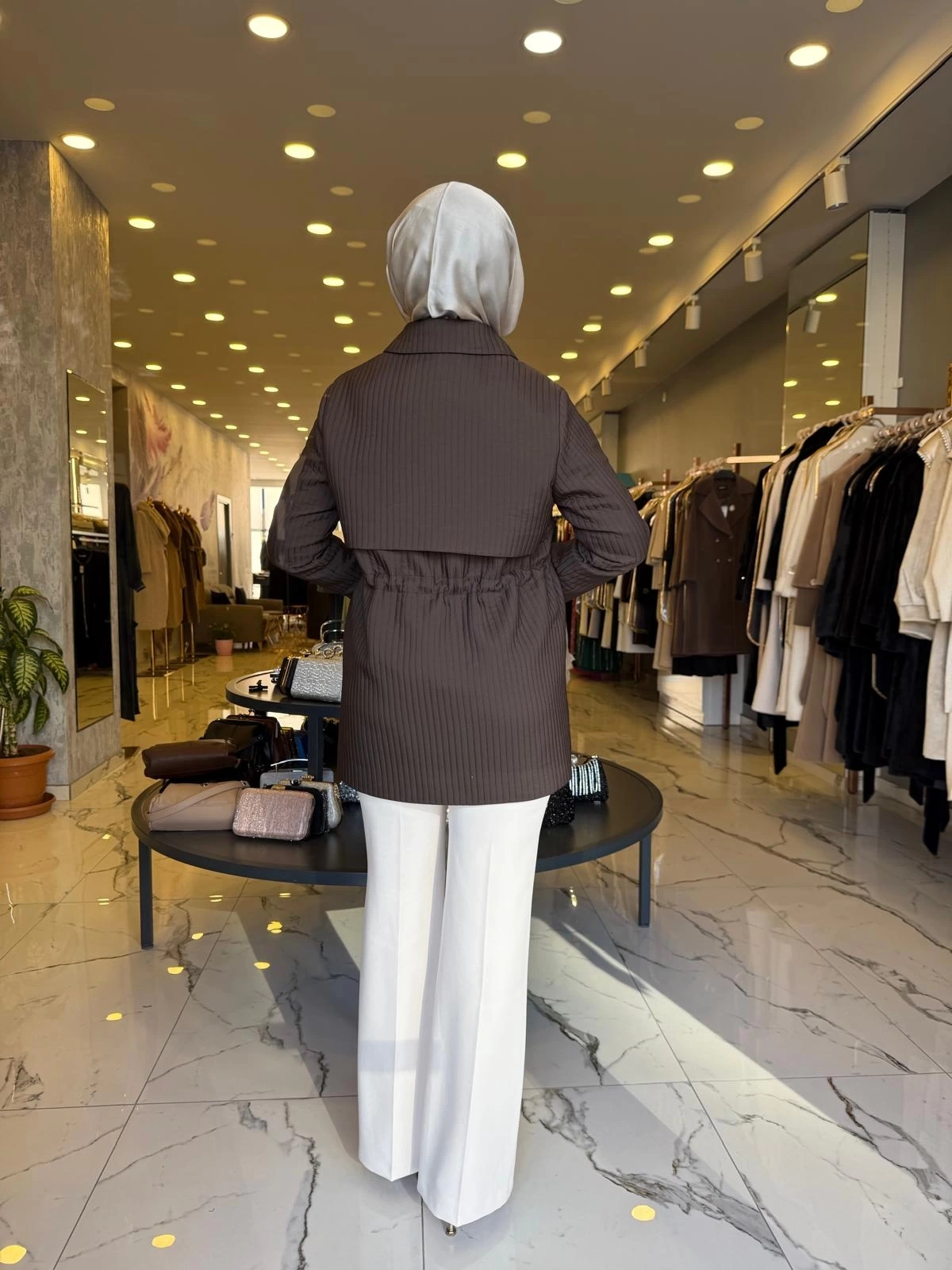 MATEKS-KENDİNDEN ÇİZGİLİ TRENÇ KAHVE