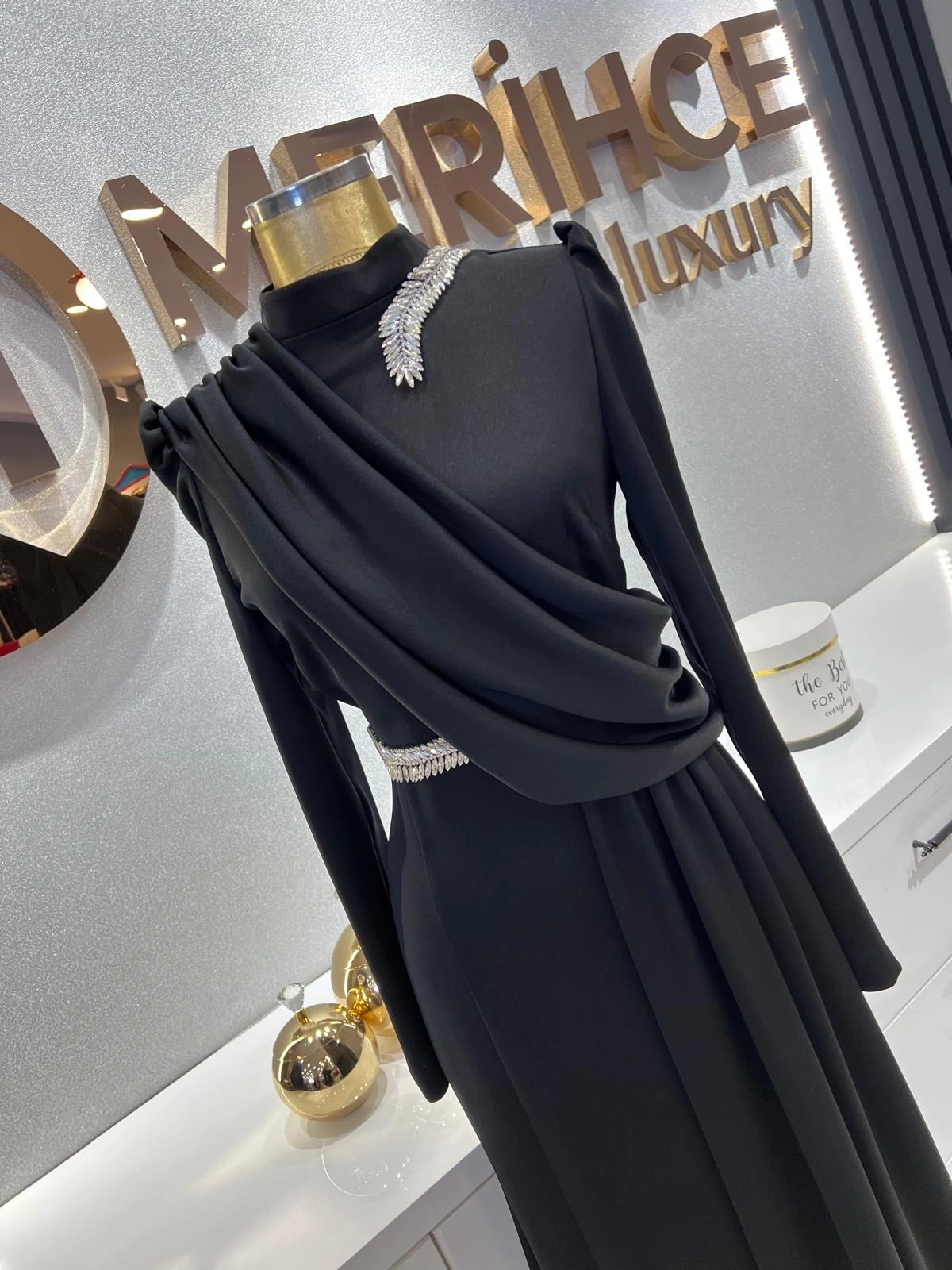 Merihce Luxury kalitesini her detayda hissedeceğiniz MATEKS-KREP SATEN BALIK ELBİSE SİYAH, gardırobunuzun vazgeçilmezlerinden biri olmaya aday.
