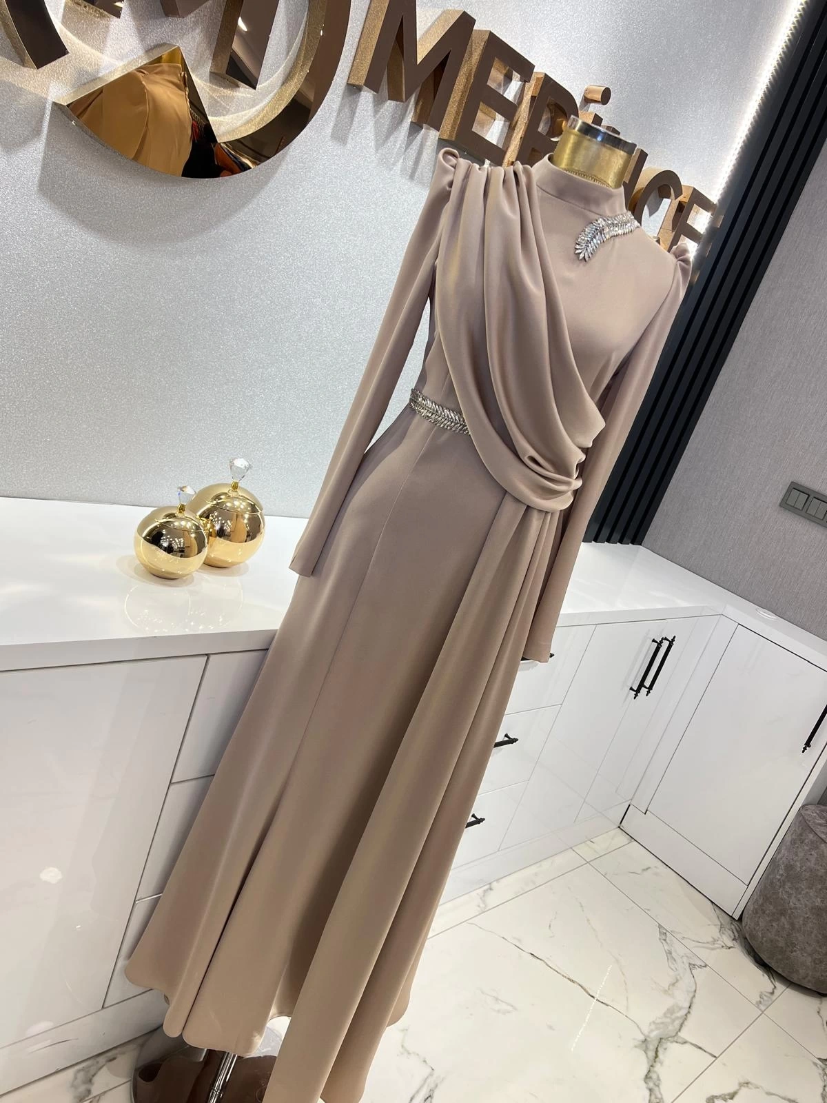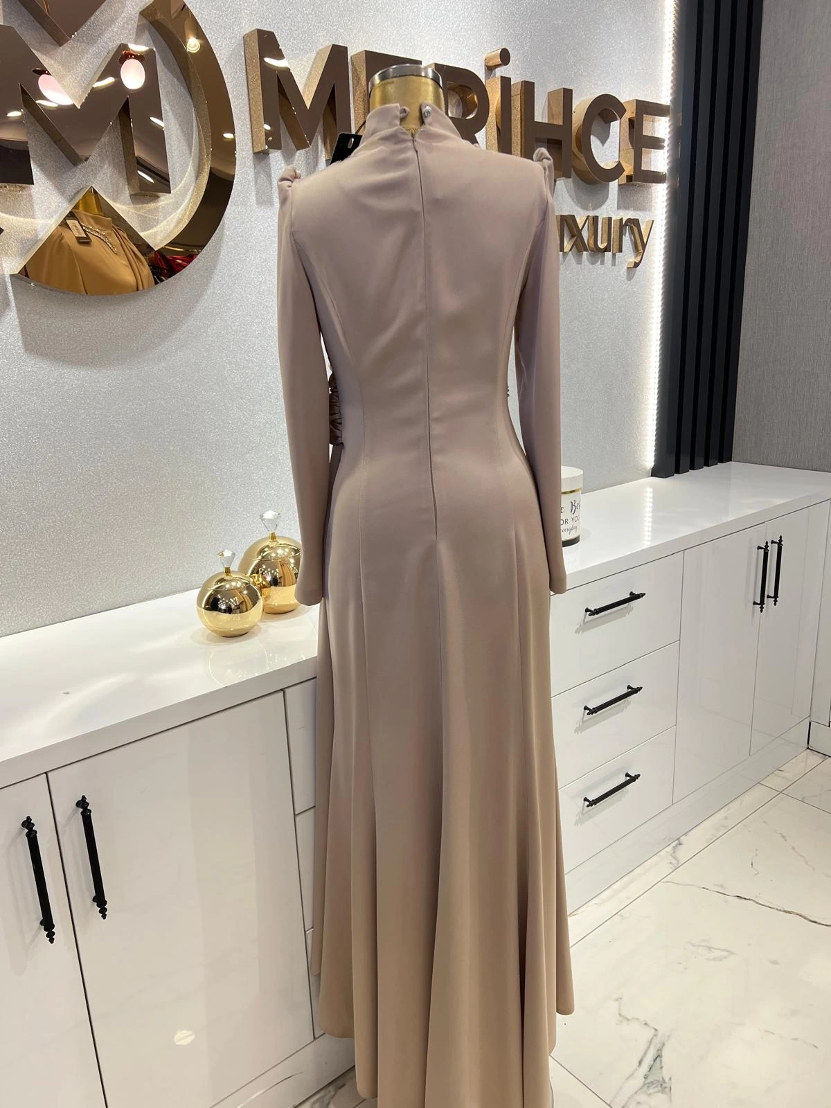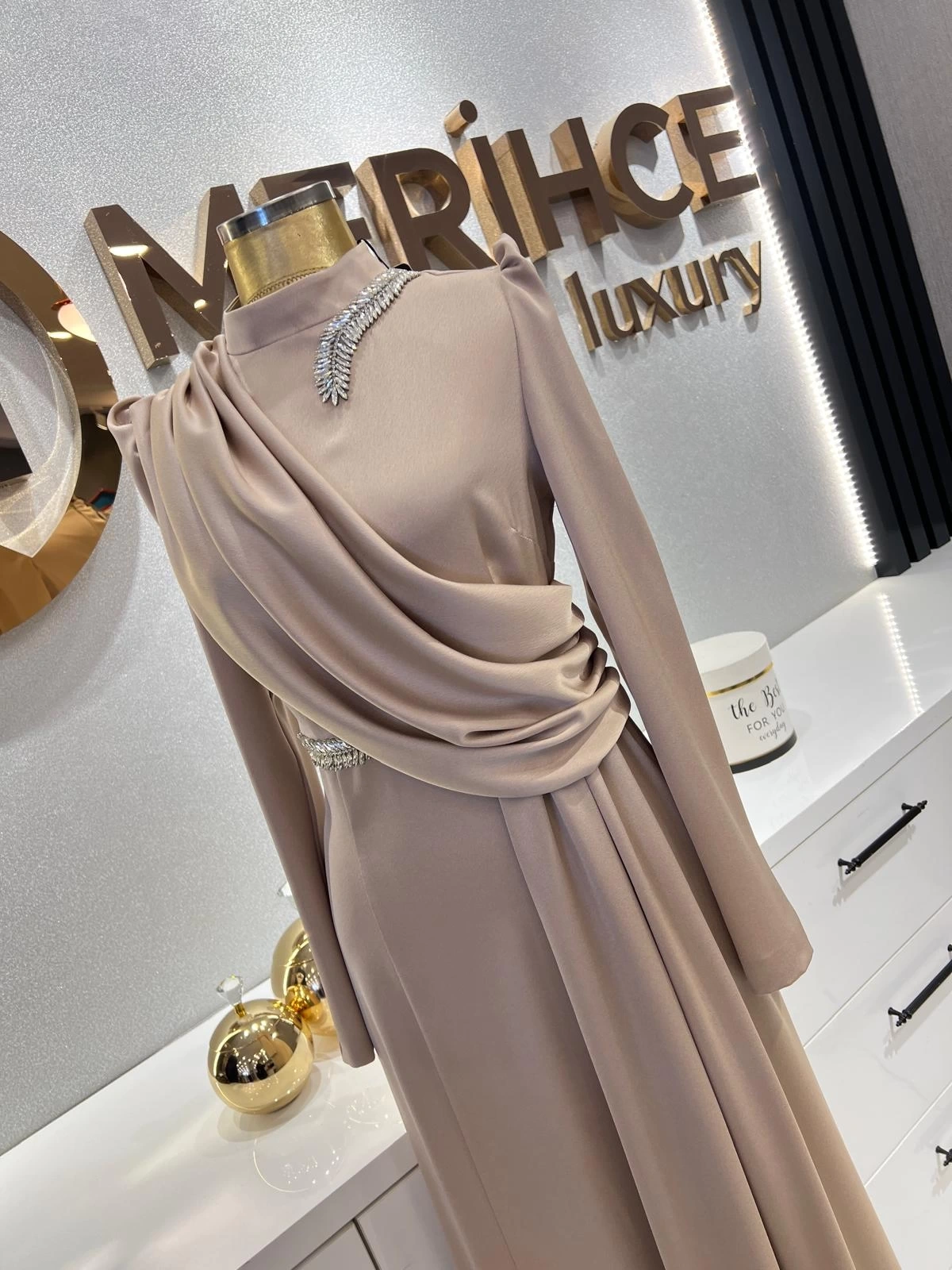 Merihce Luxury kalitesini her detayda hissedeceğiniz MATEKS-KREP SATEN BALIK ELBİSE VİZON, gardırobunuzun vazgeçilmezlerinden biri olmaya aday.