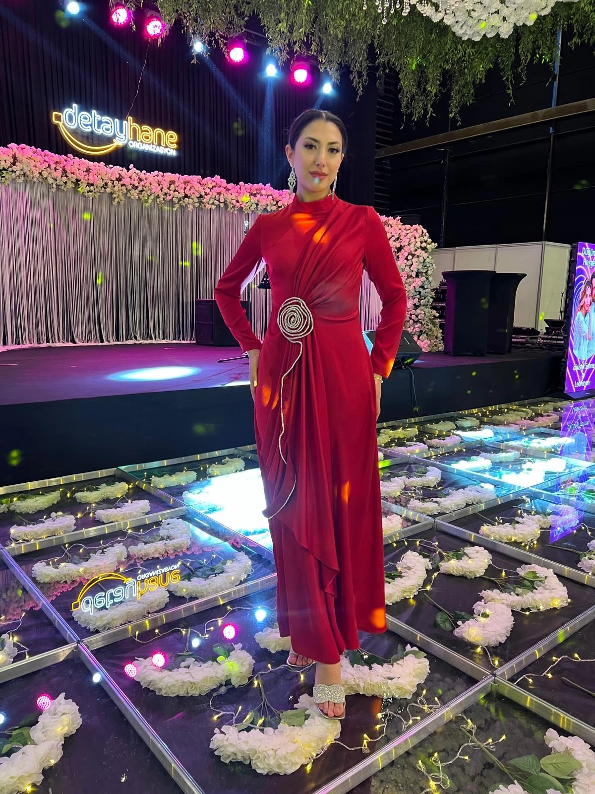 Merihce Luxury kalitesini her detayda hissedeceğiniz MATEKS-KREP SATEN GÜLLÜ ELBİSE KIRMIZI, gardırobunuzun vazgeçilmezlerinden biri olmaya aday.