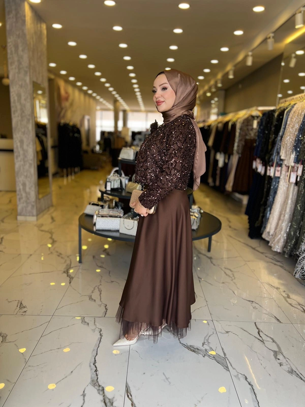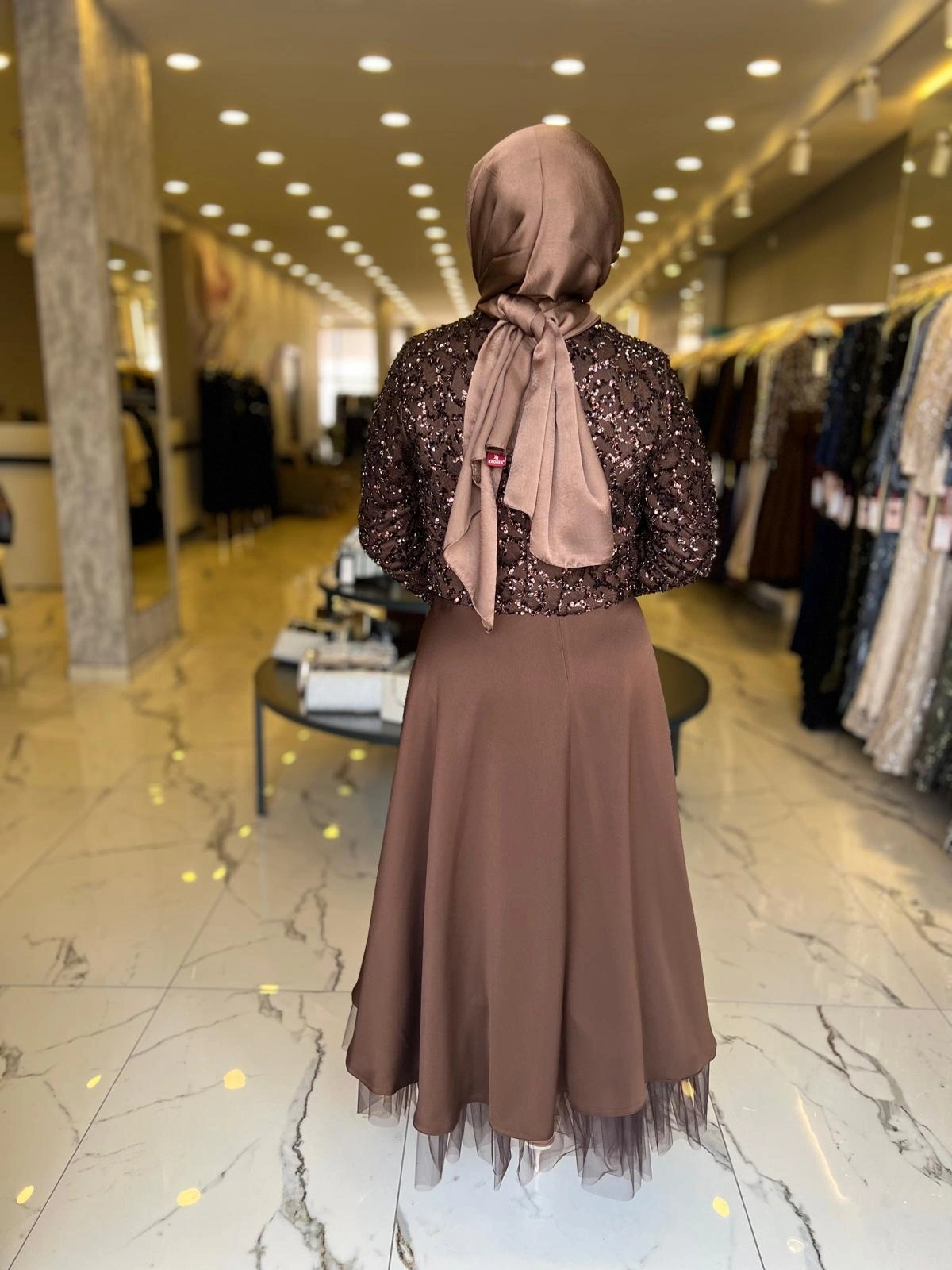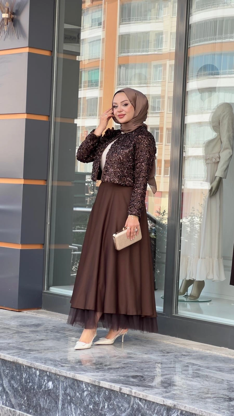 Merihce Luxury kalitesini her detayda hissedeceğiniz MATEKS-PAYETLİ CEKET ETEKLİ TAKIM KAHVE, gardırobunuzun vazgeçilmezlerinden biri olmaya aday.