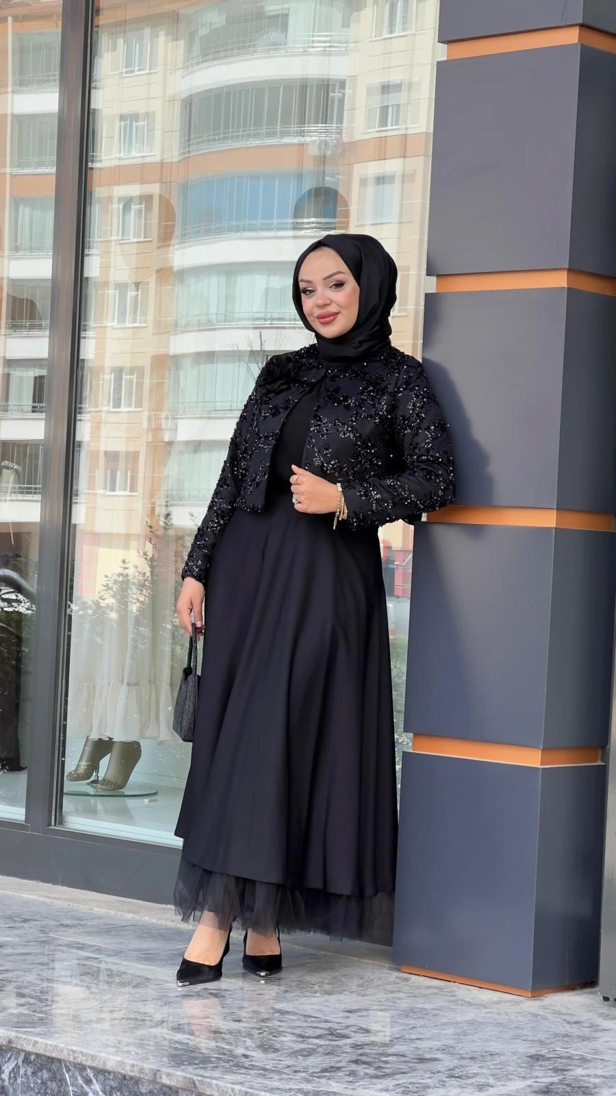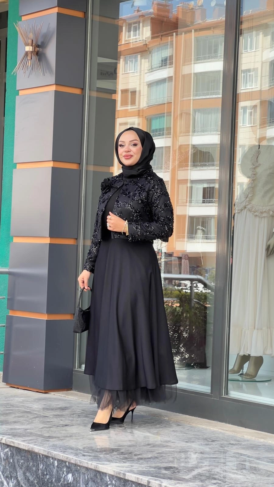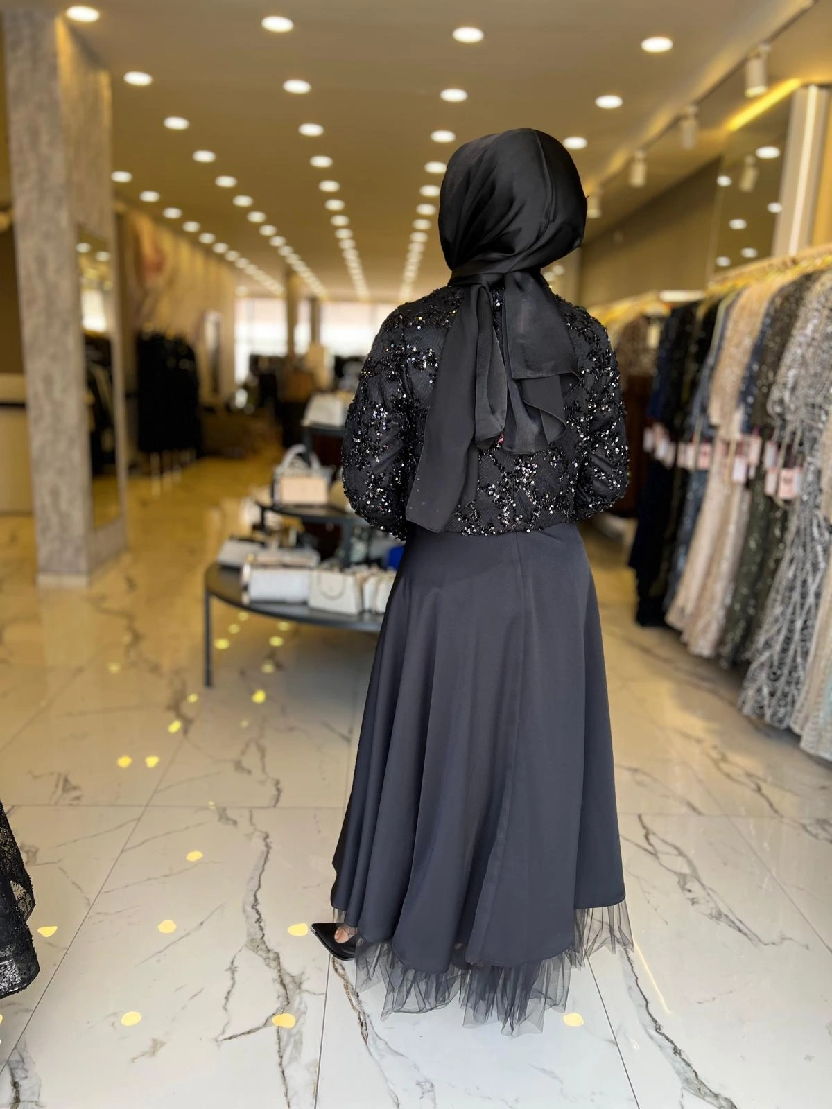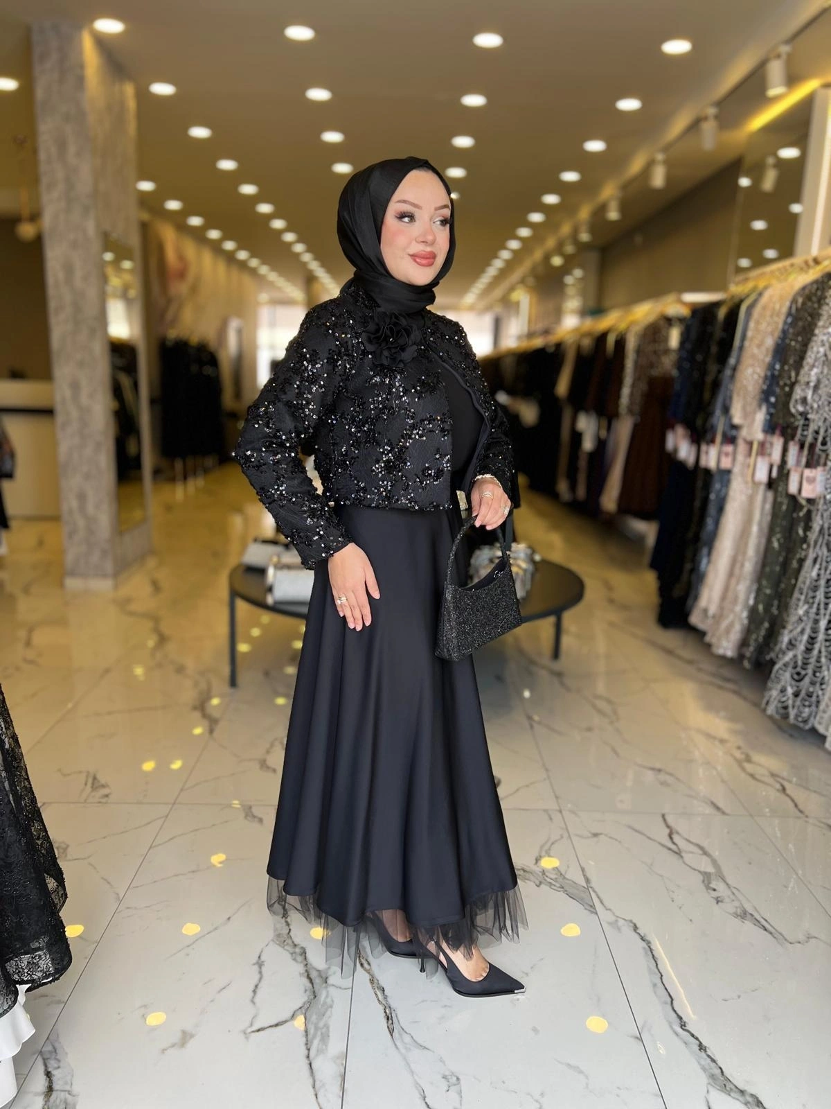 Merihce Luxury kalitesini her detayda hissedeceğiniz MATEKS-PAYETLİ CEKET ETEKLİ TAKIM SİYAH, gardırobunuzun vazgeçilmezlerinden biri olmaya aday.