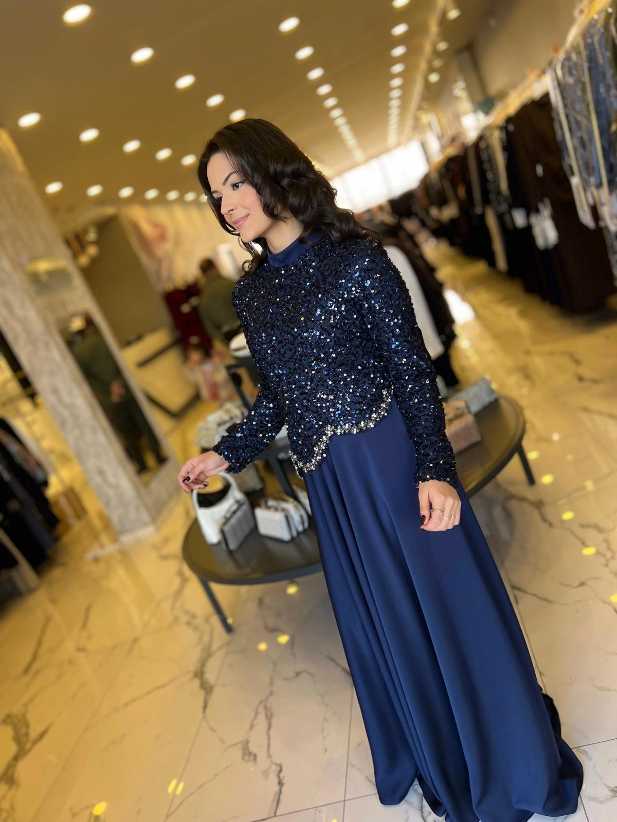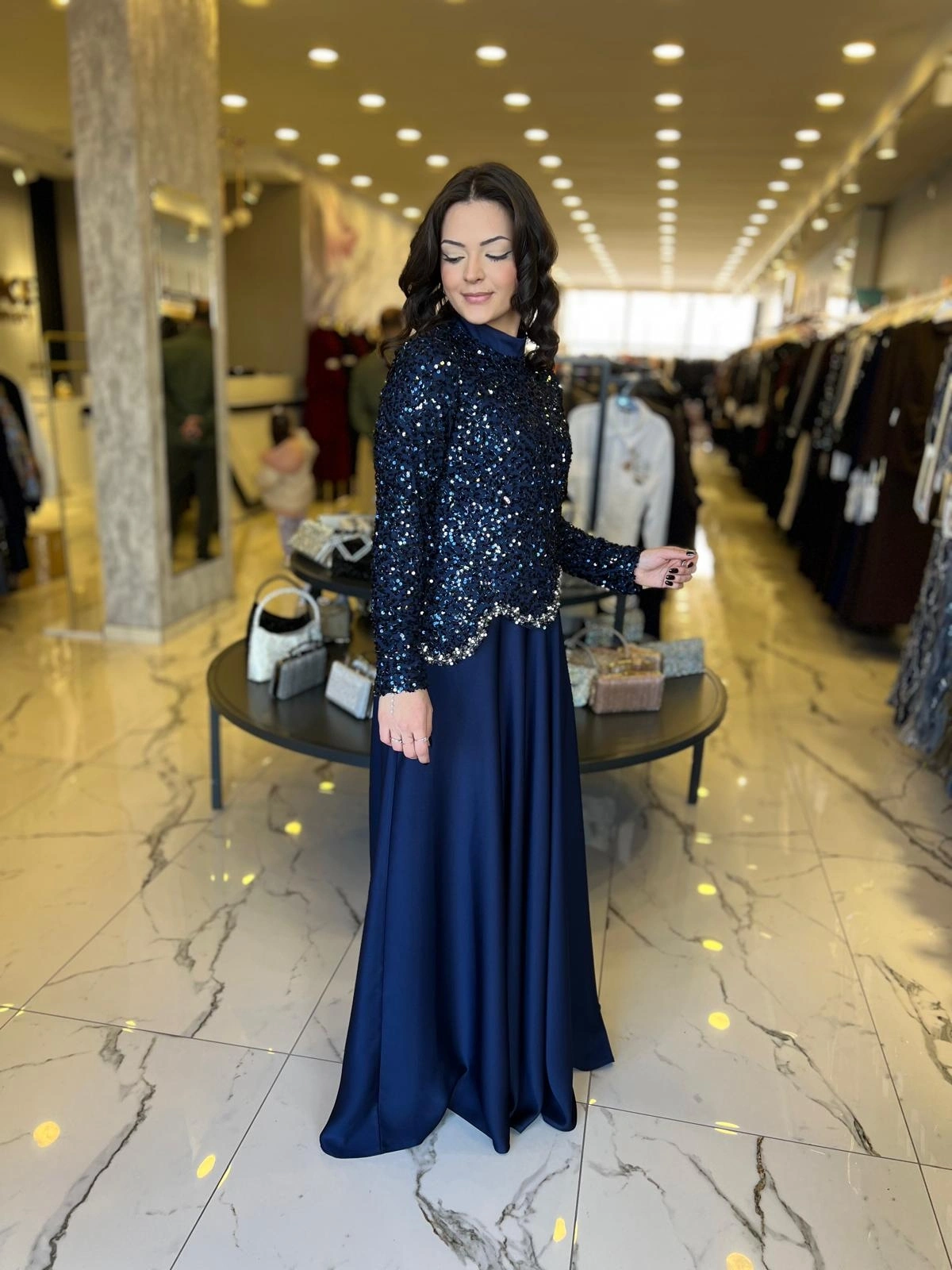 Merihce Luxury kalitesini her detayda hissedeceğiniz MATEKS-PAYETLİ ELBİSE LACİVERT, gardırobunuzun vazgeçilmezlerinden biri olmaya aday.