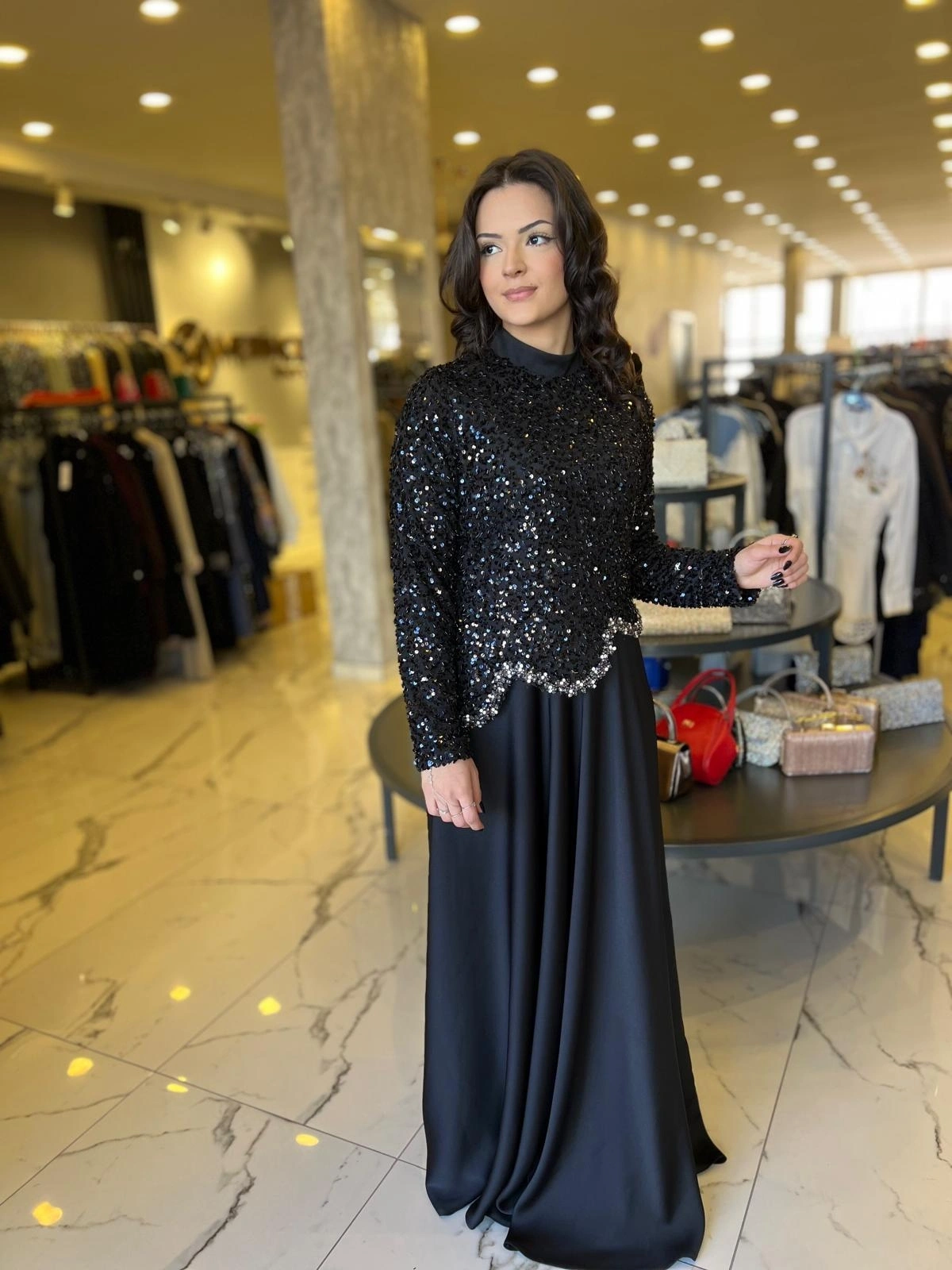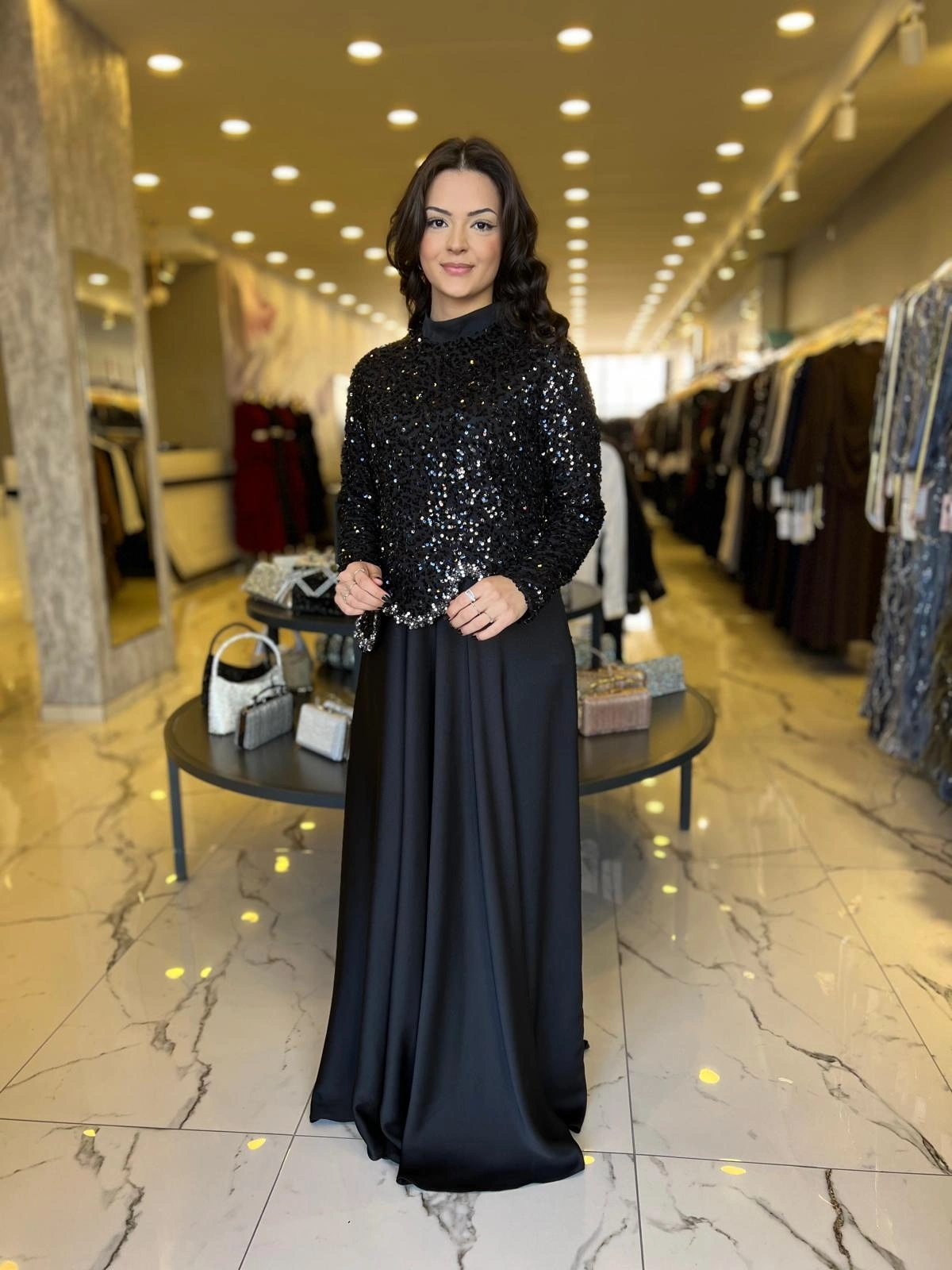 Merihce Luxury kalitesini her detayda hissedeceğiniz MATEKS-PAYETLİ ELBİSE SİYAH, gardırobunuzun vazgeçilmezlerinden biri olmaya aday.