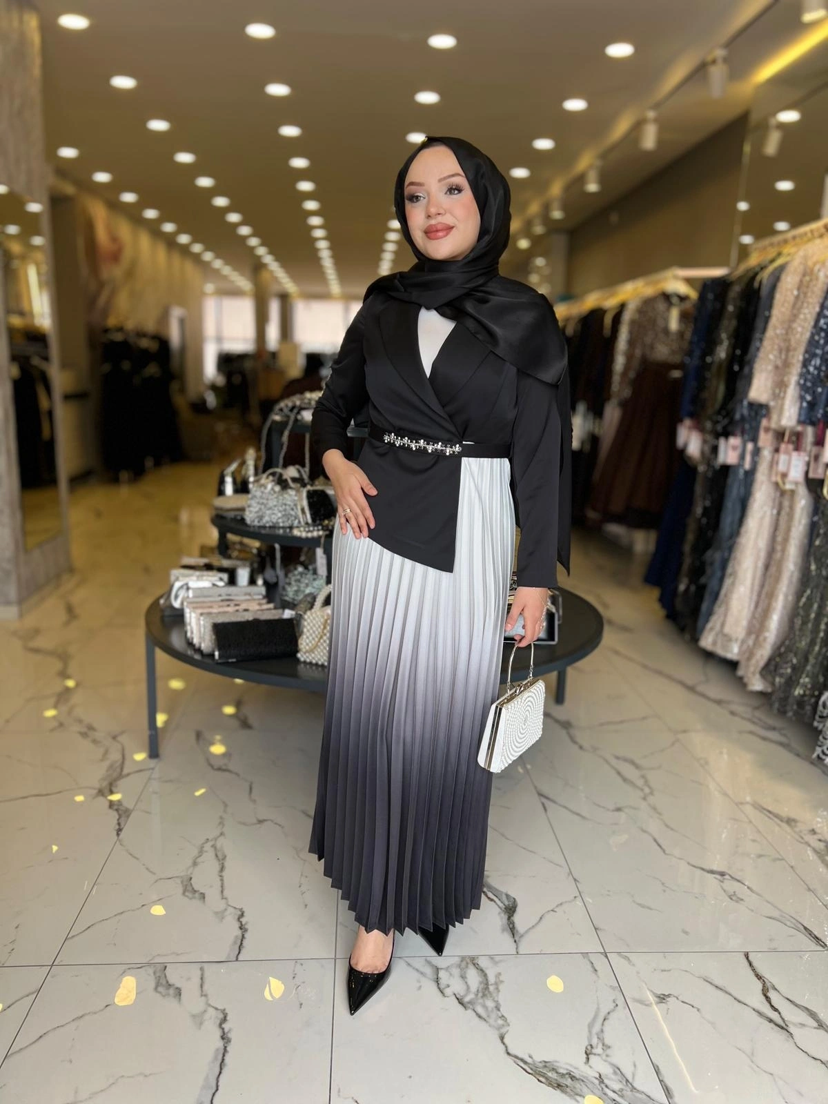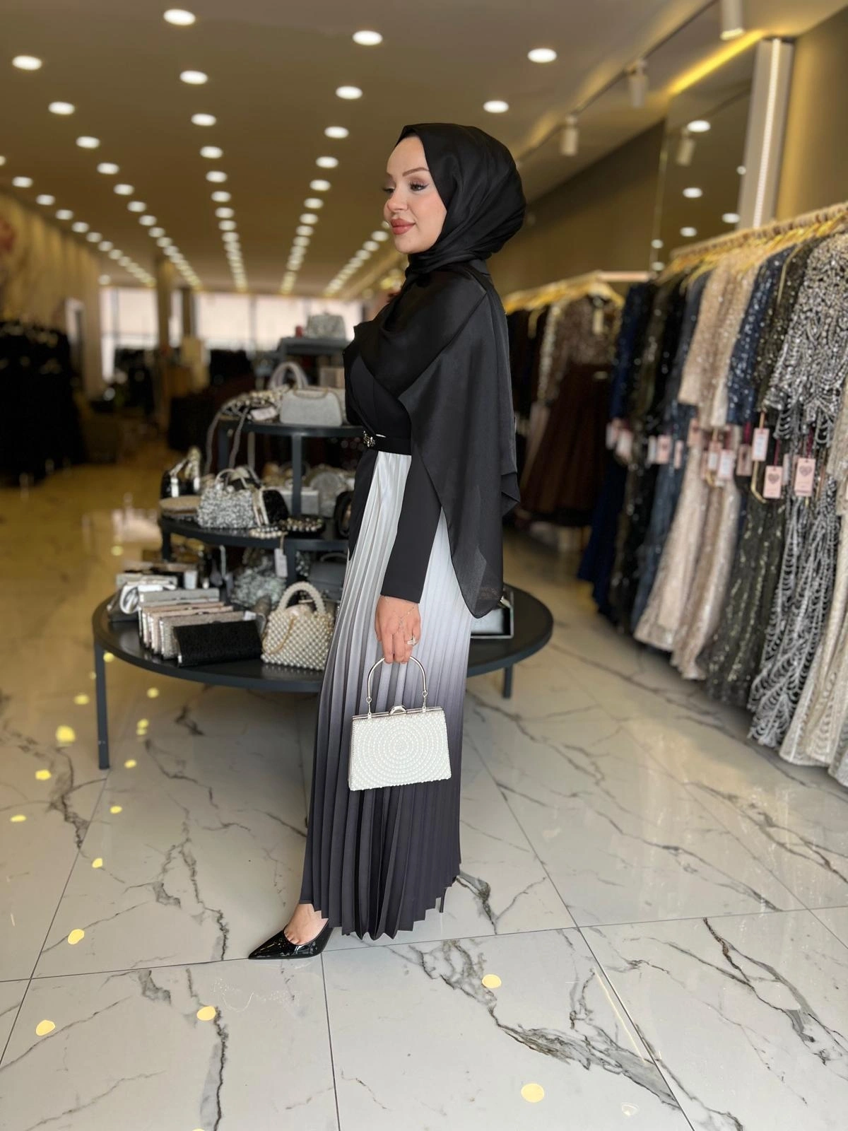 Merihce Luxury kalitesini her detayda hissedeceğiniz MATEKS-PLİSELİ ELBİSE SİYAH, gardırobunuzun vazgeçilmezlerinden biri olmaya aday.
