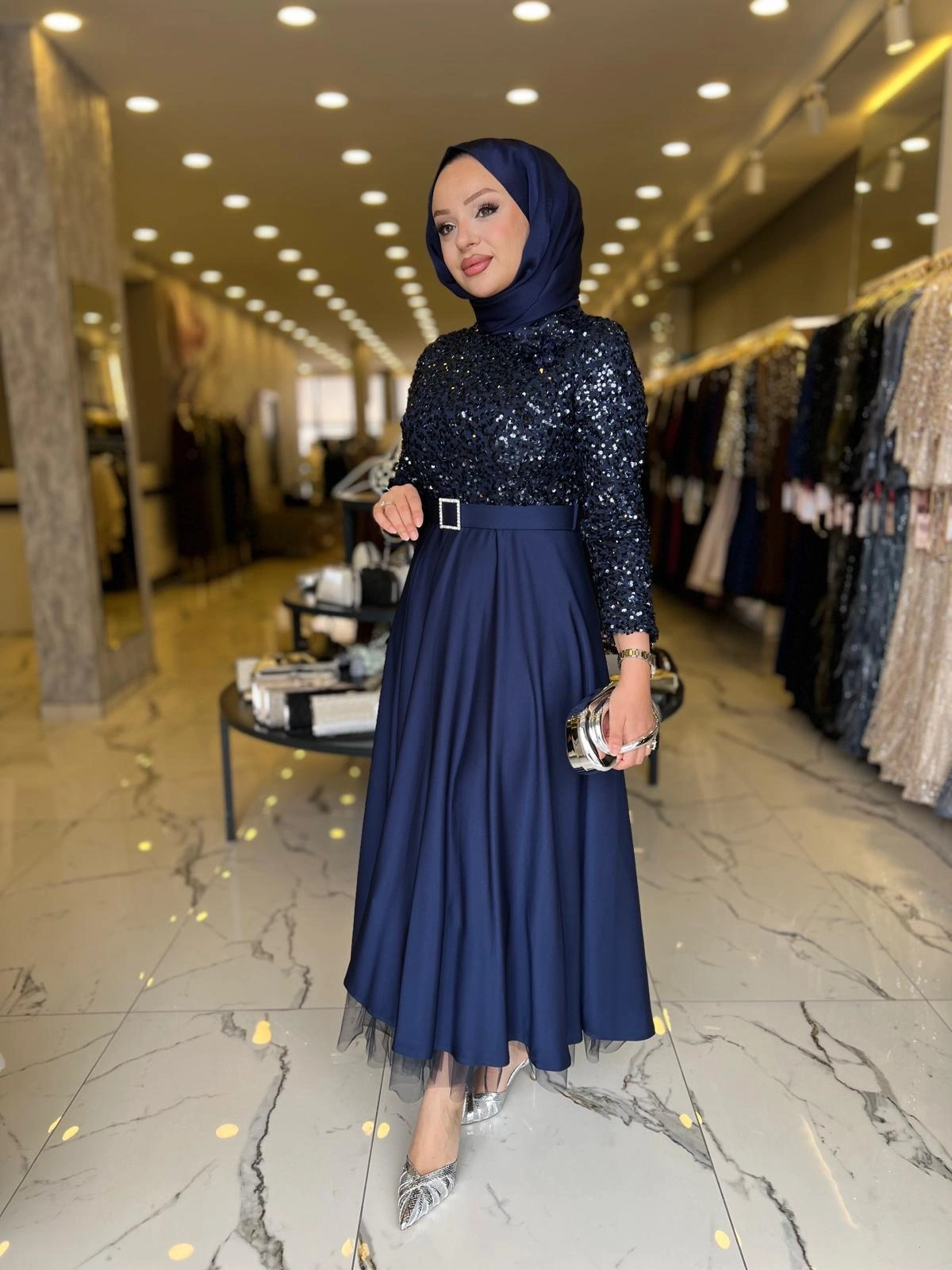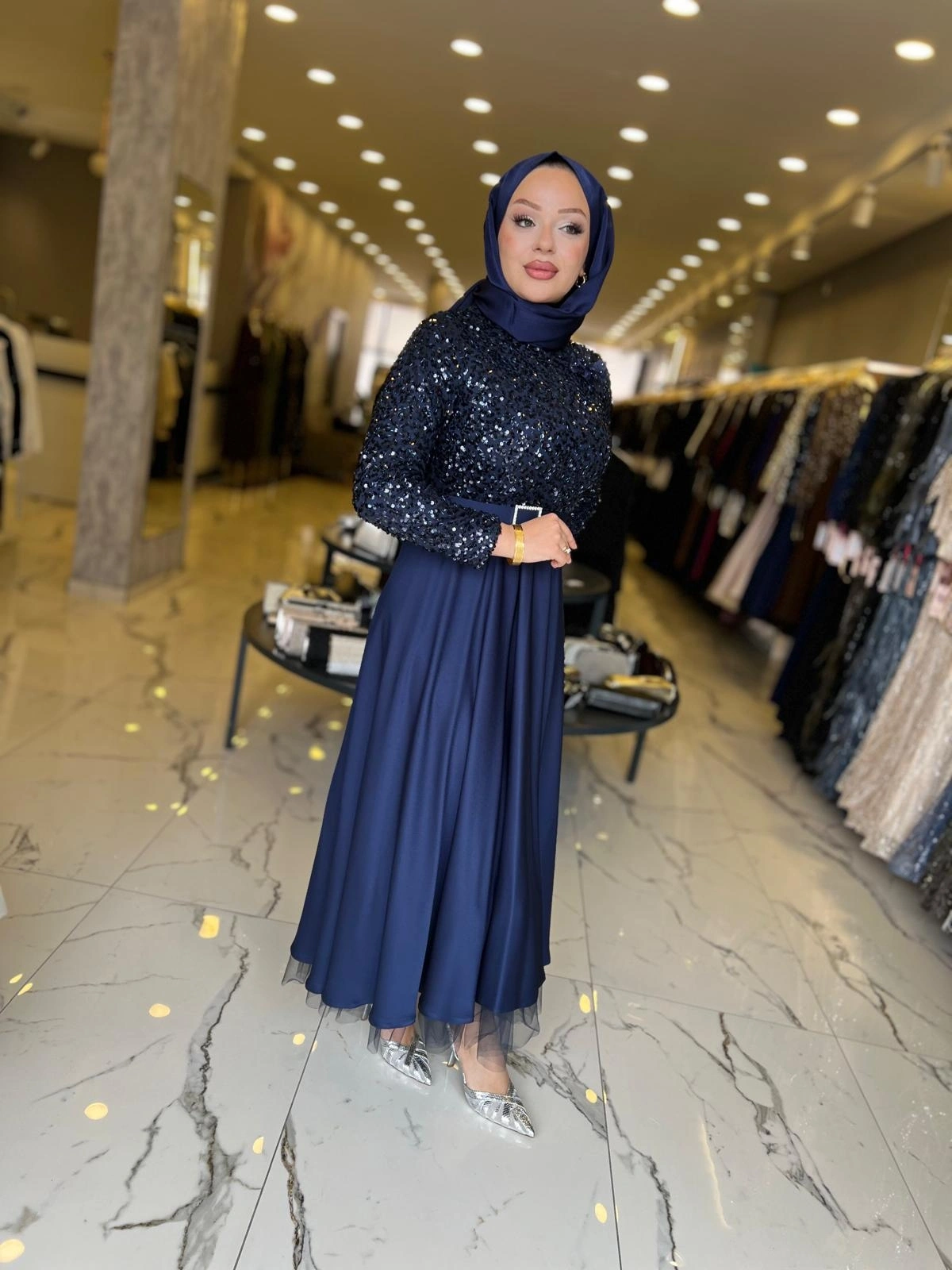 Merihce Luxury kalitesini her detayda hissedeceğiniz MATEKS-PUL PAYETLİ ELBİSE LACİVERT, gardırobunuzun vazgeçilmezlerinden biri olmaya aday.