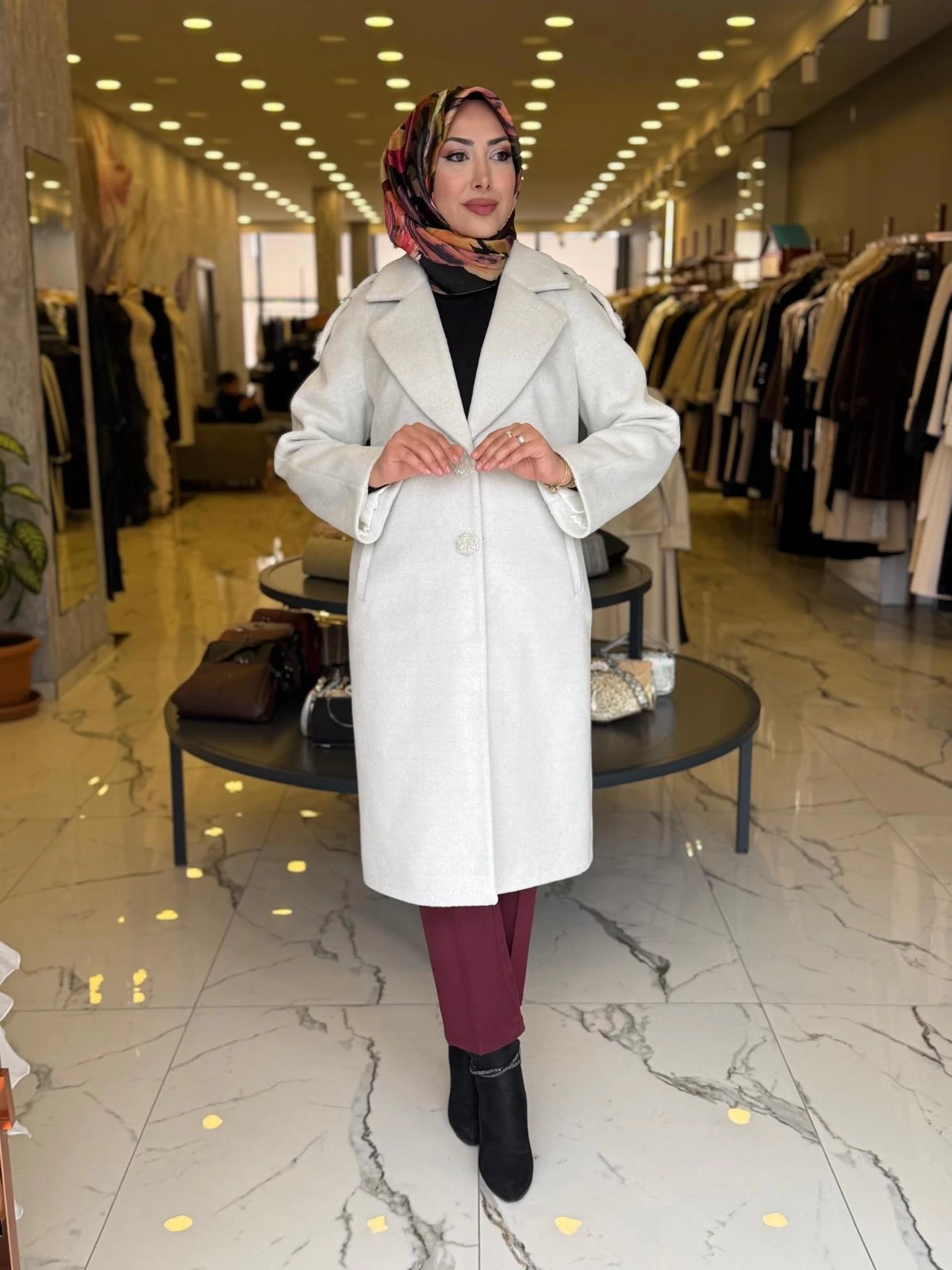 MATEKS-SİMLİ OMZU DÜĞME DETAYLI KAŞE KABAN EKRU
