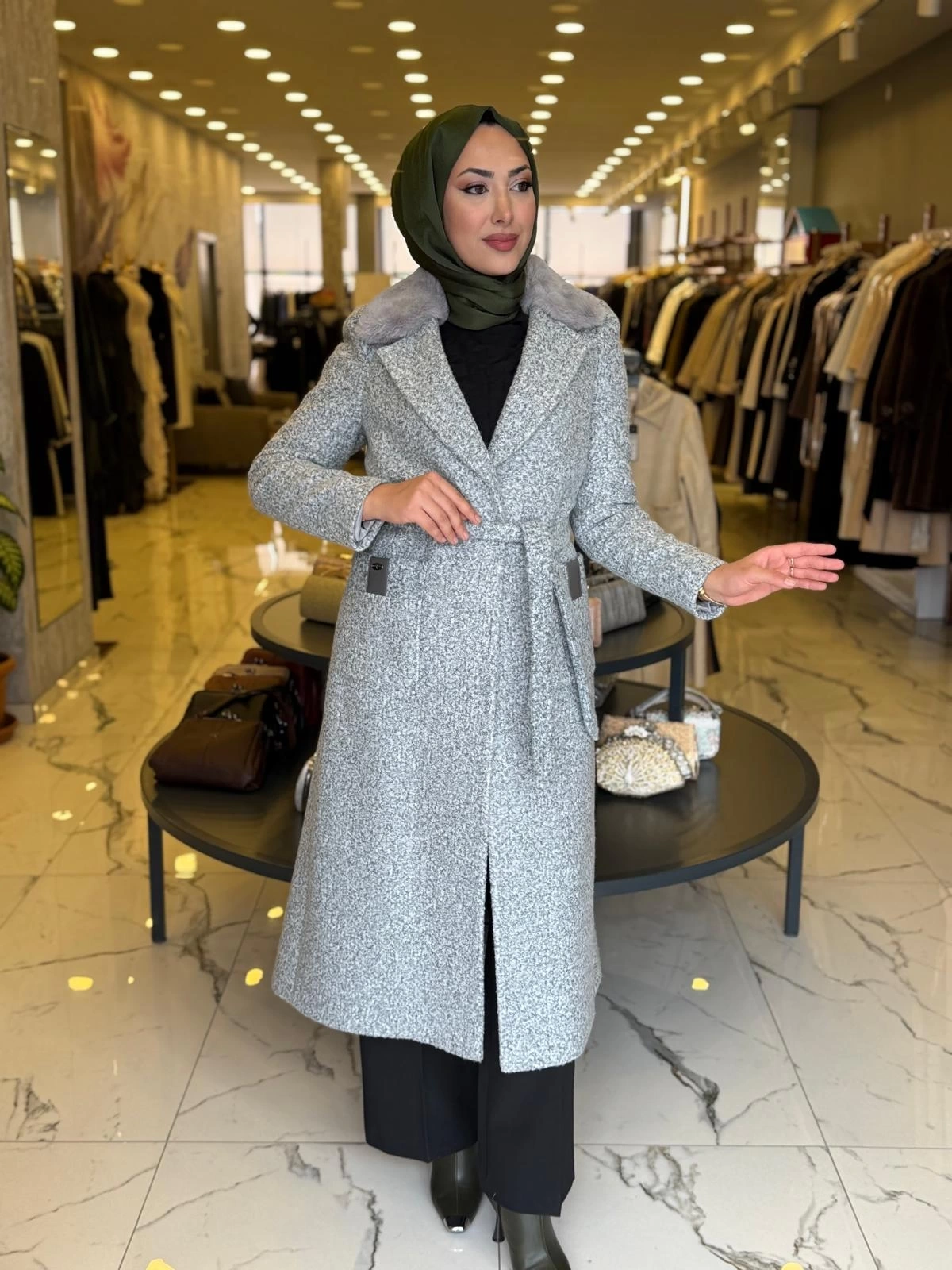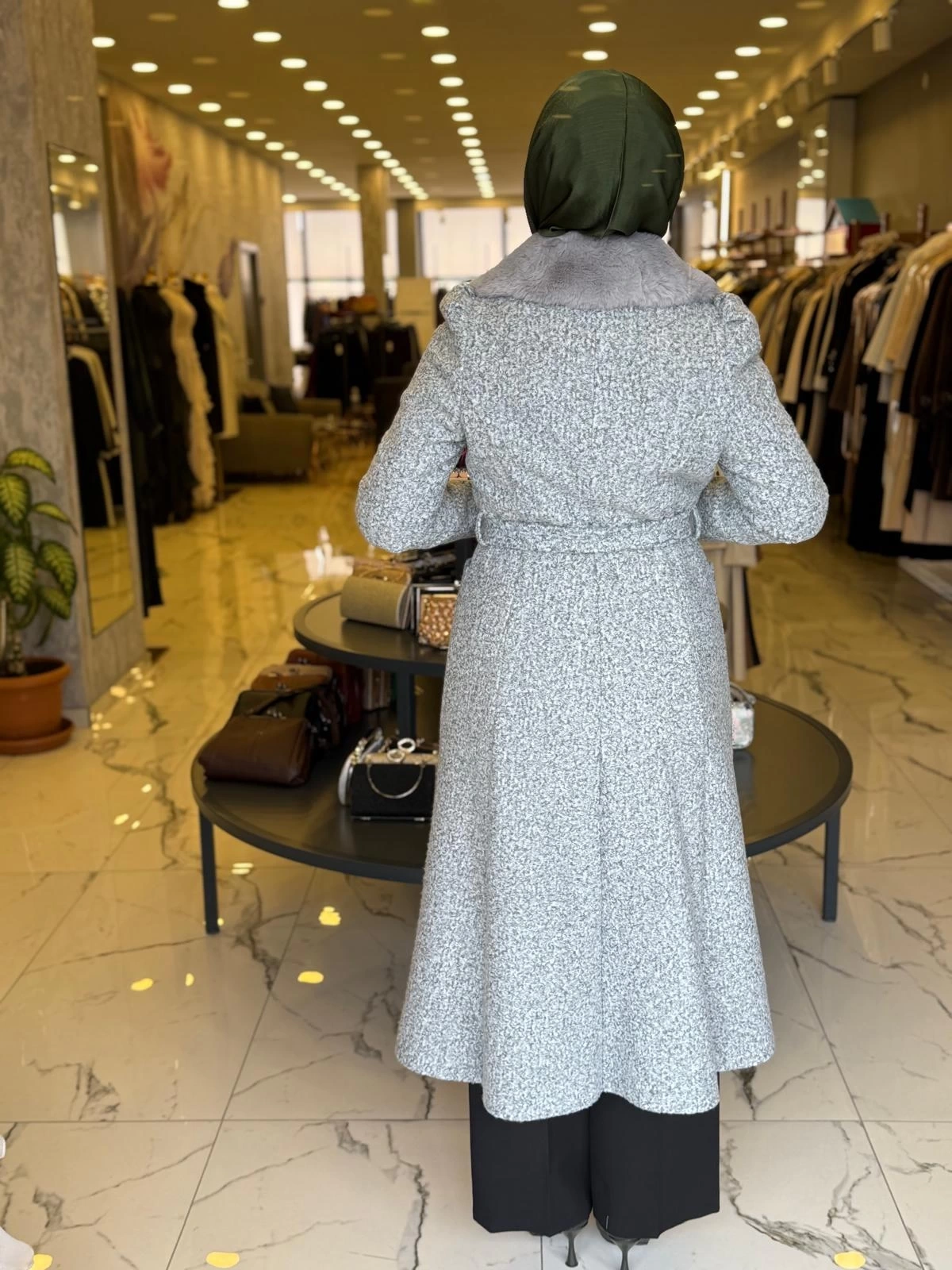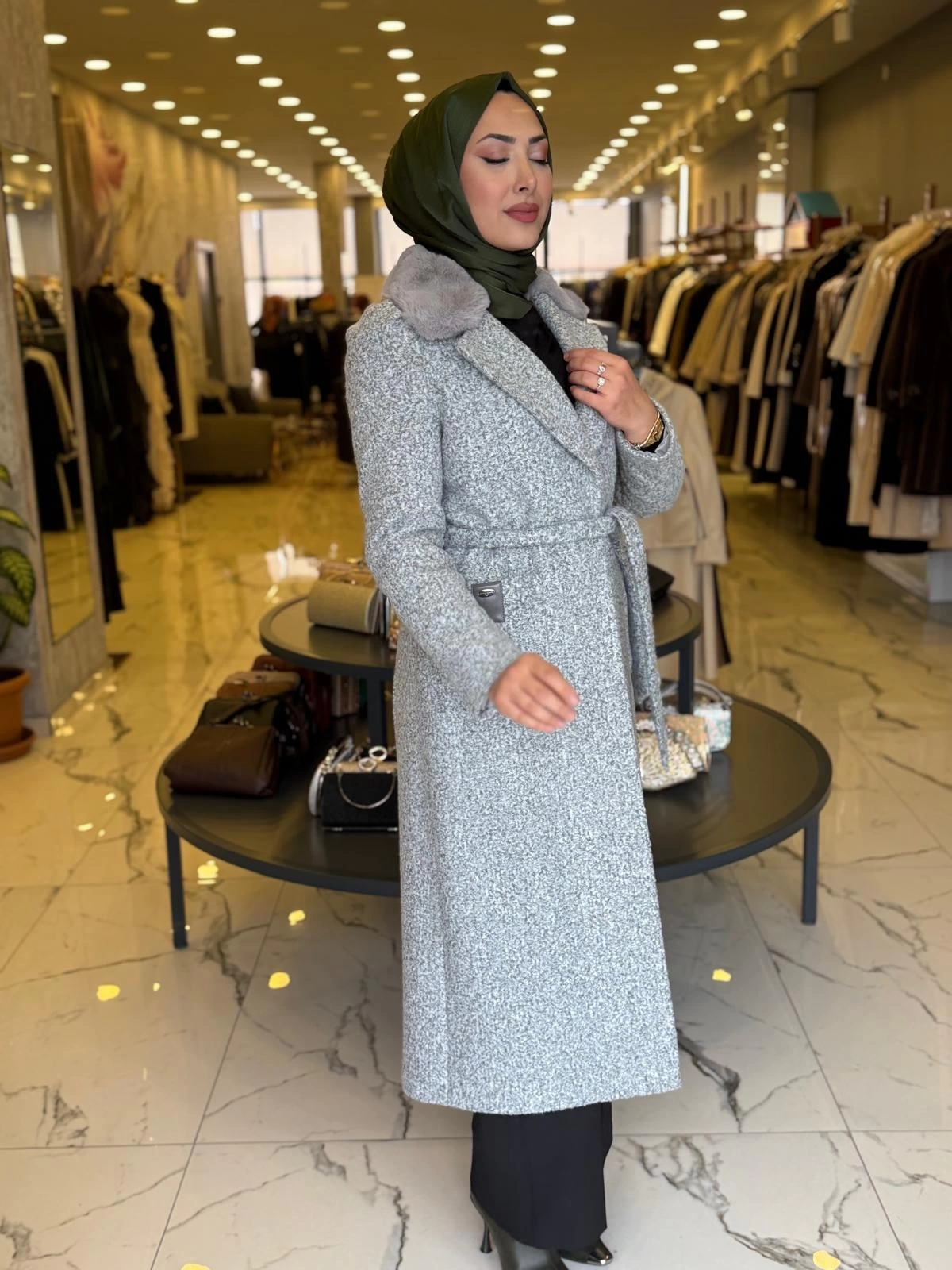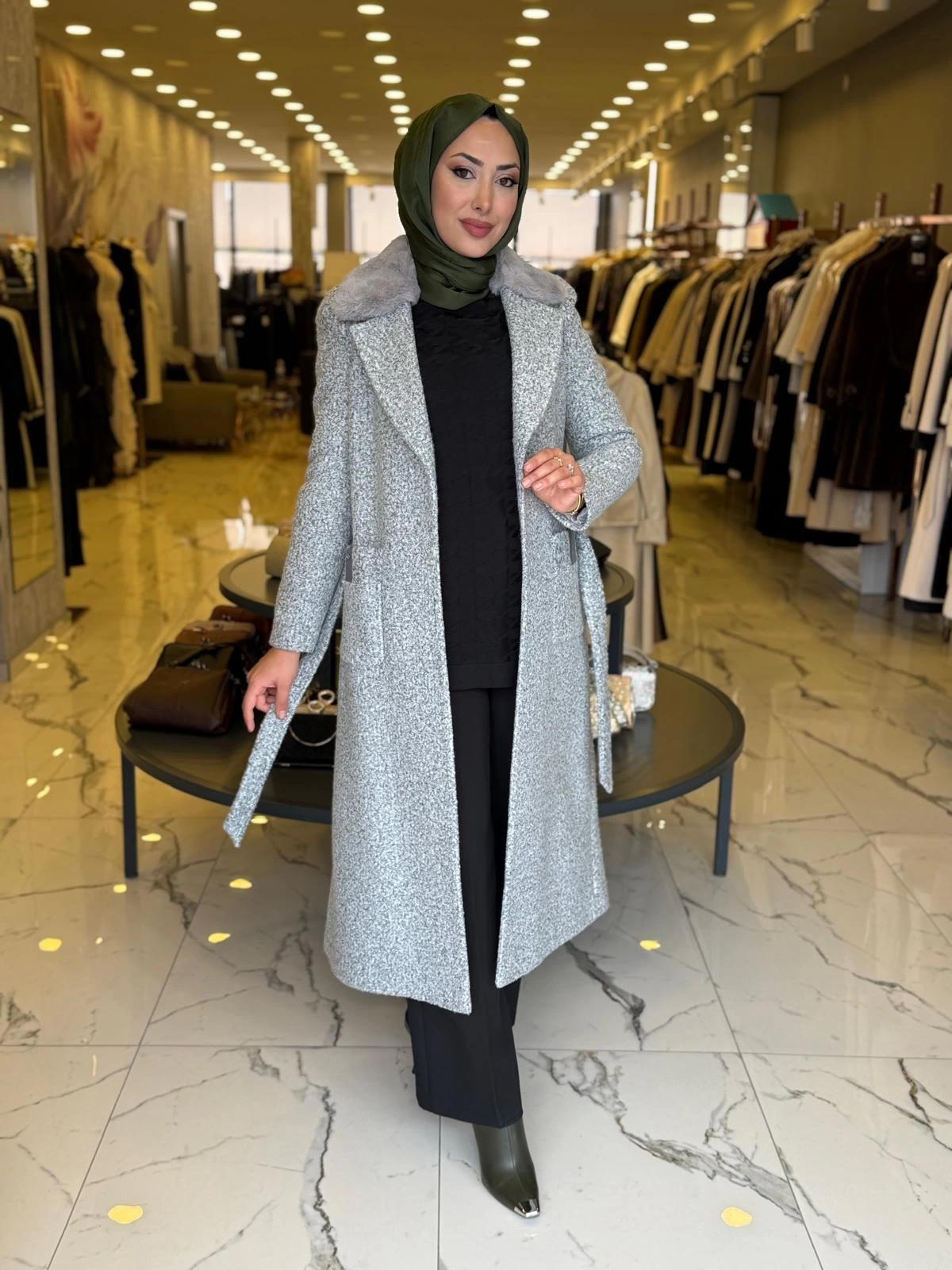 MATEKS-YAKASI KÜRKLÜ TEDDY KABAN GRİ