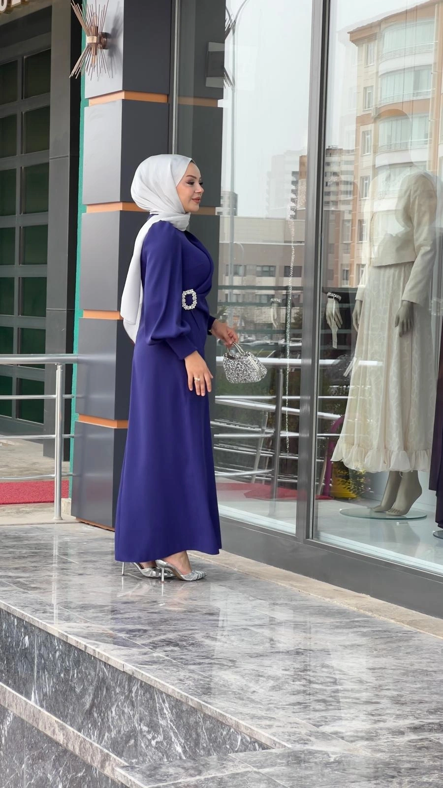 Merihce Luxury kalitesini her detayda hissedeceğiniz MATEKS-YANI TAŞLI ELBİSE MOR, gardırobunuzun vazgeçilmezlerinden biri olmaya aday.