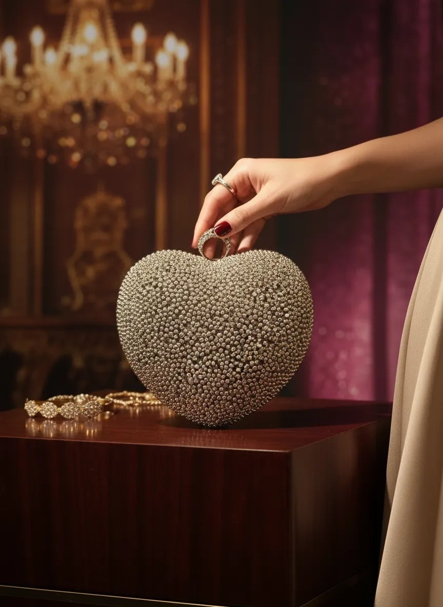 Merihce Luxury kalitesini her detayda hissedeceğiniz MERİHCE-KALPLİ ABİYE ÇANTA GÜMÜŞ, gardırobunuzun vazgeçilmezlerinden biri olmaya aday.