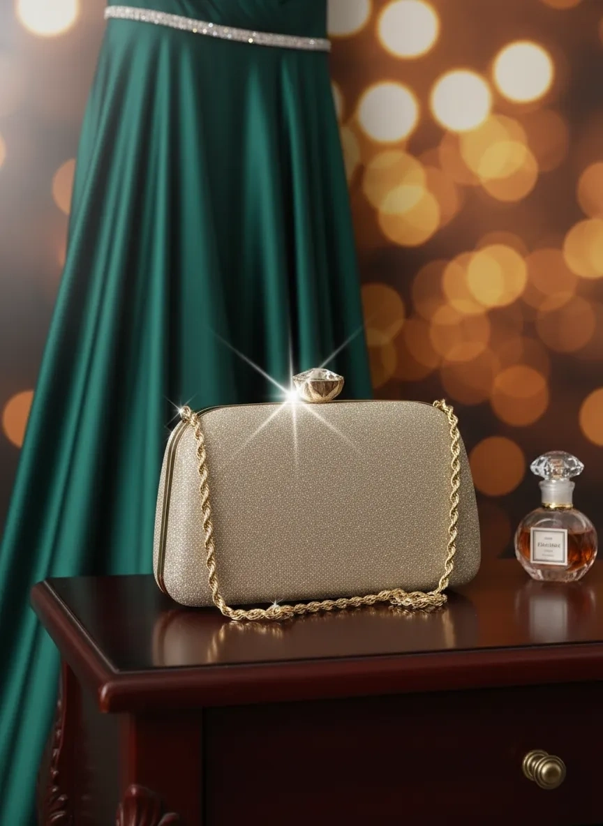 Merihce Luxury kalitesini her detayda hissedeceğiniz MERİHCE-ZİNCİRLİ ABİYE ÇANTA GOLD, gardırobunuzun vazgeçilmezlerinden biri olmaya aday.