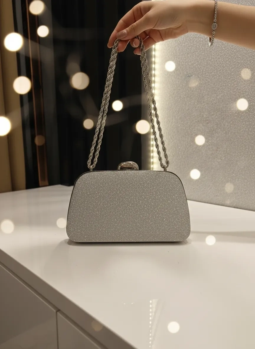 Merihce Luxury kalitesini her detayda hissedeceğiniz MERİHCE-ZİNCİRLİ ABİYE ÇANTA GÜMÜŞ, gardırobunuzun vazgeçilmezlerinden biri olmaya aday.