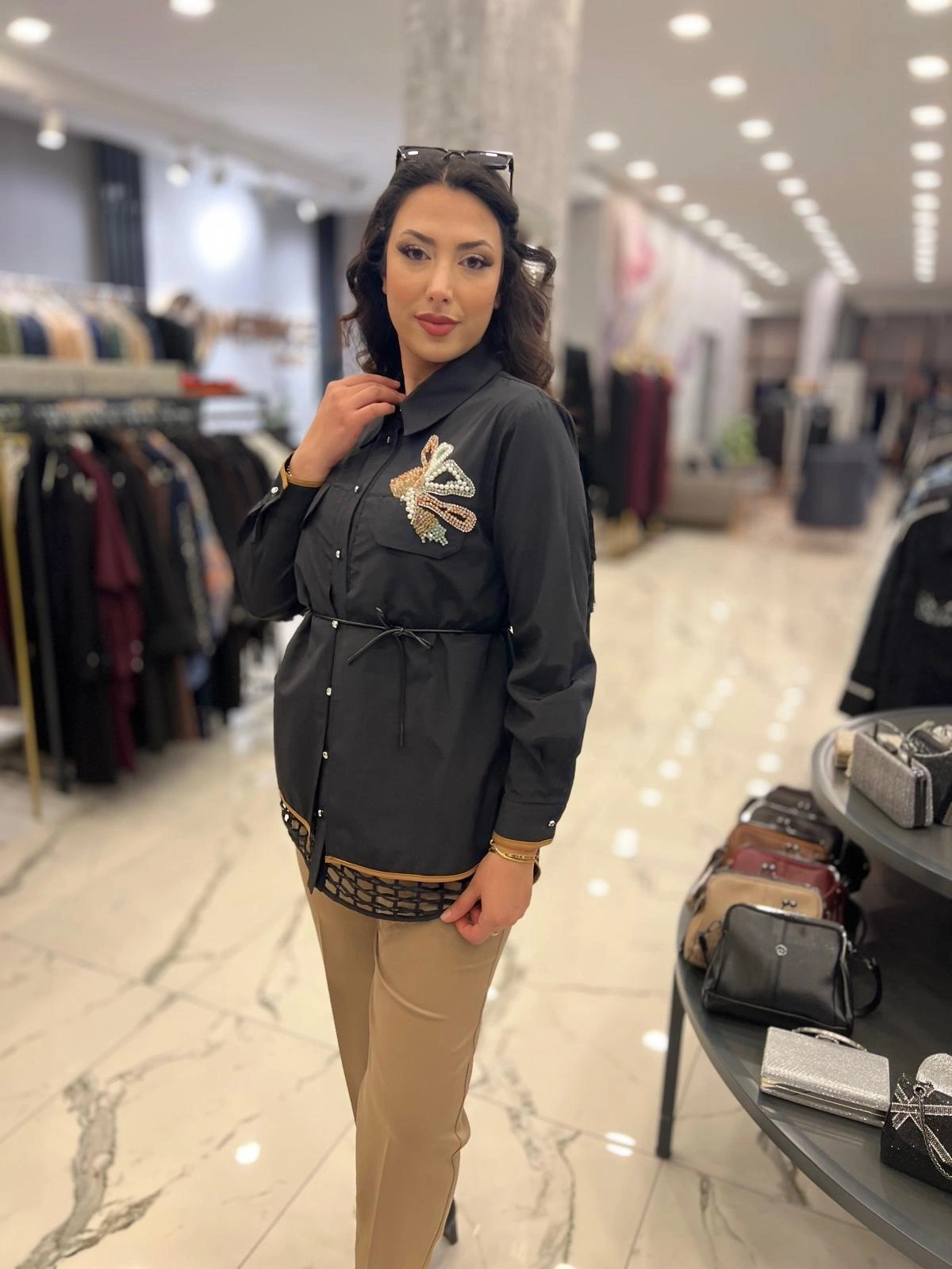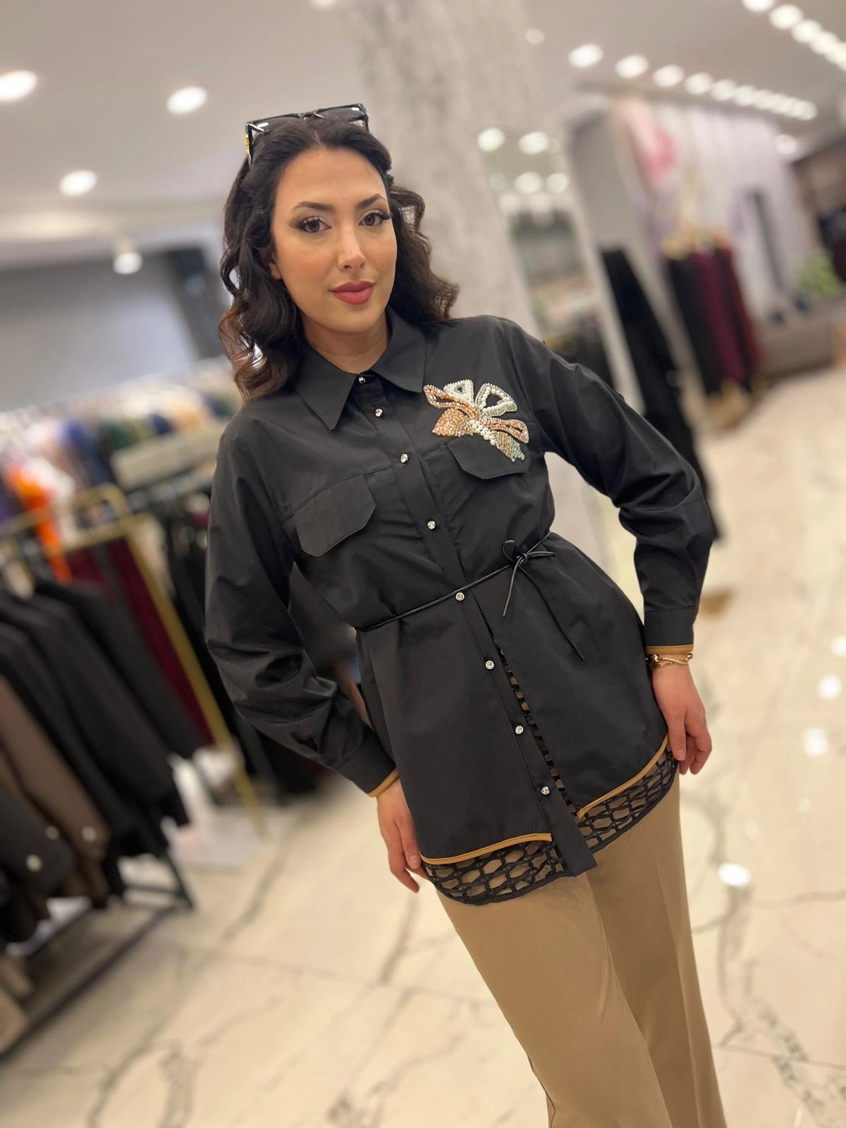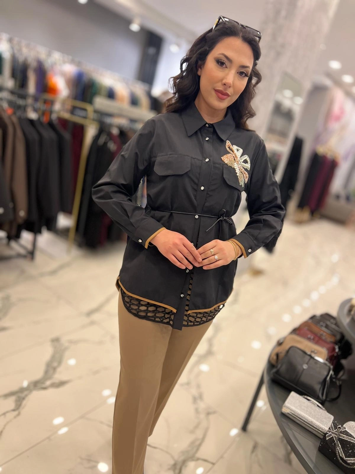 Merihce Luxury kalitesini her detayda hissedeceğiniz MY312-CEBİ TAŞLI FİLELİ GÖMLEK SİYAH, gardırobunuzun vazgeçilmezlerinden biri olmaya aday.