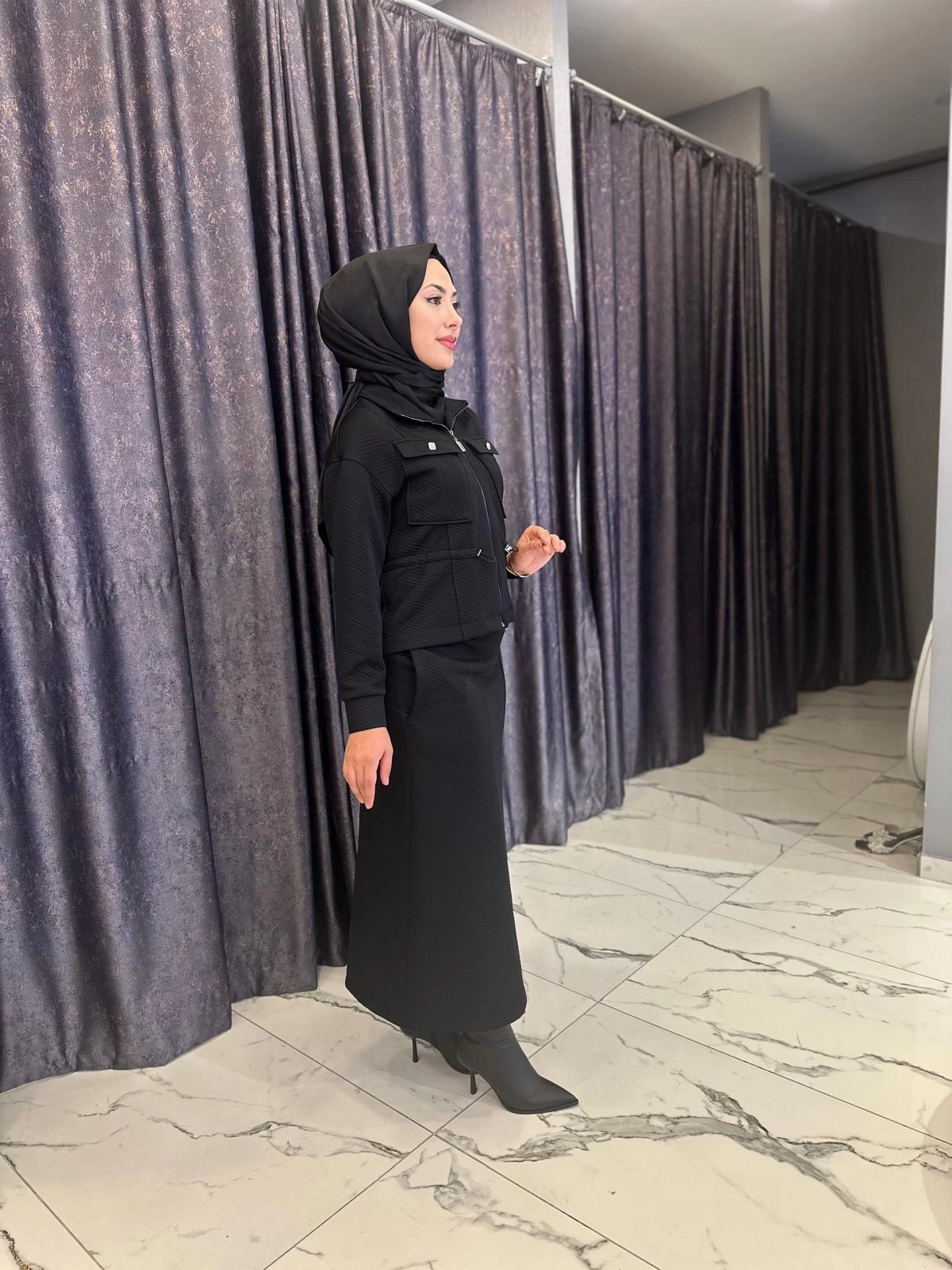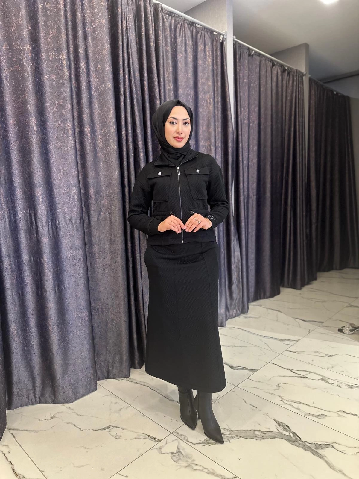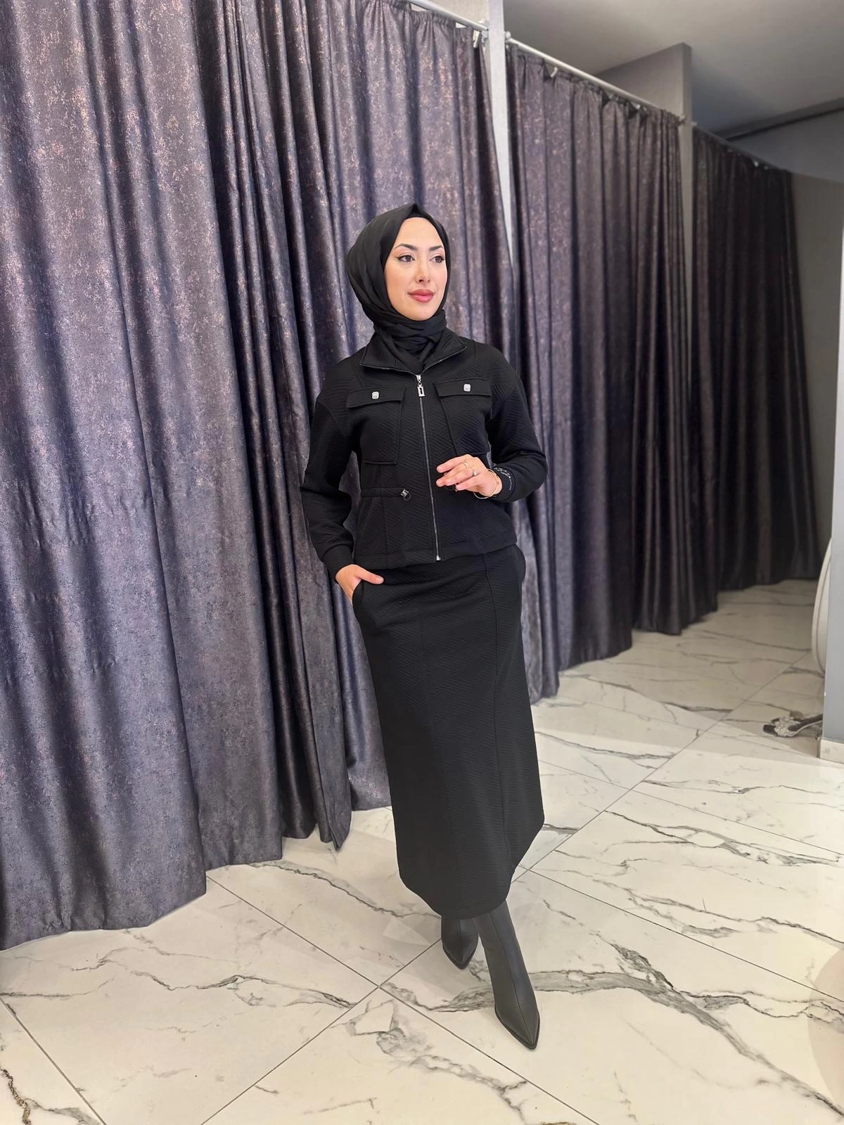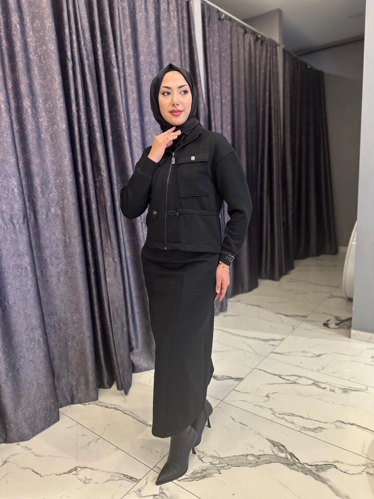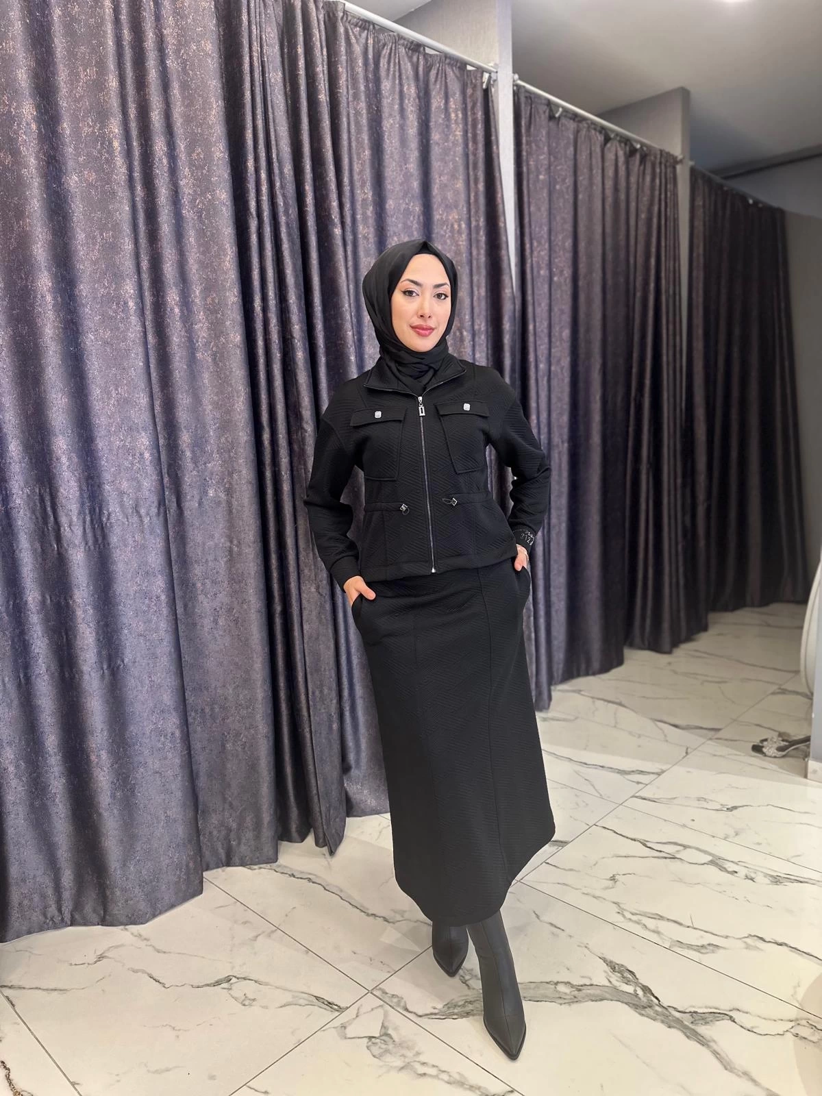 Merihce Luxury kalitesini her detayda hissedeceğiniz MY312-CEPLİ ETEKLİ TAKIM SİYAH, gardırobunuzun vazgeçilmezlerinden biri olmaya aday.