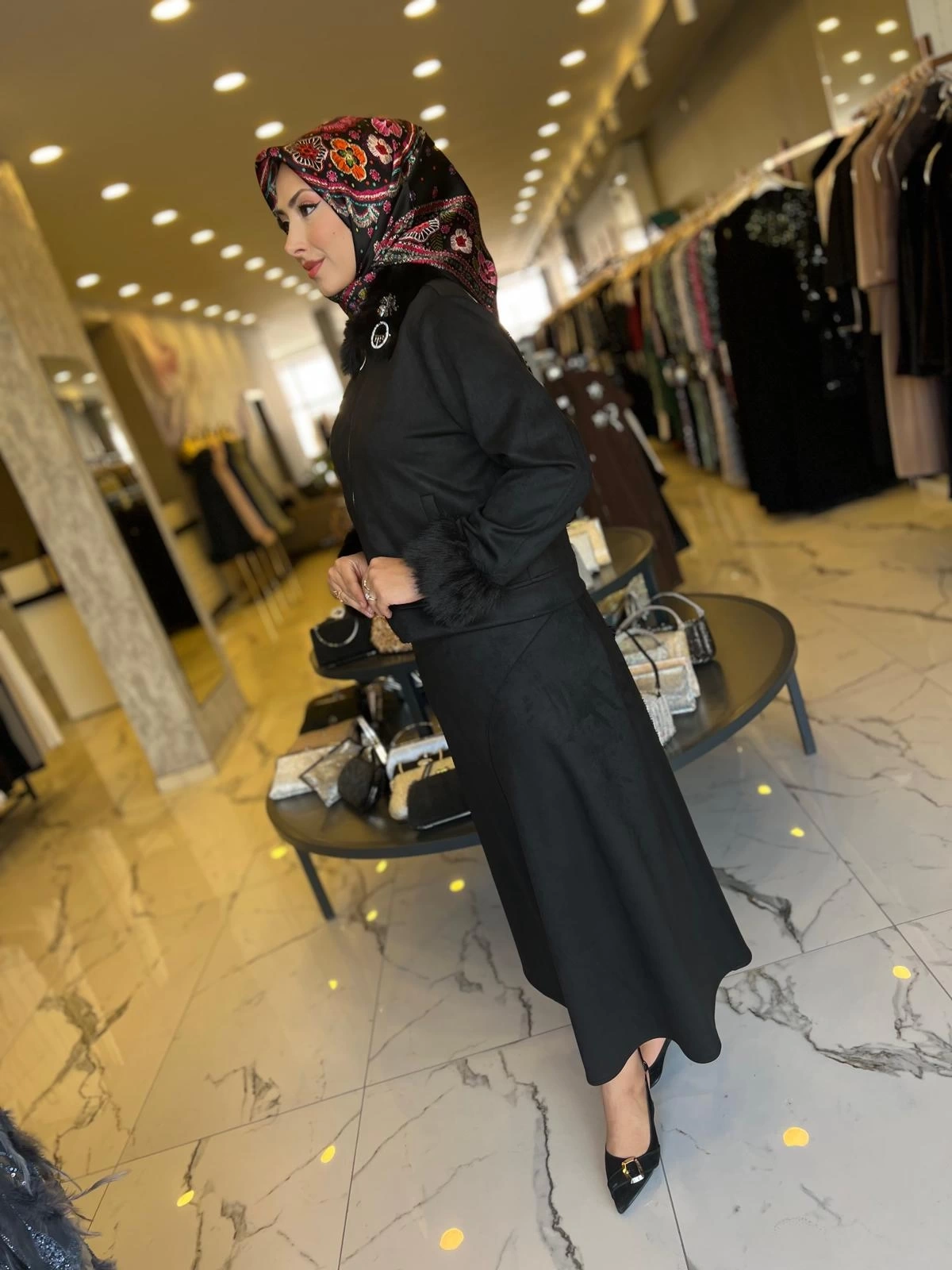 Merihce Luxury kalitesini her detayda hissedeceğiniz MY312-KÜRKLÜ SÜET TAKIM SİYAH, gardırobunuzun vazgeçilmezlerinden biri olmaya aday.