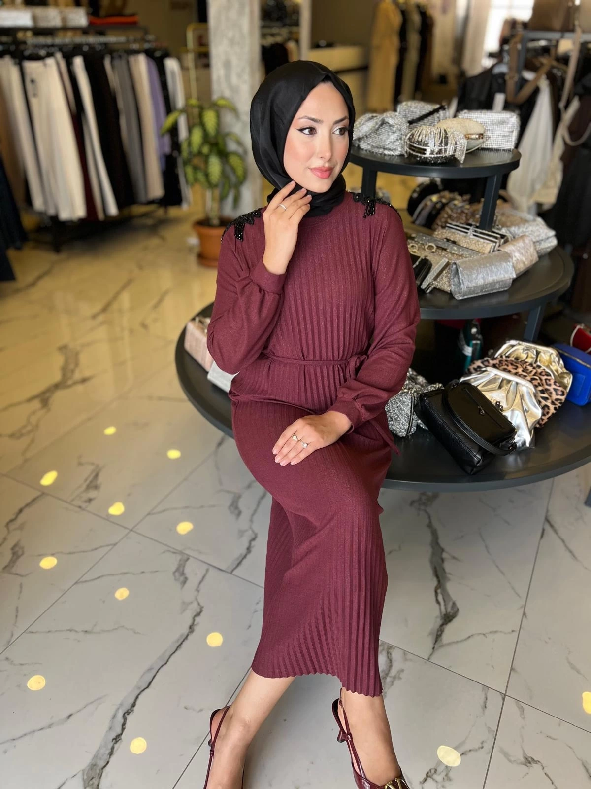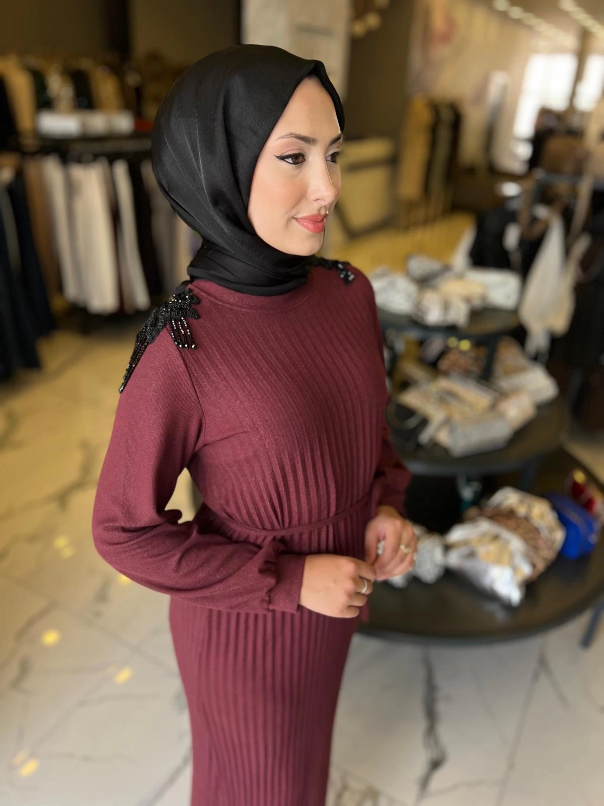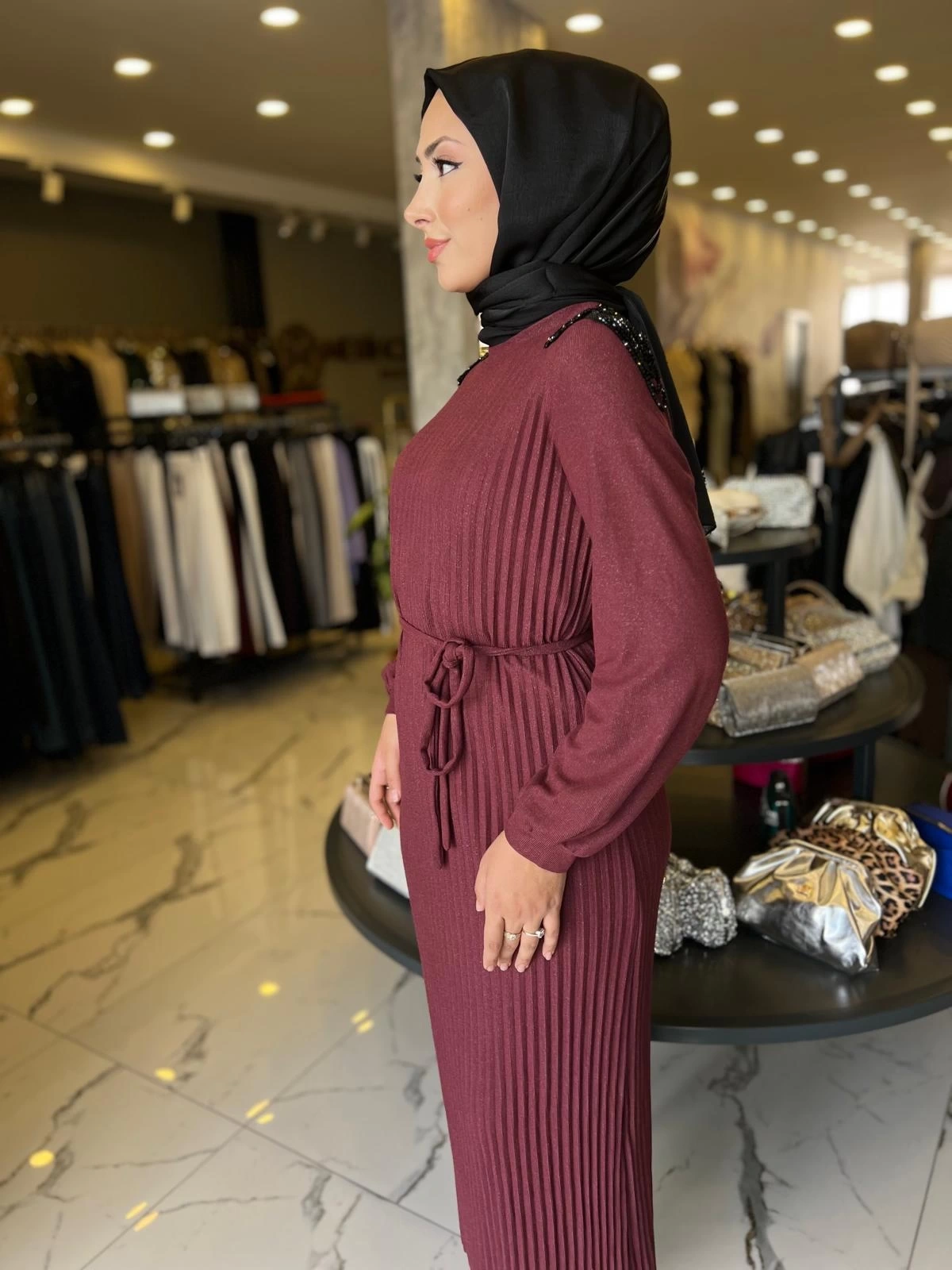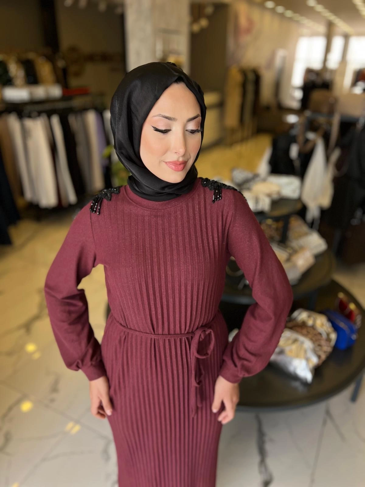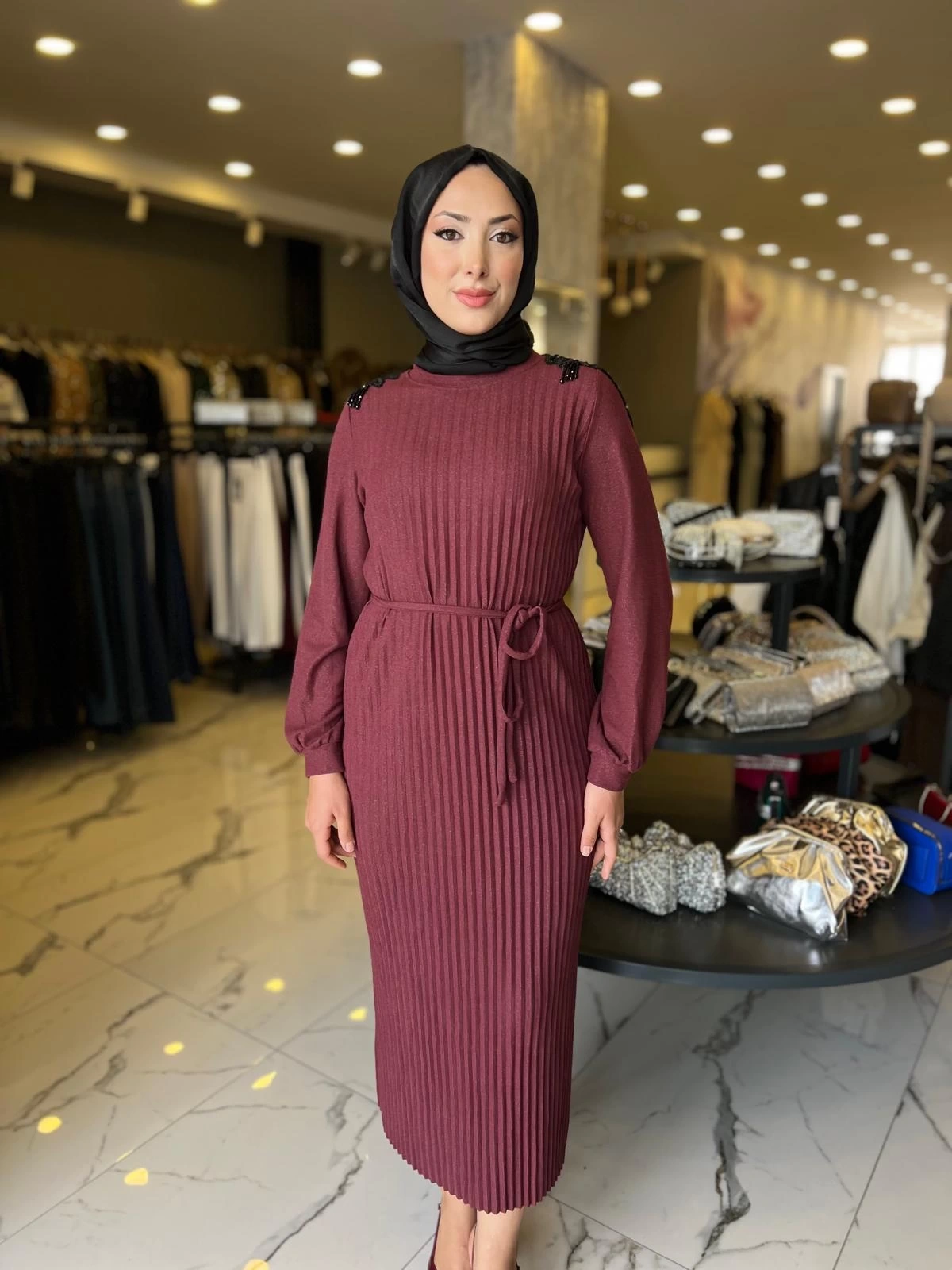 Merihce Luxury kalitesini her detayda hissedeceğiniz MY312-OMUZ İŞLEMELİ PİLİSELİ ELBİSE BORDO, gardırobunuzun vazgeçilmezlerinden biri olmaya aday.